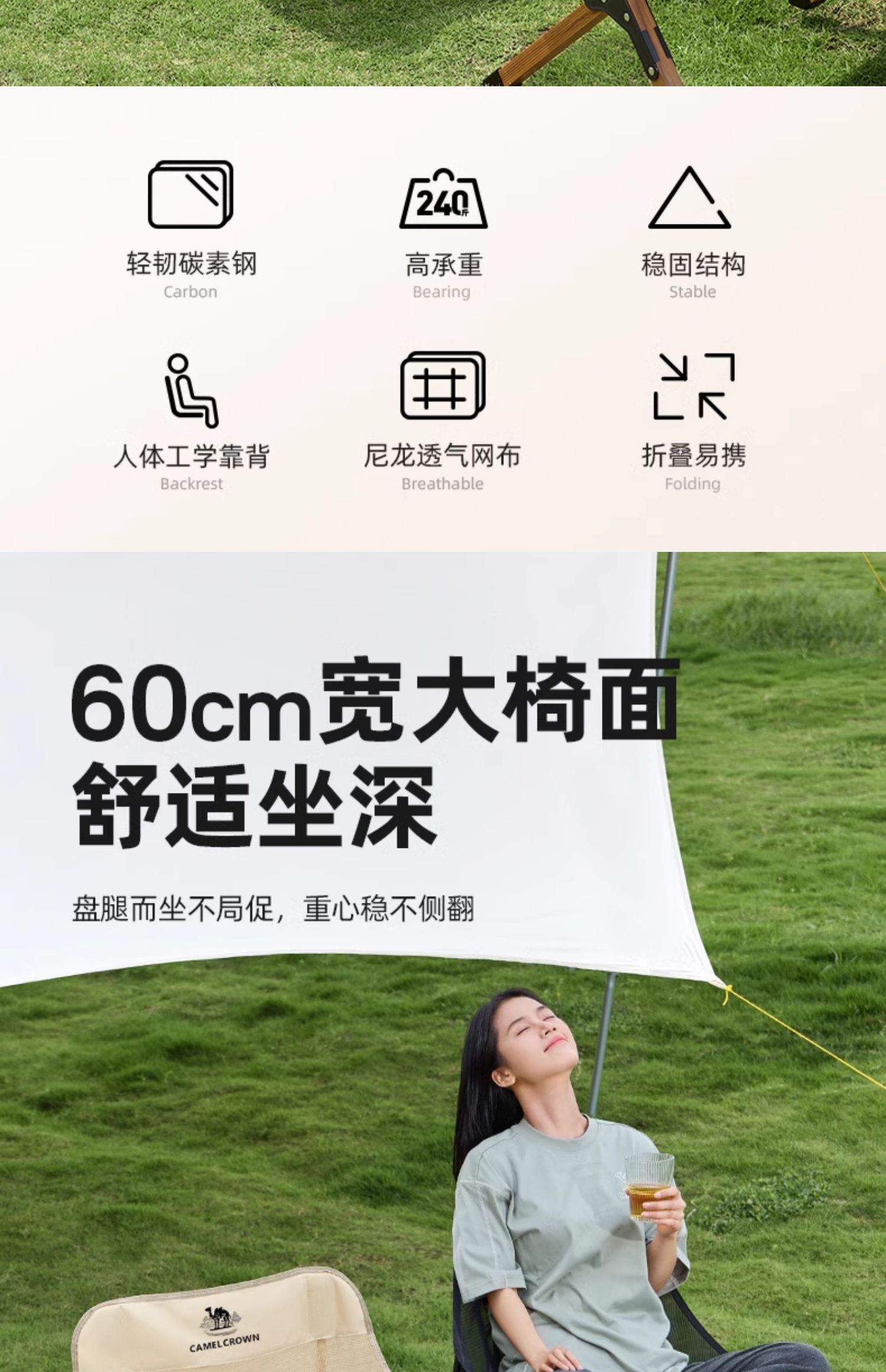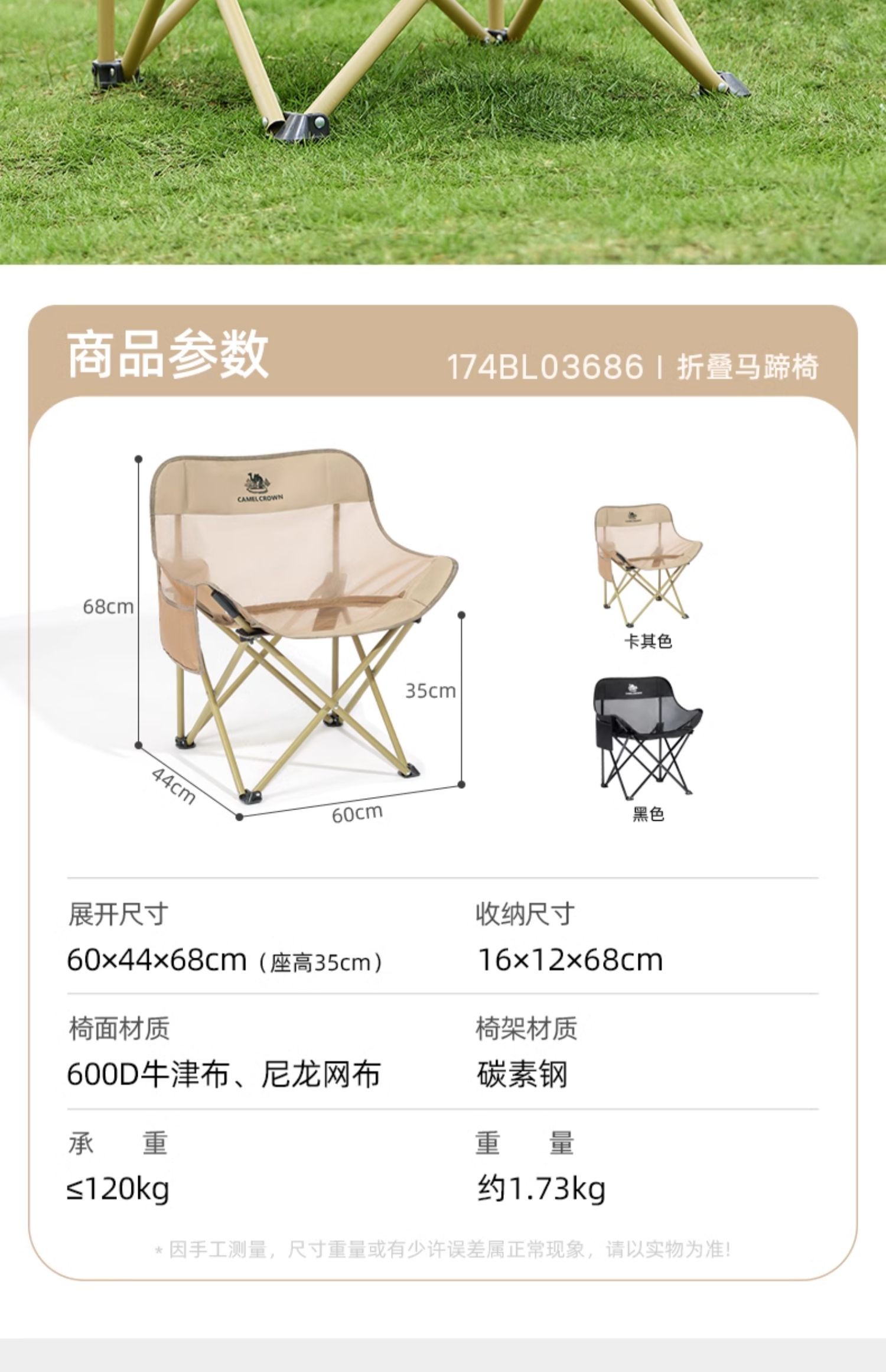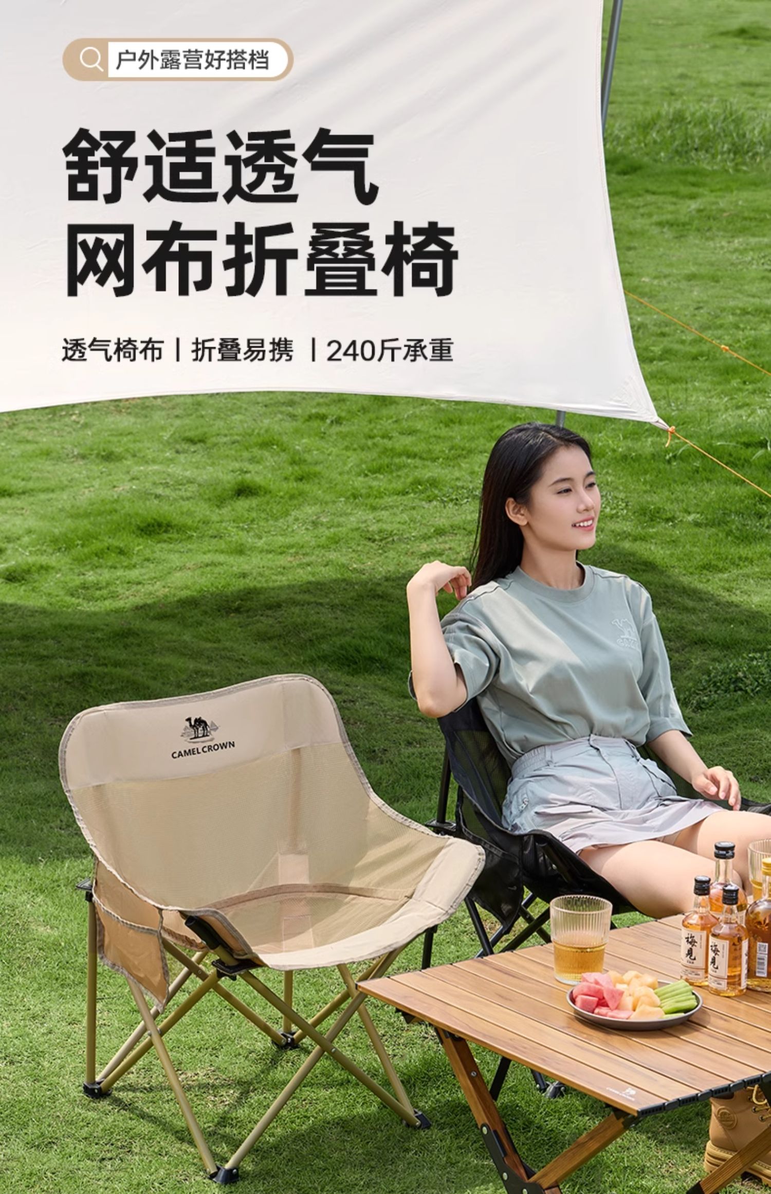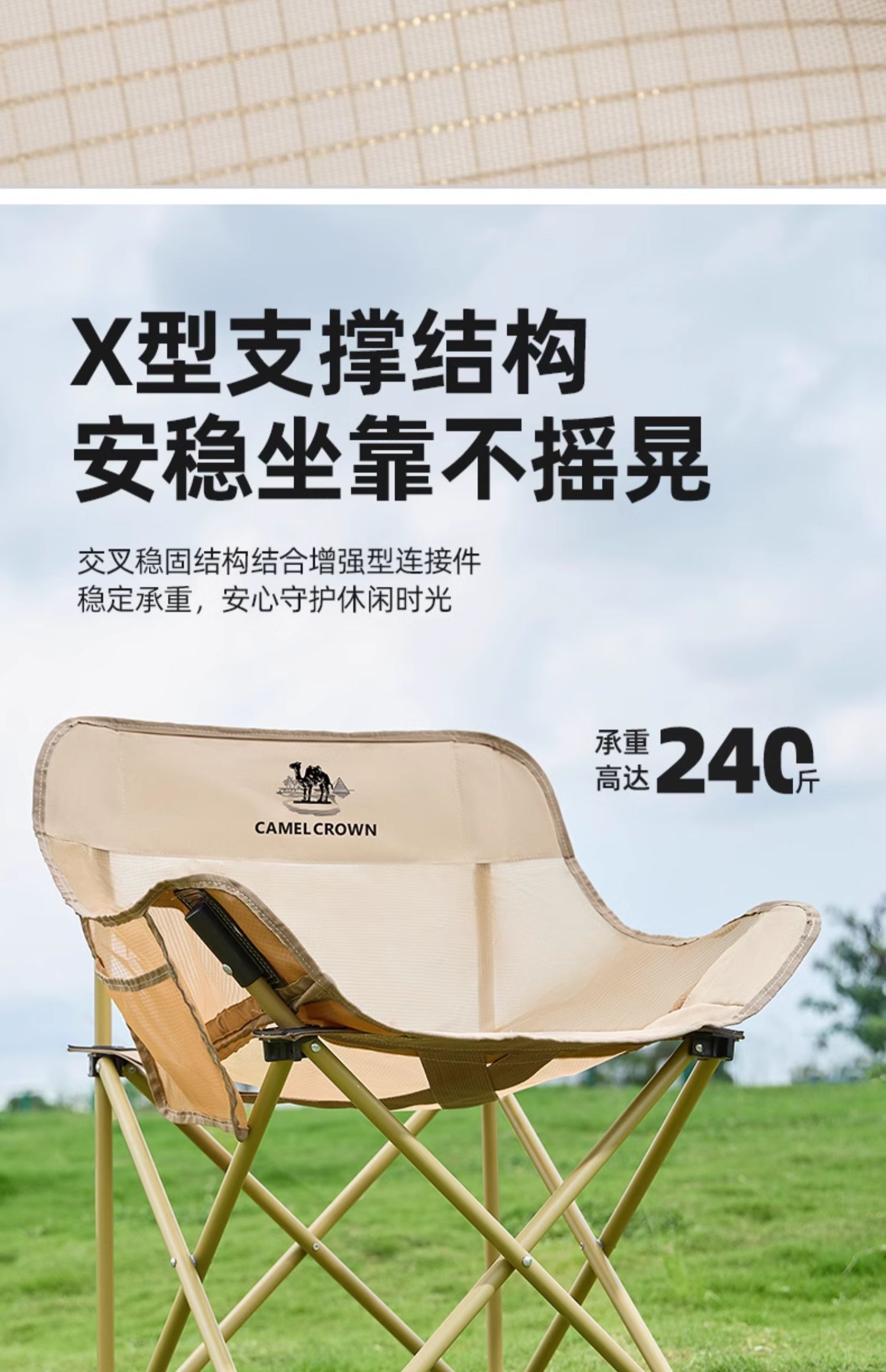 骆驼户外网布月亮椅野外野营露营椅钓鱼写生野餐折叠椅装备桌椅 174BL03686