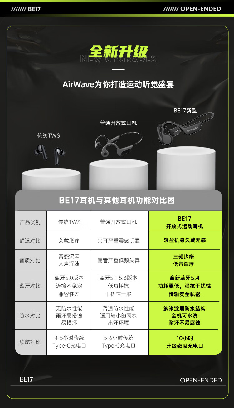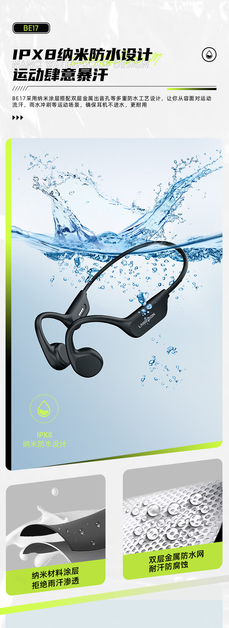 【小家电】兰士顿骨传导耳机蓝牙耳机运动跑步无线不入耳挂耳式骑行BE17 HF