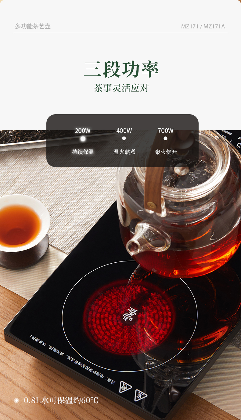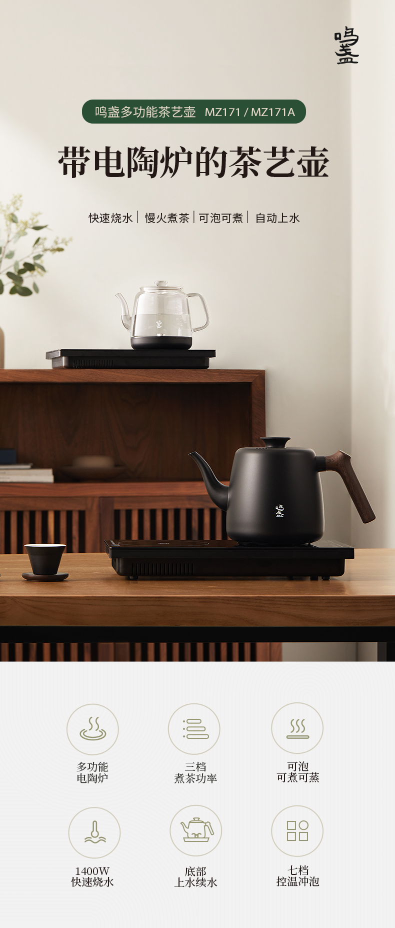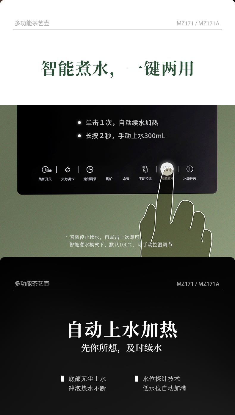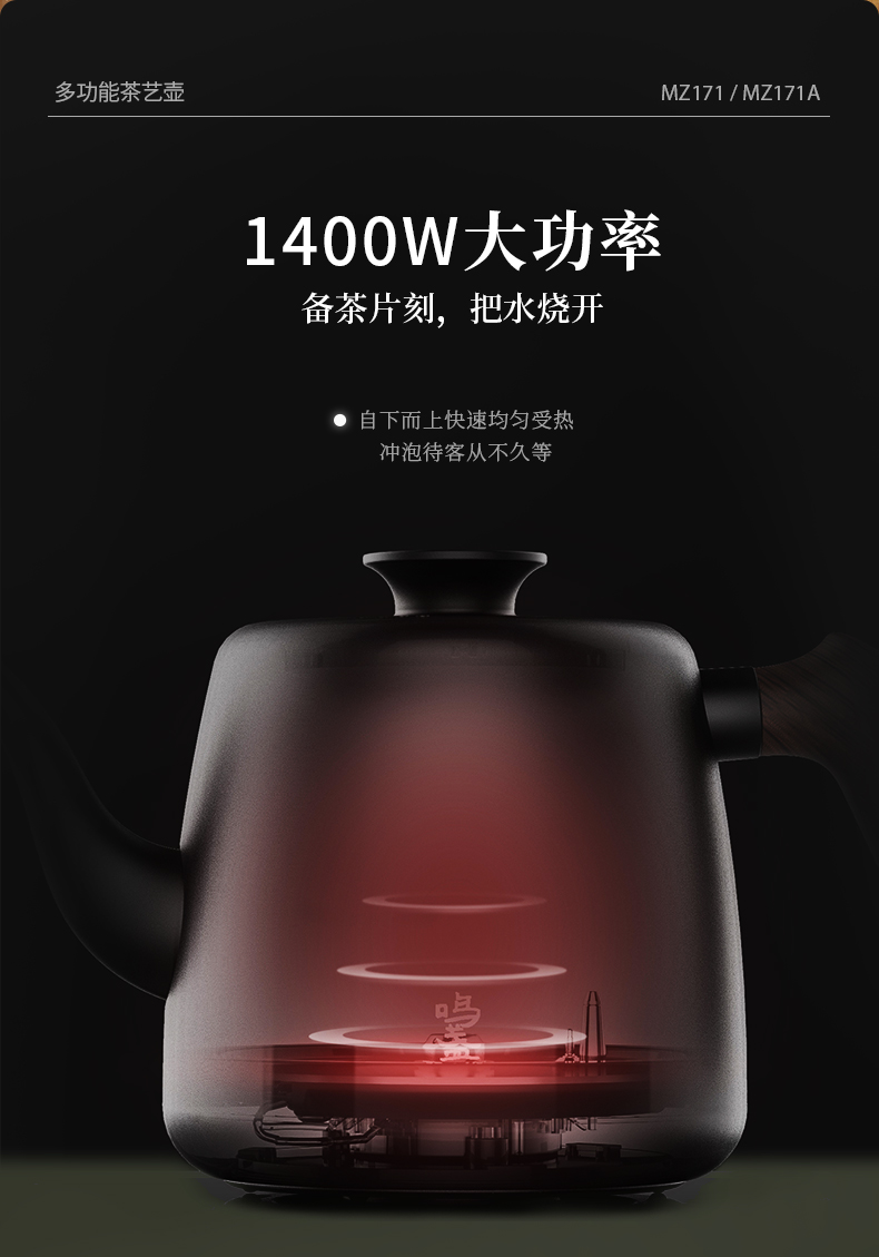 鸣盏多功能茶艺壶电陶炉泡茶专用烧水壶全自动上水壶-MZ171A(基础款)