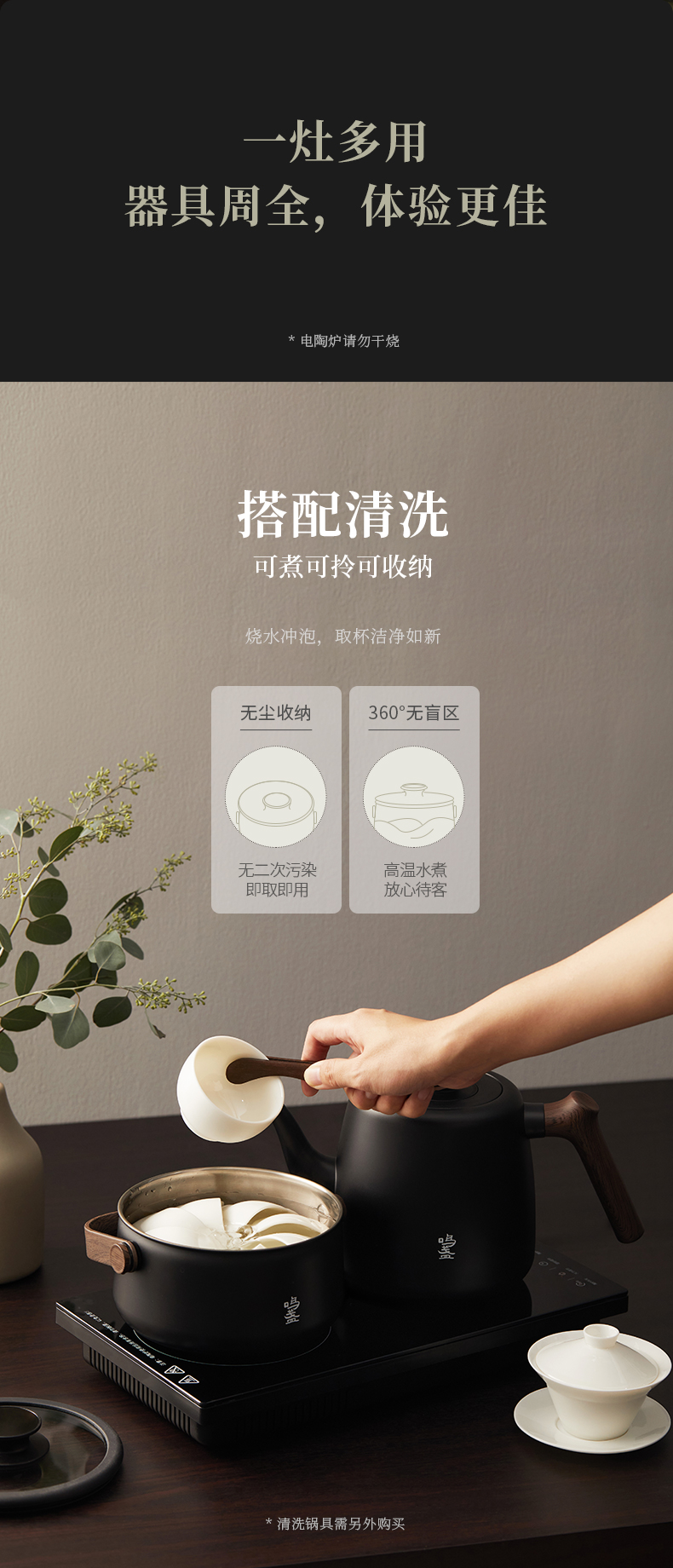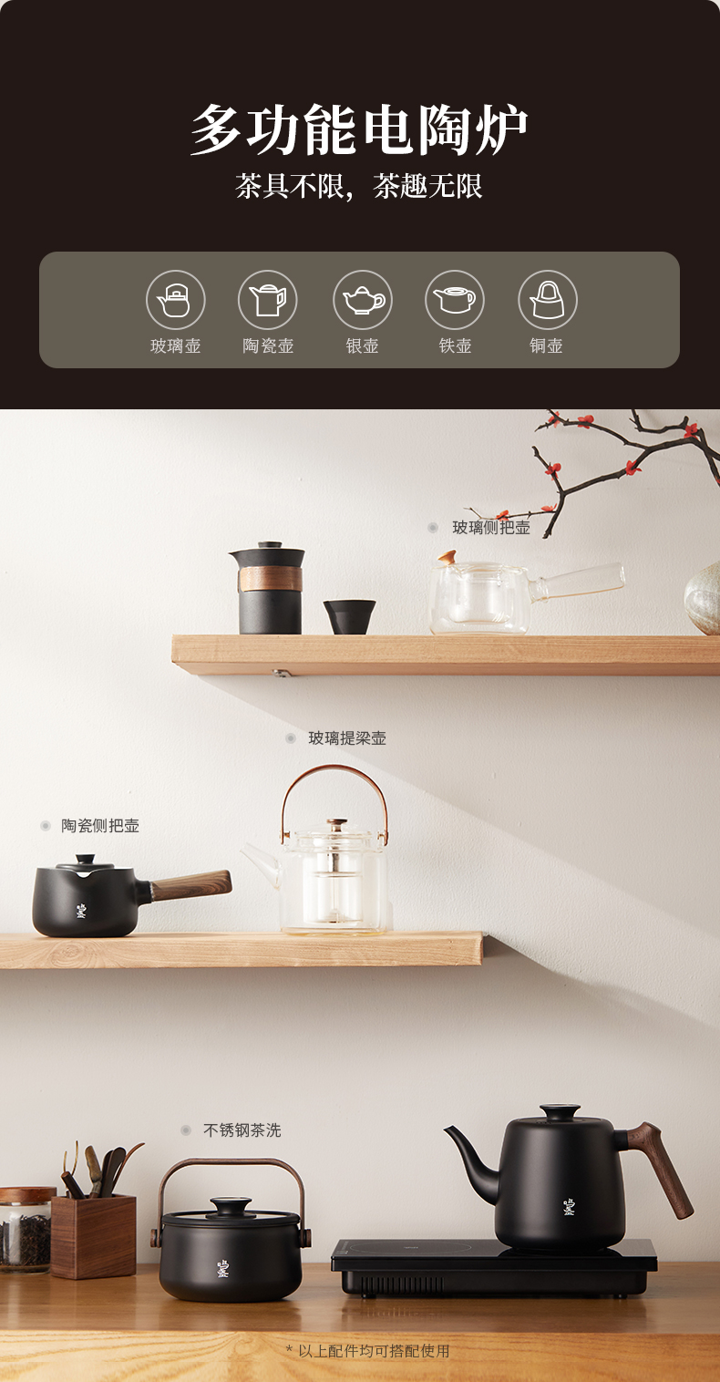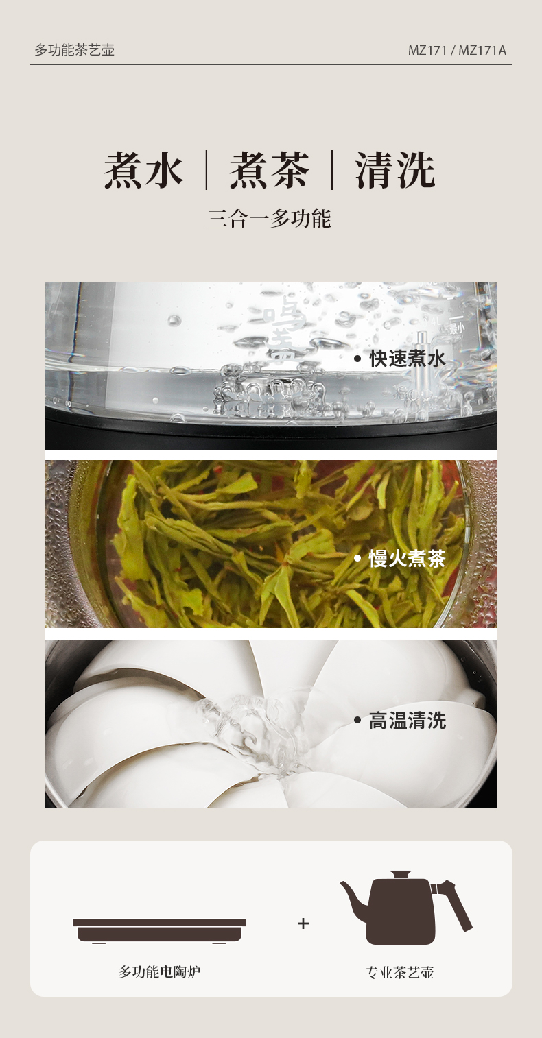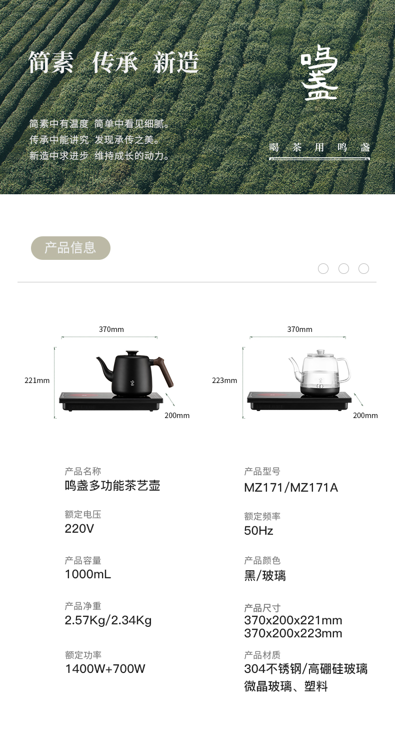鸣盏多功能茶艺壶电陶炉泡茶专用烧水壶全自动上水壶-MZ171A(基础款)