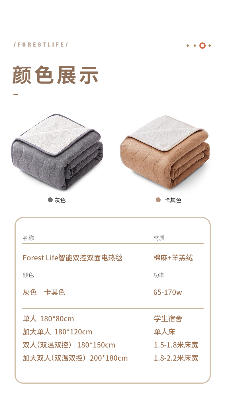 Forestlife 羊羔绒双控电热毯180*150cm[福利品]