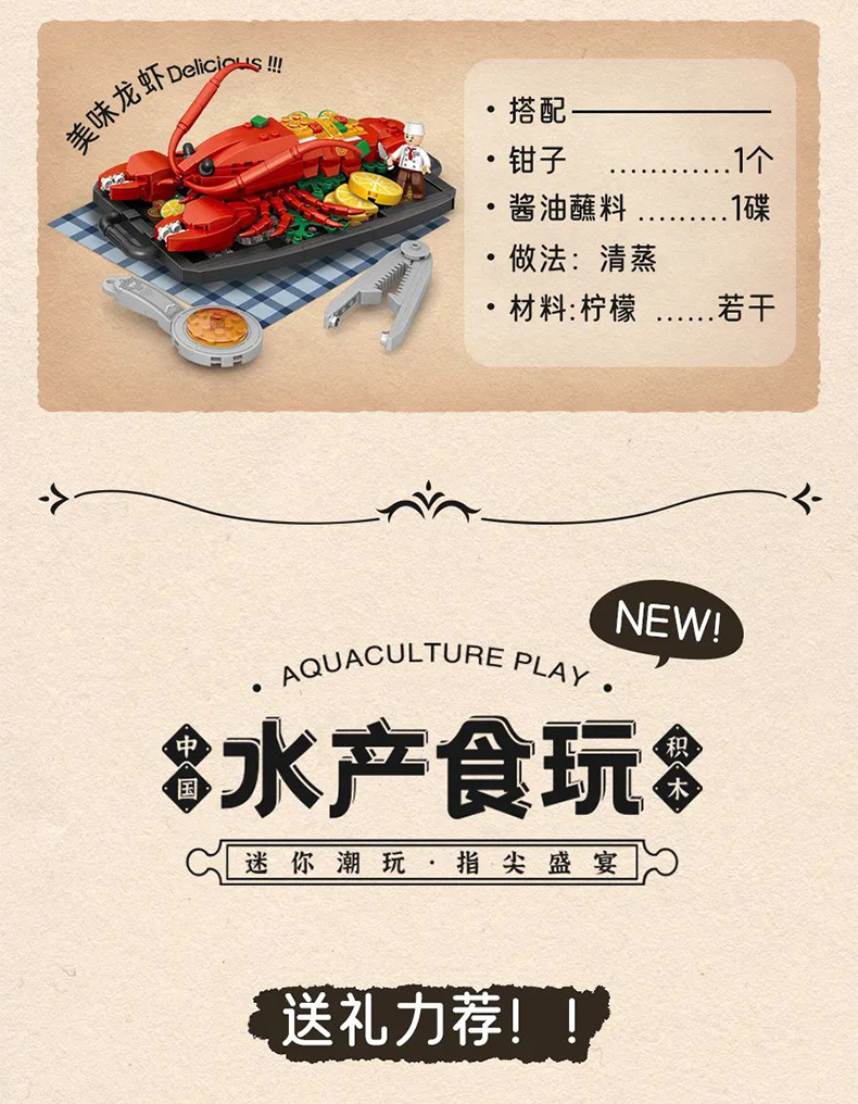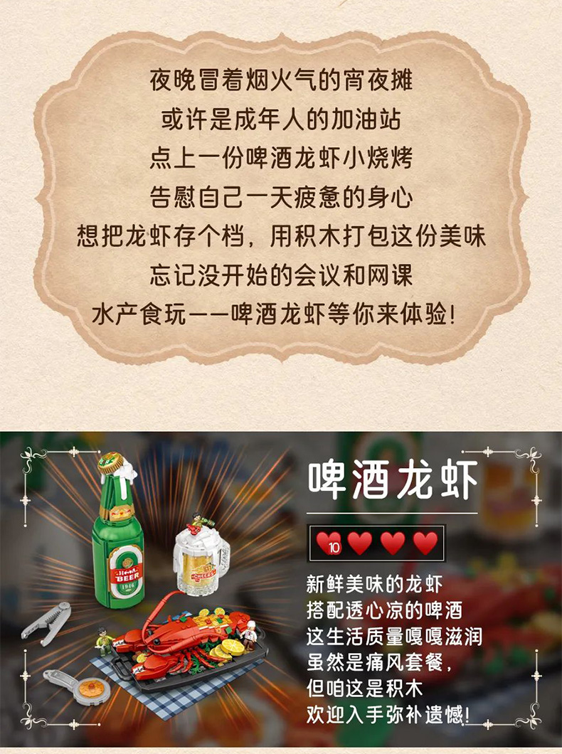 LOZ积木1946啤酒龙虾