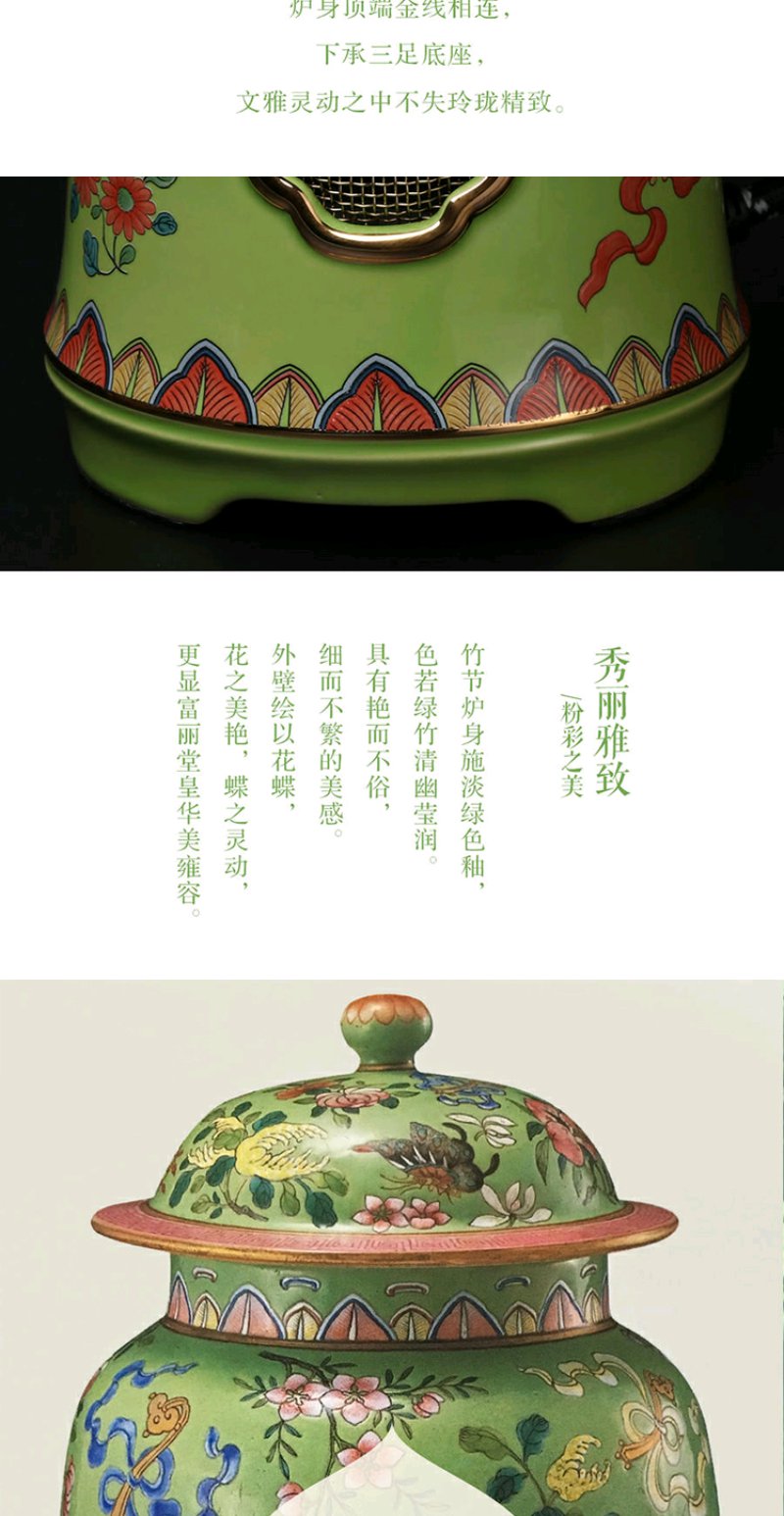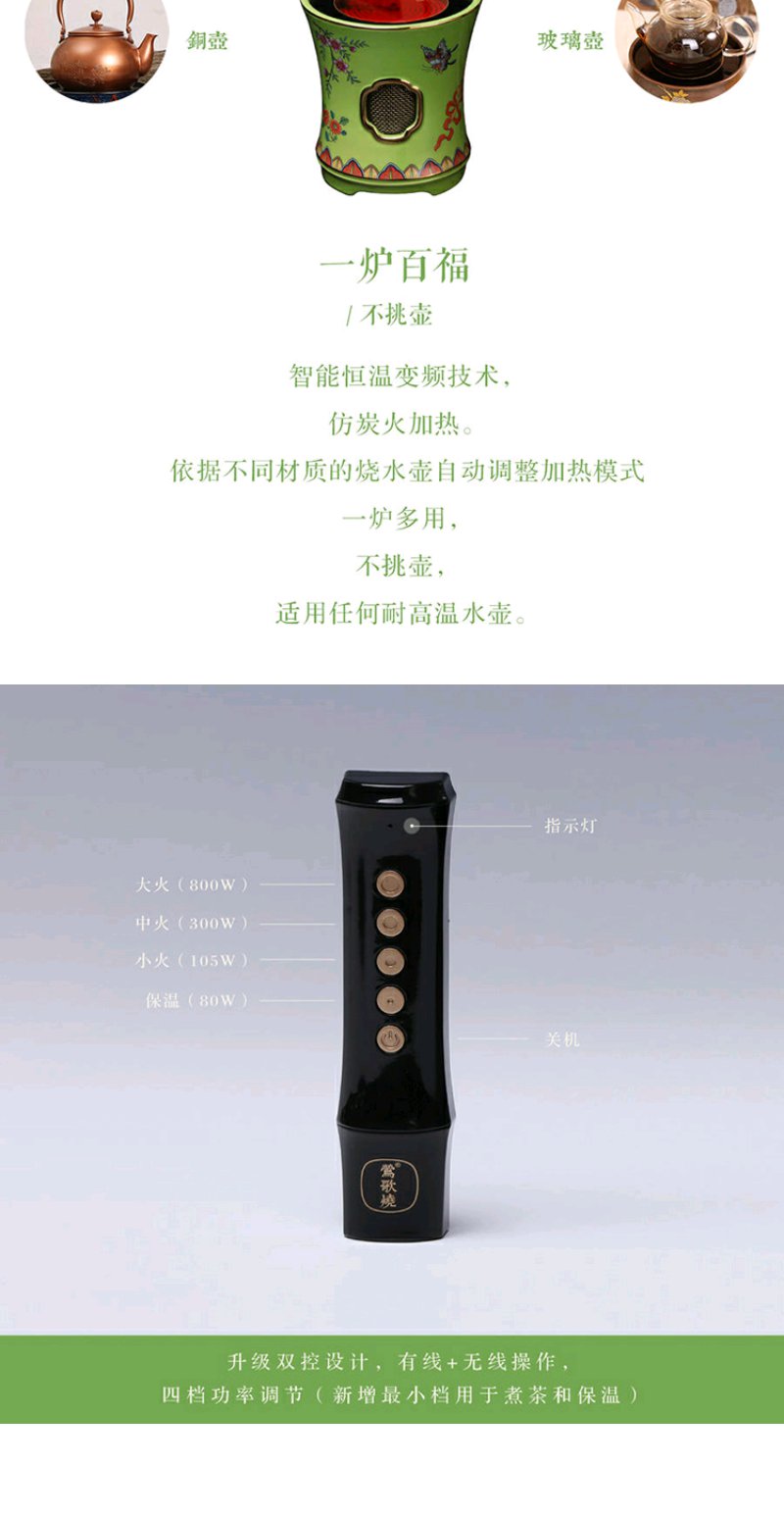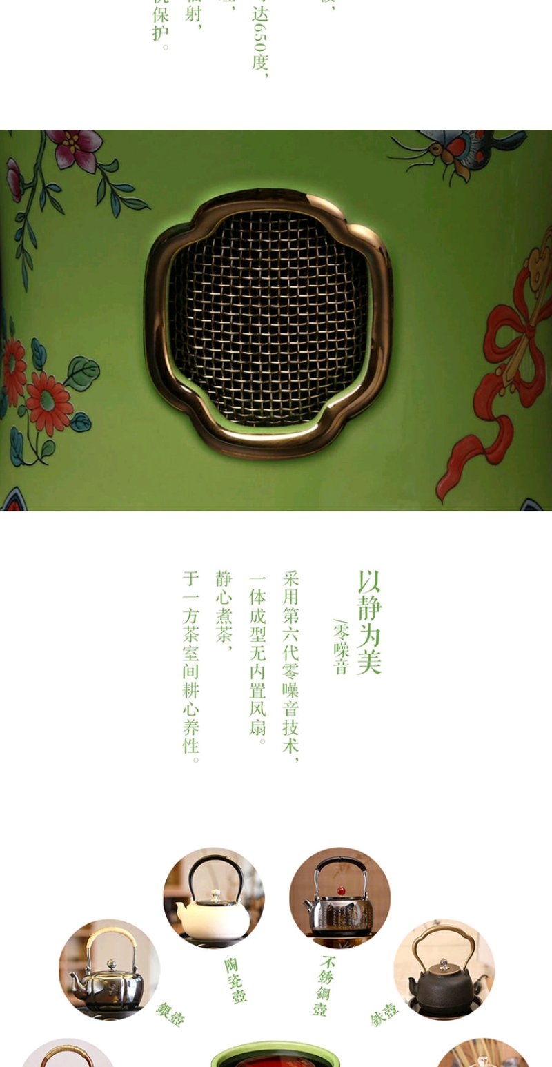 莺歌烧 绿底蝴蝶珐琅电陶炉 电陶炉碳炉 家用静音烧水煮茶器三足绿底蝴蝶纹小凉炉