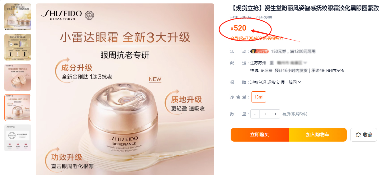 【品名】资生堂盼丽风姿智感抚痕眼霜15ml