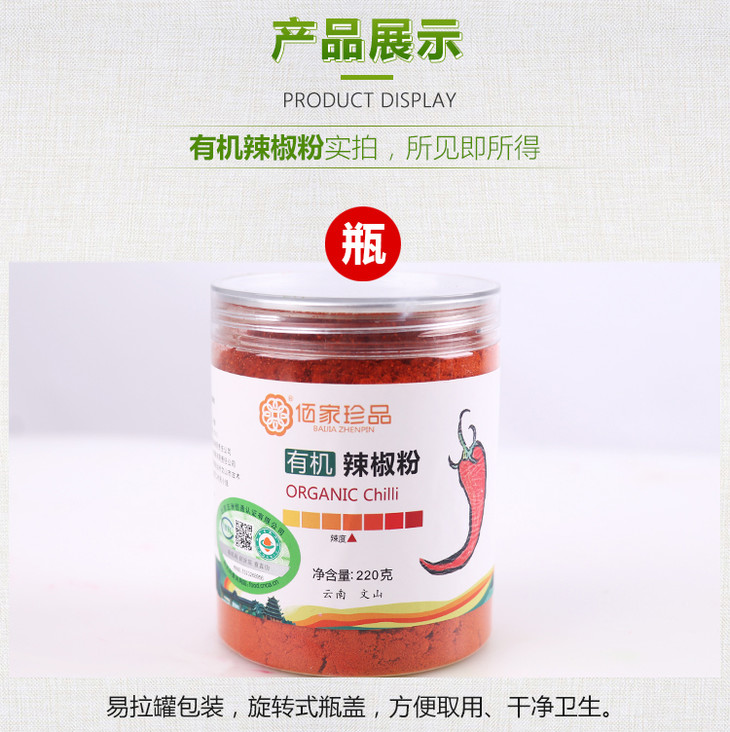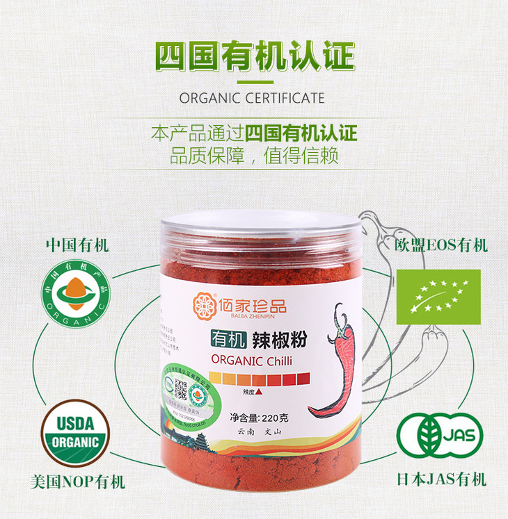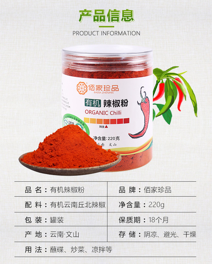 有机辣椒粉220g 商品缩略图0 有机辣椒粉220g 商品缩略图1 有机辣椒粉220g 商品缩略图2 有机辣椒粉220g 商品缩略图3