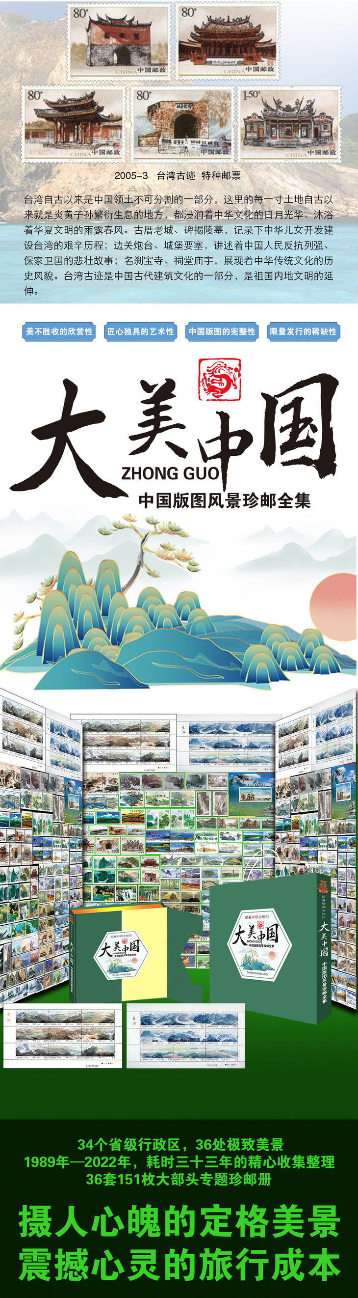《大美中国》版图风景珍邮册,囊括34省151枚锦绣山河珍邮!