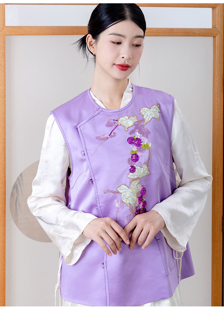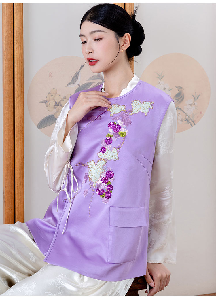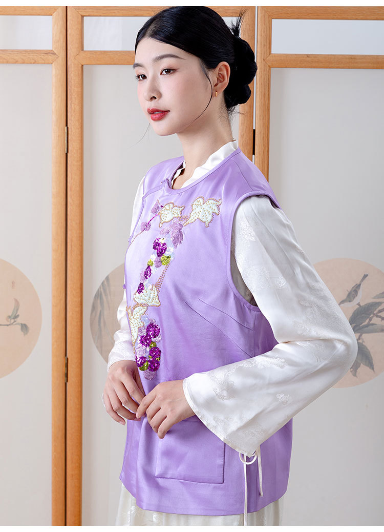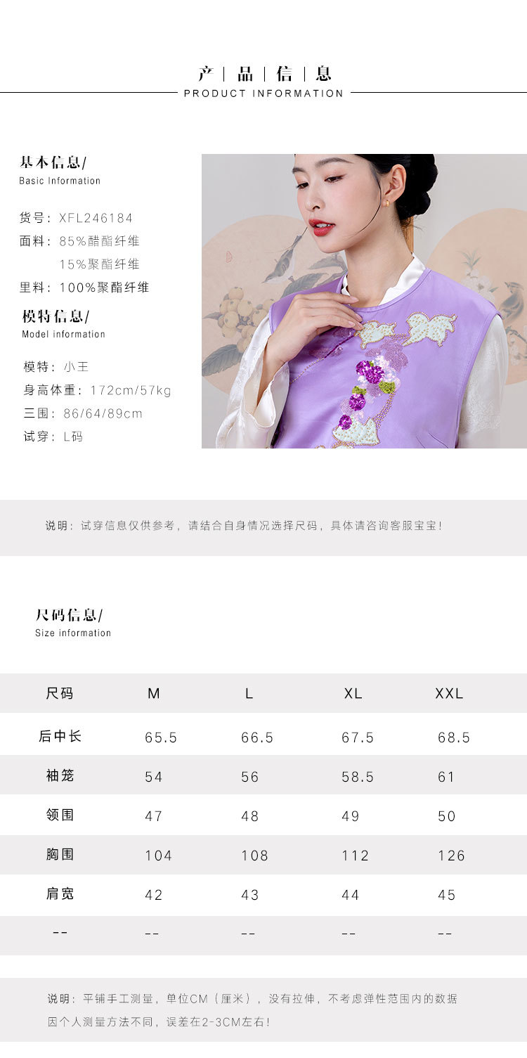 致橡树2024秋季新款中式醋酸钉珠绣花马甲XFL246184 商品图2