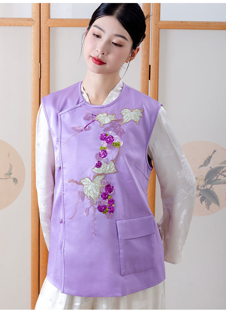 致橡树2024秋季新款中式醋酸钉珠绣花马甲XFL246184 商品图1