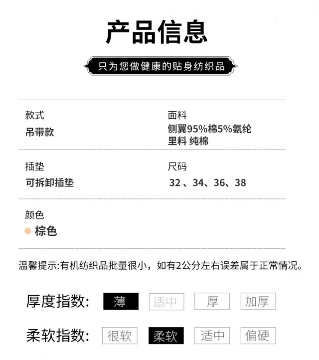 背心内衣 有机彩棉纯棉无痕无钢圈吊带式背心内衣 【京东快递送货上门】