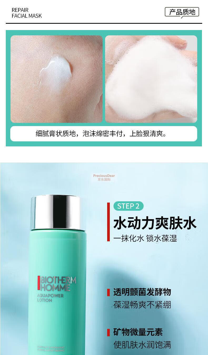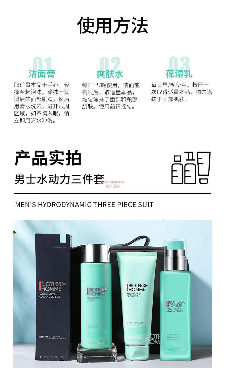 【海豚美购】Biotherm Homme 碧欧泉 男士水动力补水保湿三件套
