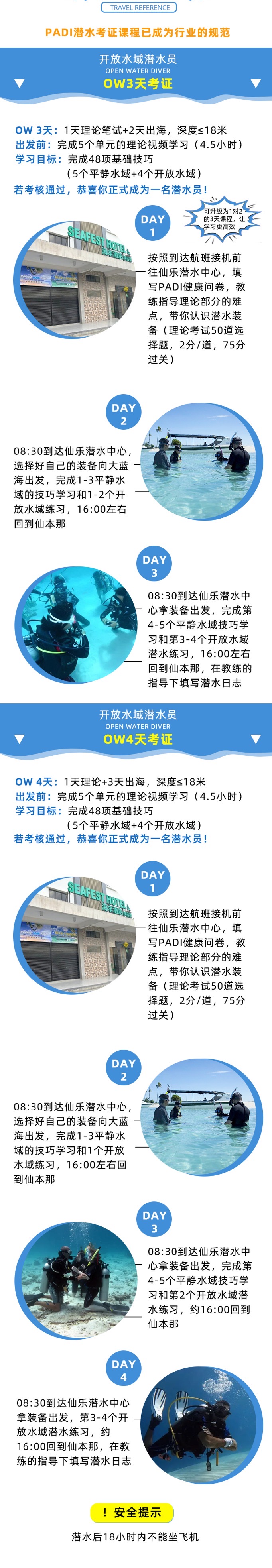‼路线安排的原则是:1⃣ 满足教学需求,安全第一的原则;2⃣尽可能让学生在有限的时间内,既能高质量完成课程,成为潜水员,又能多体验到仙本那不同的路线。