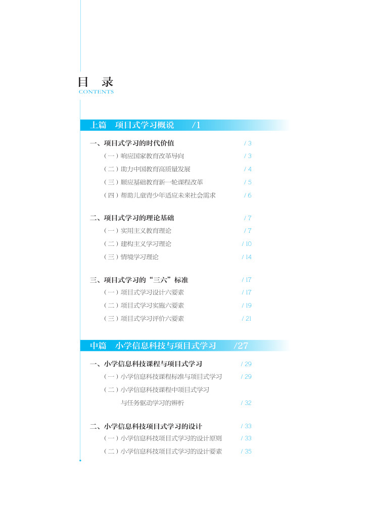 项目式学习,以提升学生核心素养为目标,旨在帮助学生通过解决真实世界中的复杂问题来学习知识和技能。“项目式学习实践指导丛书” 是一套体现新课标要求、具有理论支撑且能直接参考借鉴的系统性项目式学习丛书。《义务教育课程方案和课程标准 (2022年版)》中对项目式学习的引入,也体现了该模式在学科应用中的重要性,这对于教育领域的学术研究和实践探索具有积极的推动作用。《项目式学习实践指导 小学信息科技》为本丛书中的一本,该书主要内容包含上篇、中篇、下篇三部分。上篇为项目式学习概说,集中阐述项目式学习是什么,为什么要开展项目式学习以及如何开展等基本内容,旨在让读者对项目式学习有整体把握。中篇围绕小学信息科技和项目式学习的关系集中阐述了开展项目式学习的基本原则、程序、策略和途径等,对该学科的项目式学习开展及运用提供理论支撑。下篇为该学科的优质项目式学习案例。本书的出版旨在为广大教师开展项目式学习提供抓手,帮助更多的中小学教师深入理解项目式学习的教学理念,并获得设计、实施项目式学习的能力。