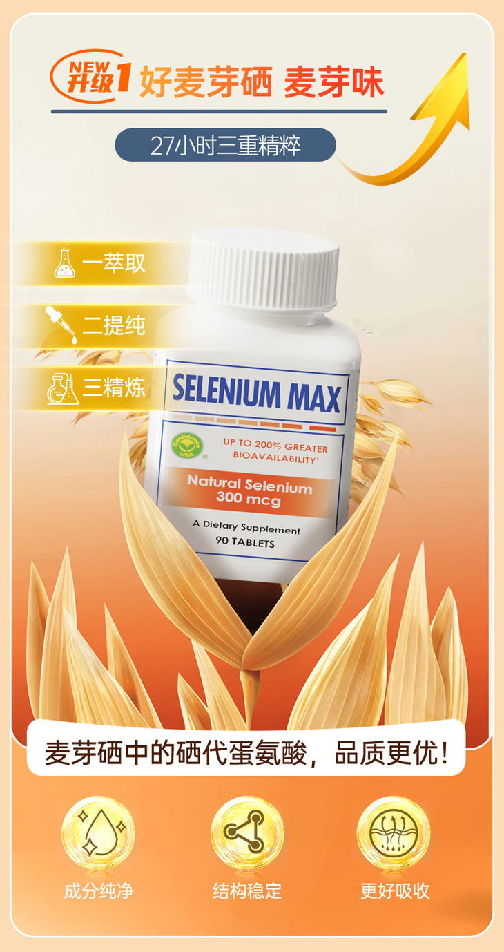 【日常好物丨美国麦芽硒元素片】精选好麦芽硒,27小时三重精粹,每天1片,补充硒元素