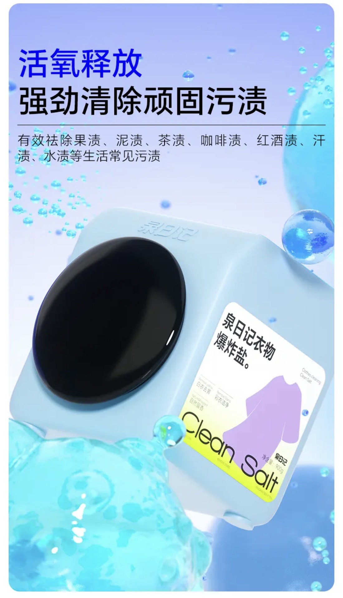 【全新升级】第四代泉日记衣物爆炸盐去污去渍活氧彩漂校服净