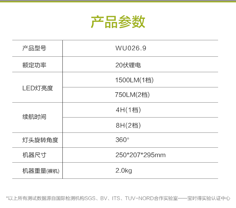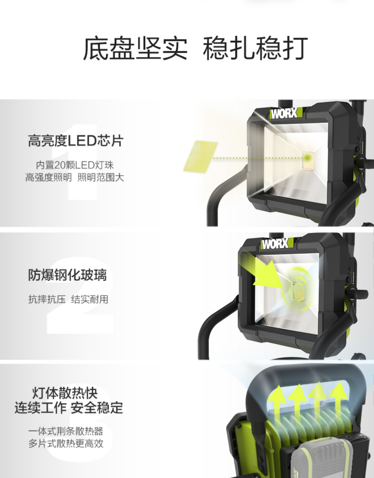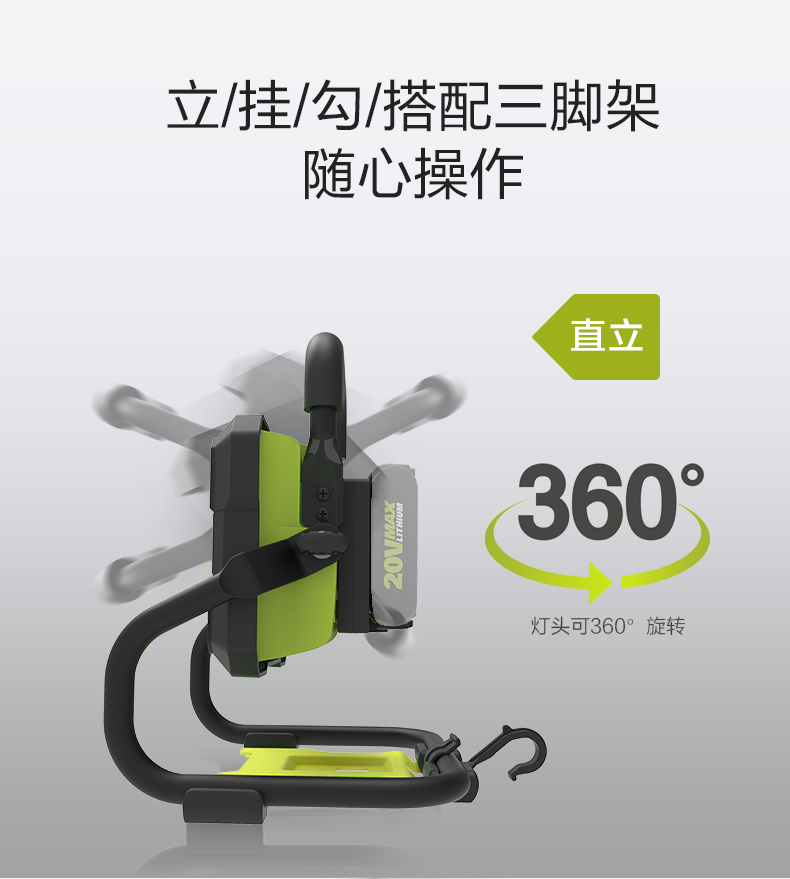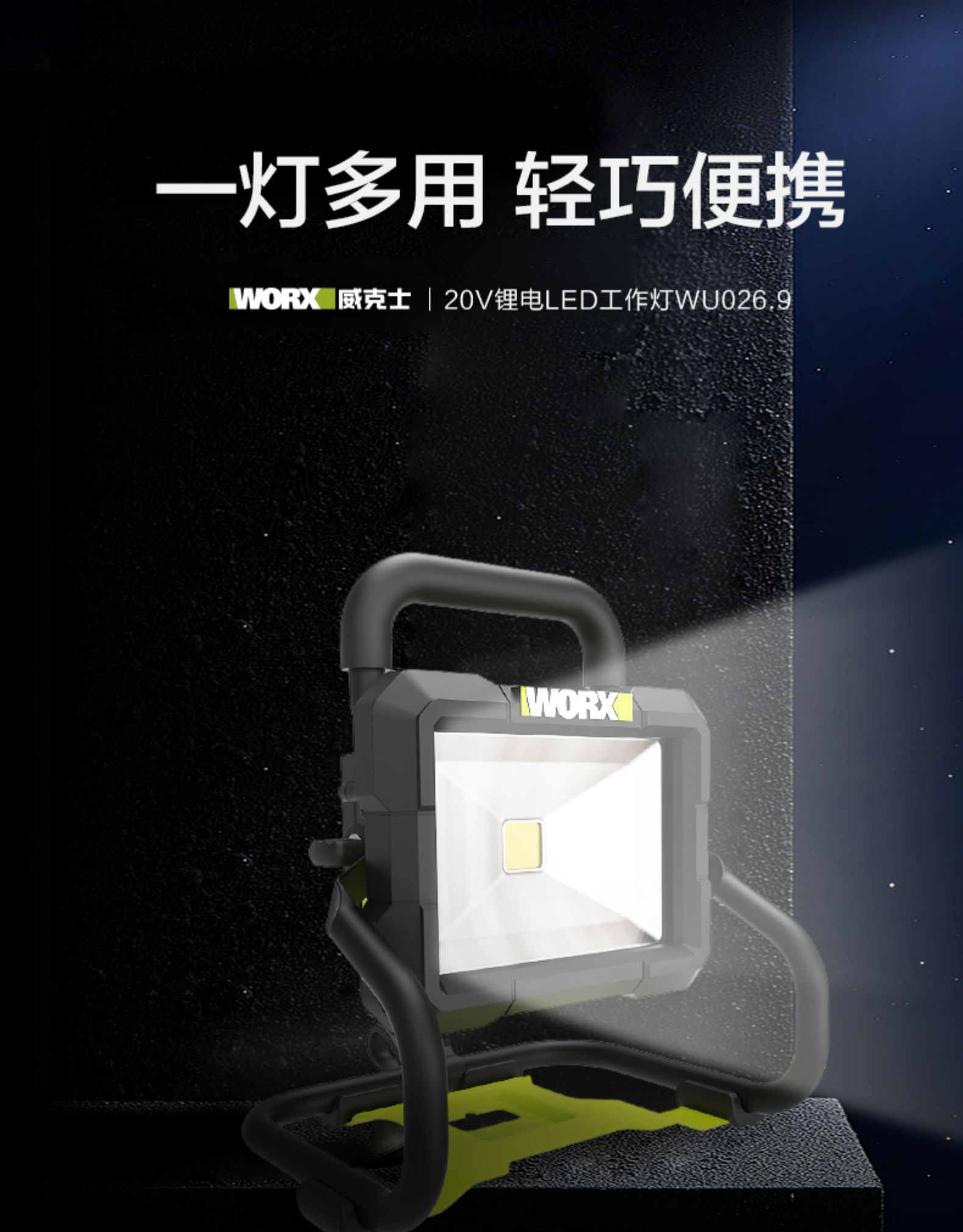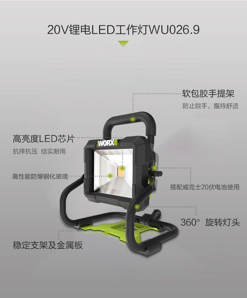 威克士WU026手提20伏锂电LED强光投光灯充电型户外露营照明灯射灯