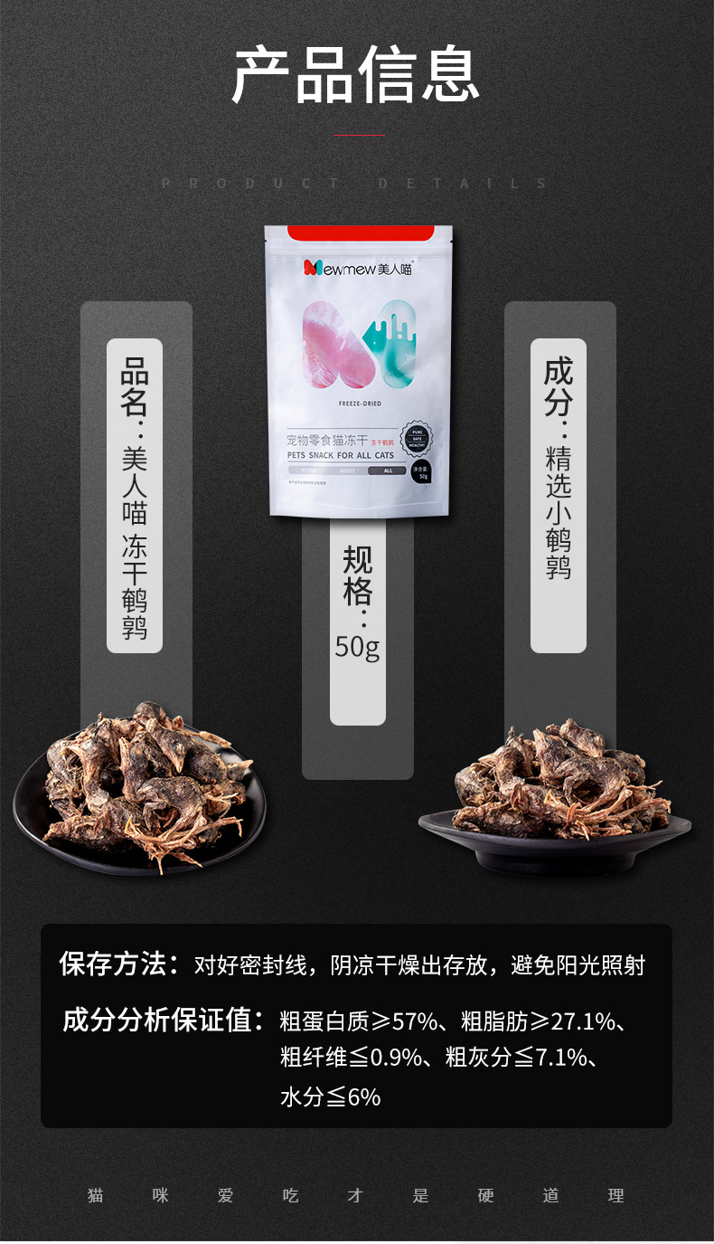 美人喵 冻干鹌鹑 猫犬通用零食 新鲜食材无添加