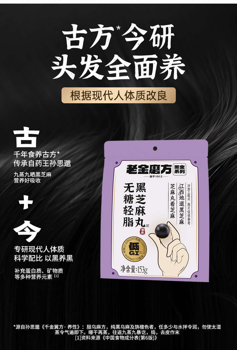 老金磨方 无糖轻脂黑芝麻丸153g