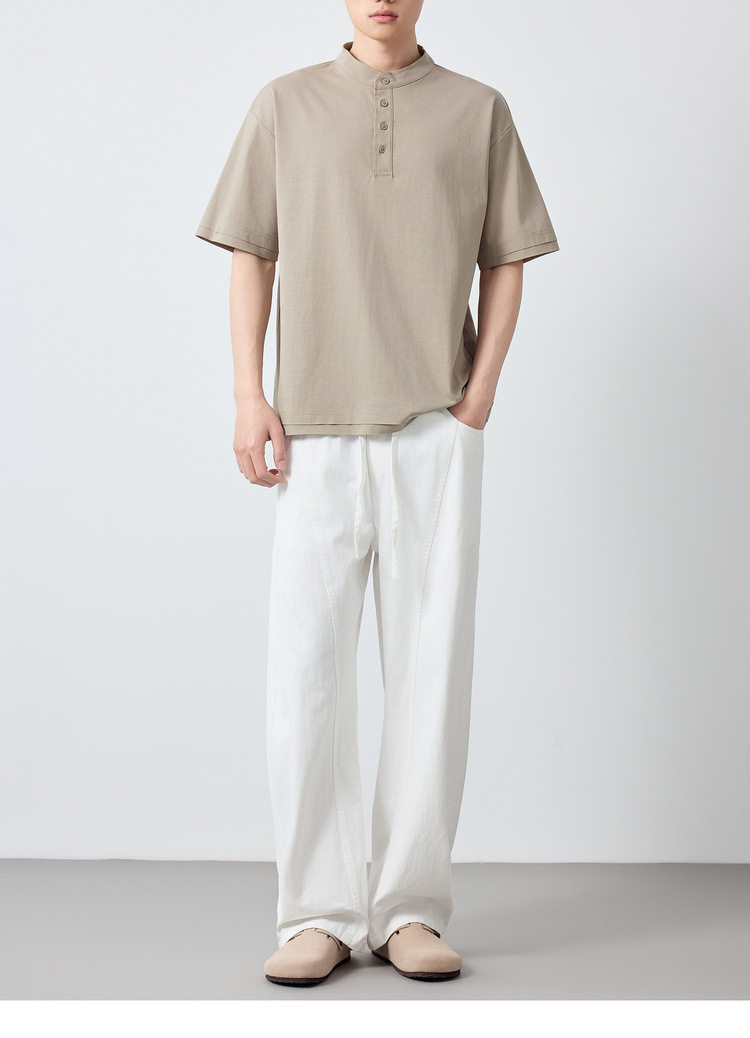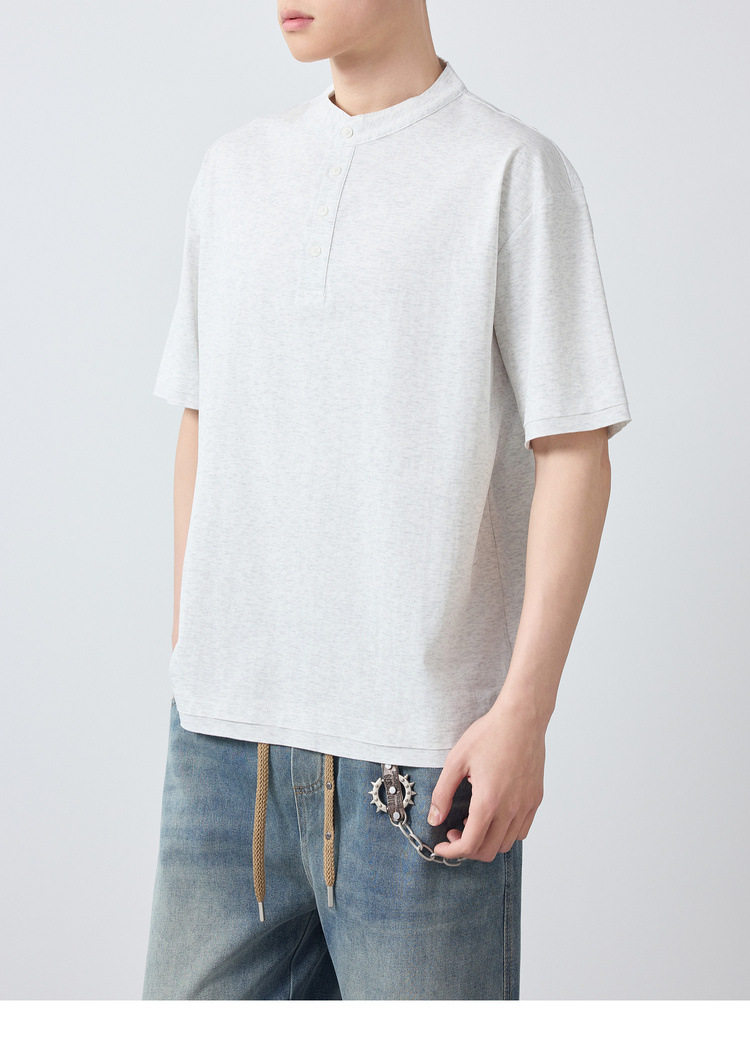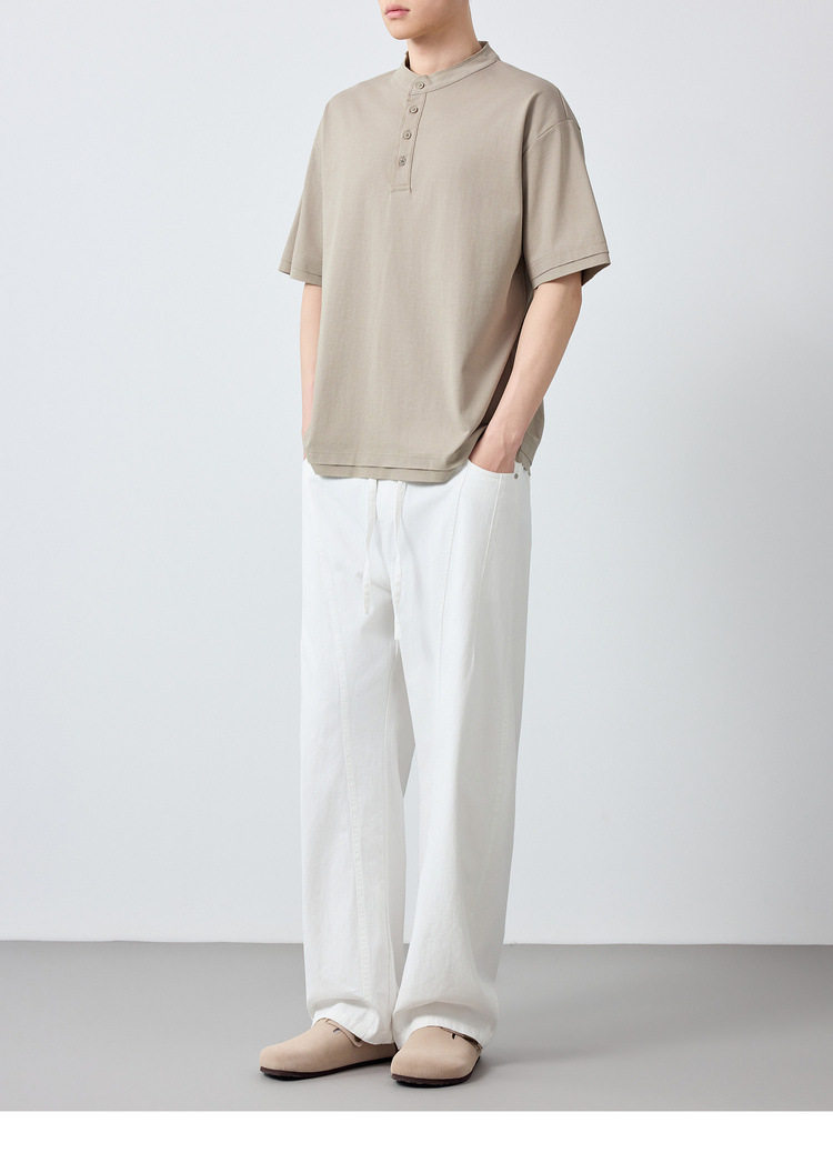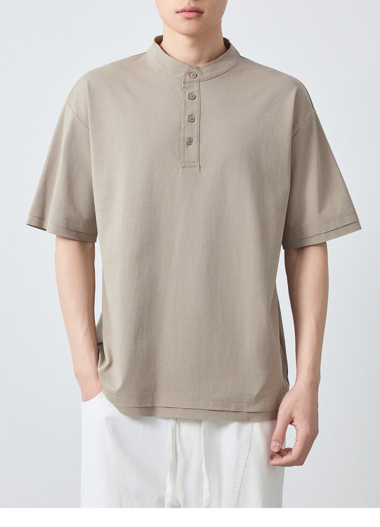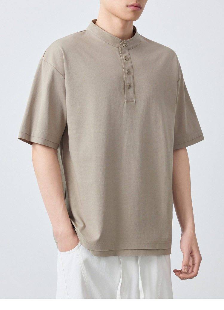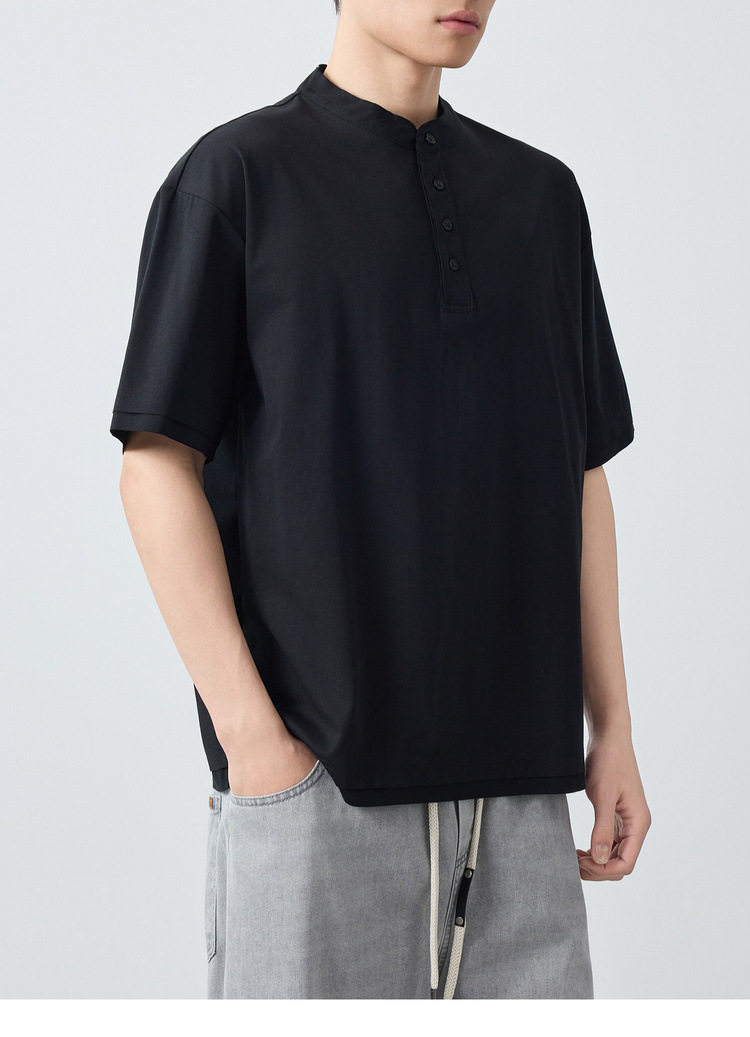 墨麦客男装高智通勤亨利领t恤男2026春季新款简约男士短袖75225.