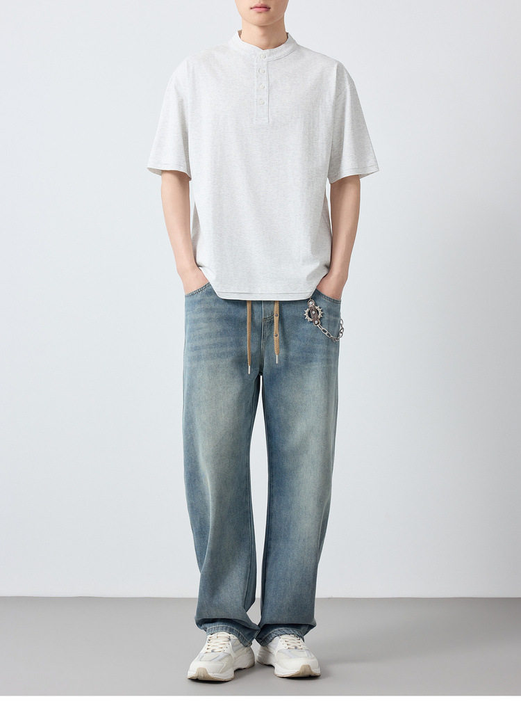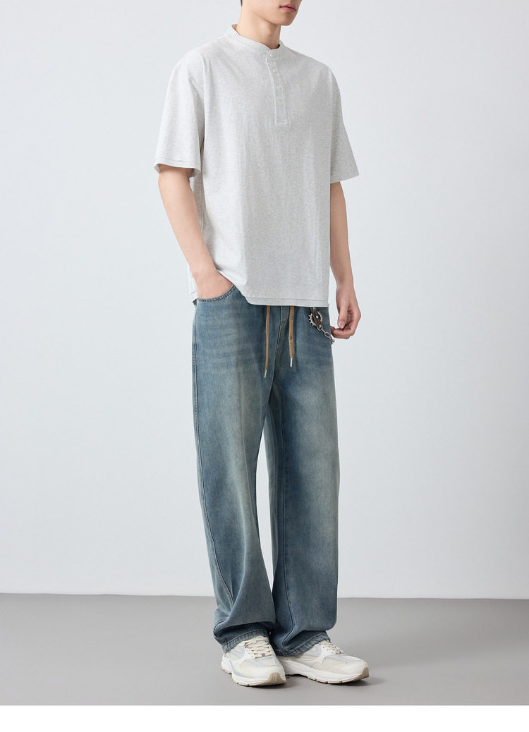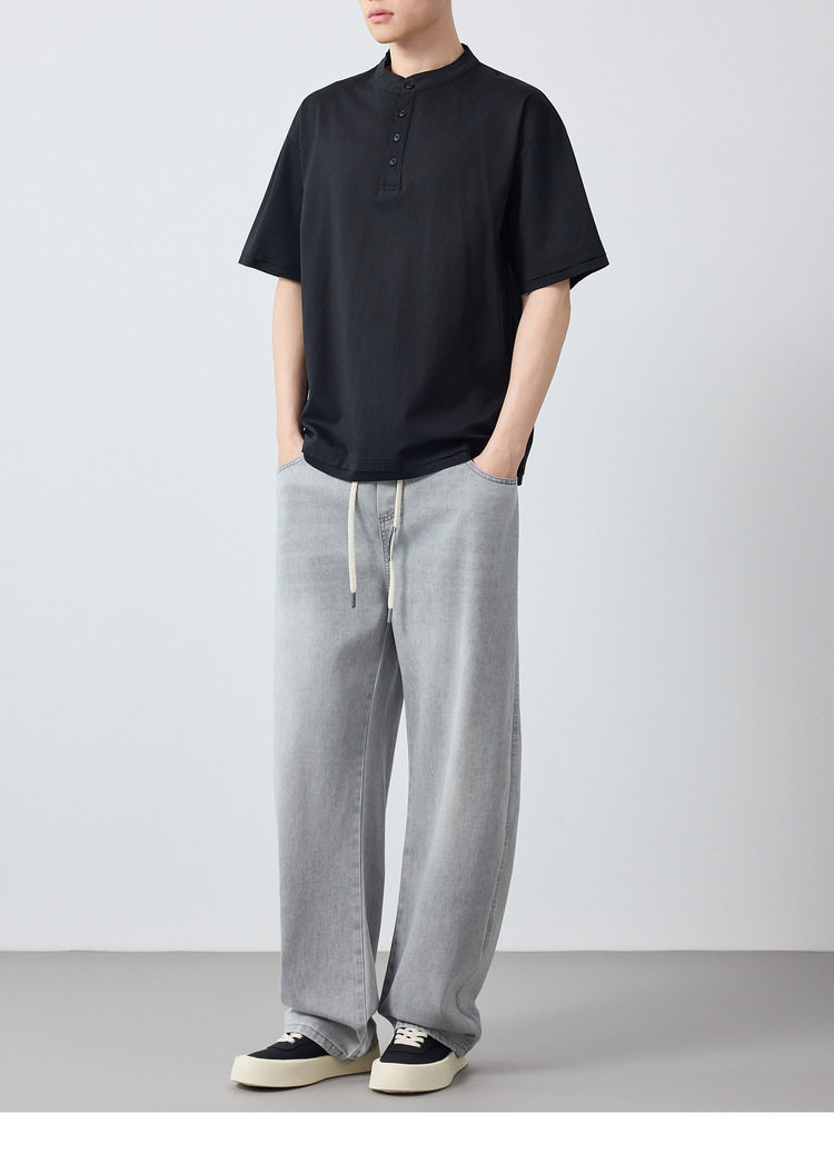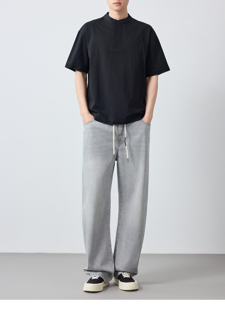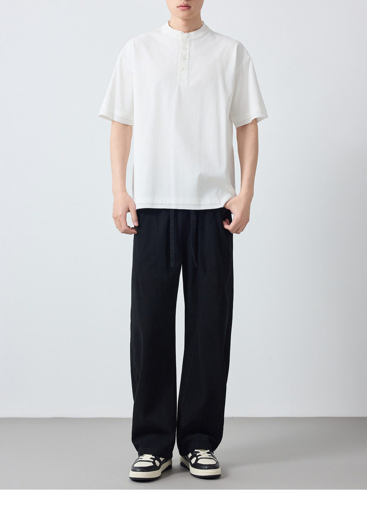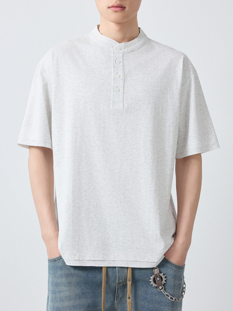 墨麦客男装高智通勤亨利领t恤男2026春季新款简约男士短袖75225.