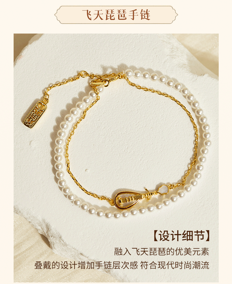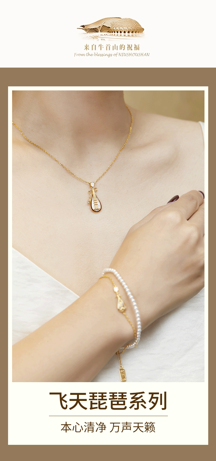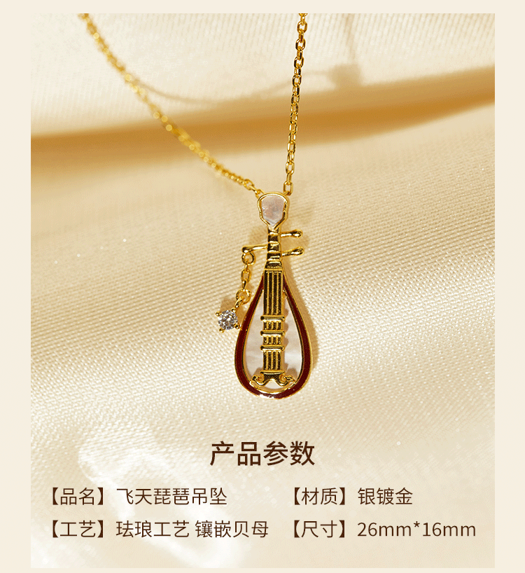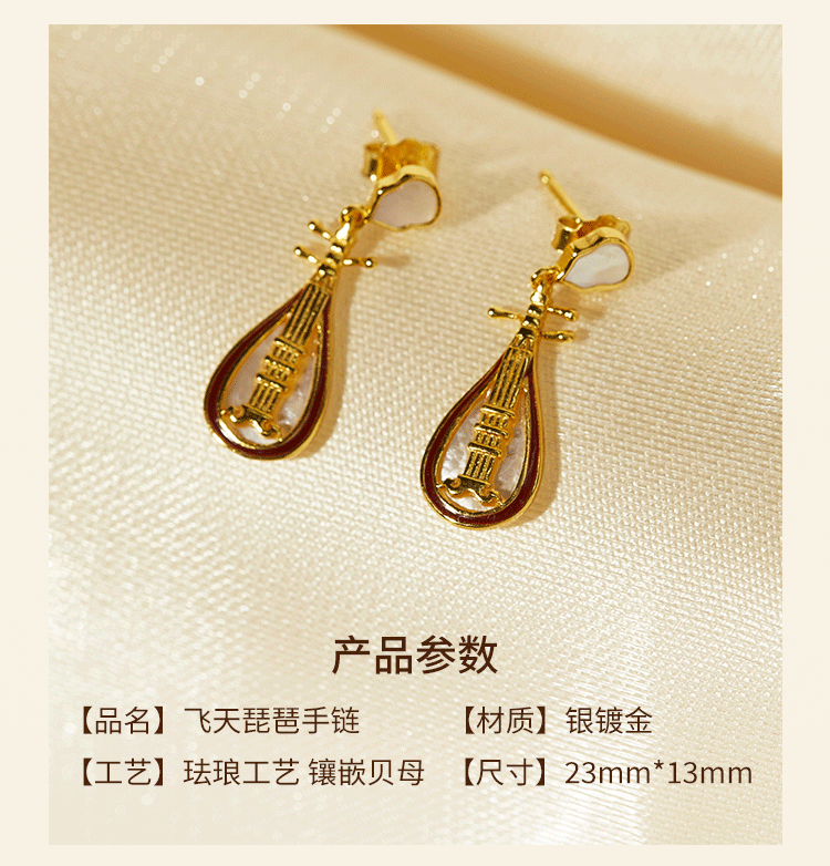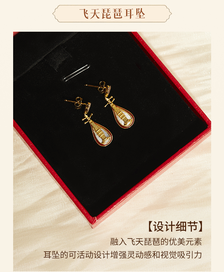 牛首山飞天琵琶系列吊坠银镀金耳坠银镀金敦煌元素珐琅工艺国潮风