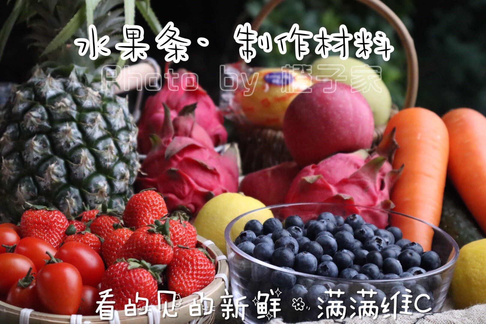 【原材料】 苹果,凤梨,红枣,火龙果,蓝莓,黄瓜,猕猴桃,草莓,胡萝卜等