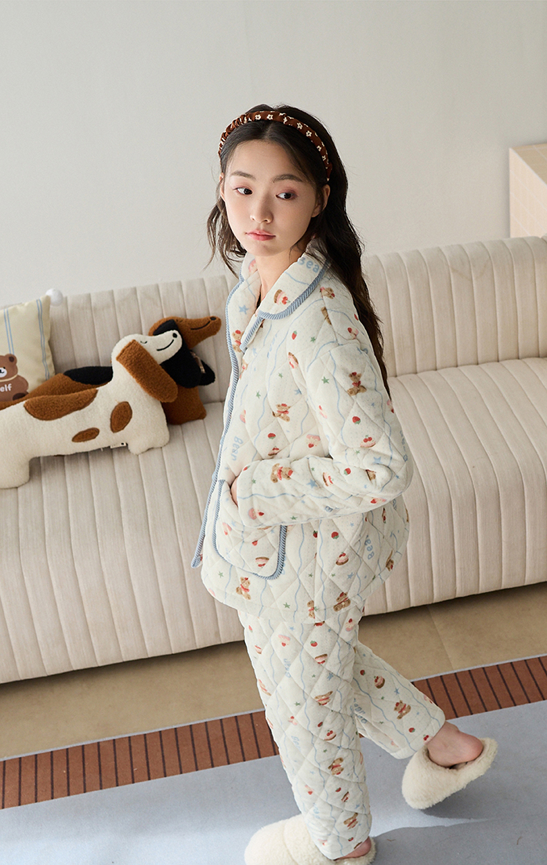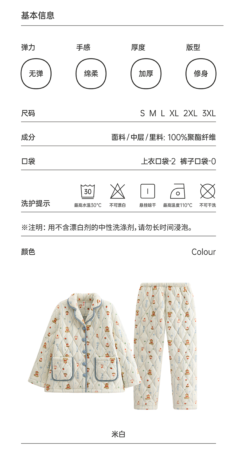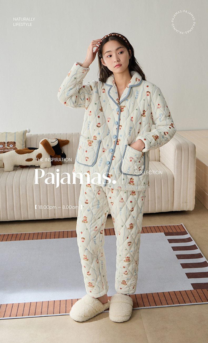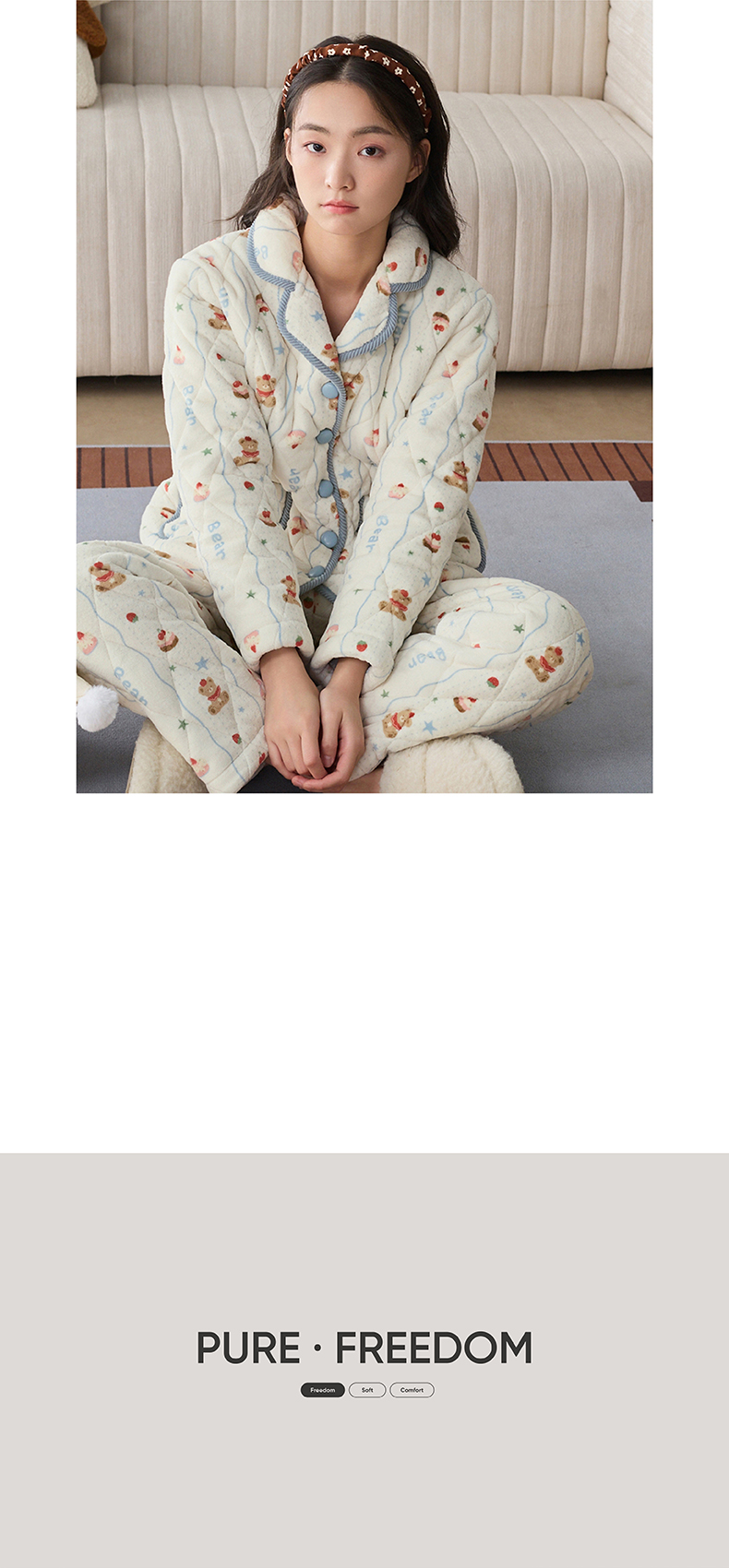 芬腾新款女士睡衣冬季长袖长裤三层夹棉珊瑚绒加厚保暖家居服套装