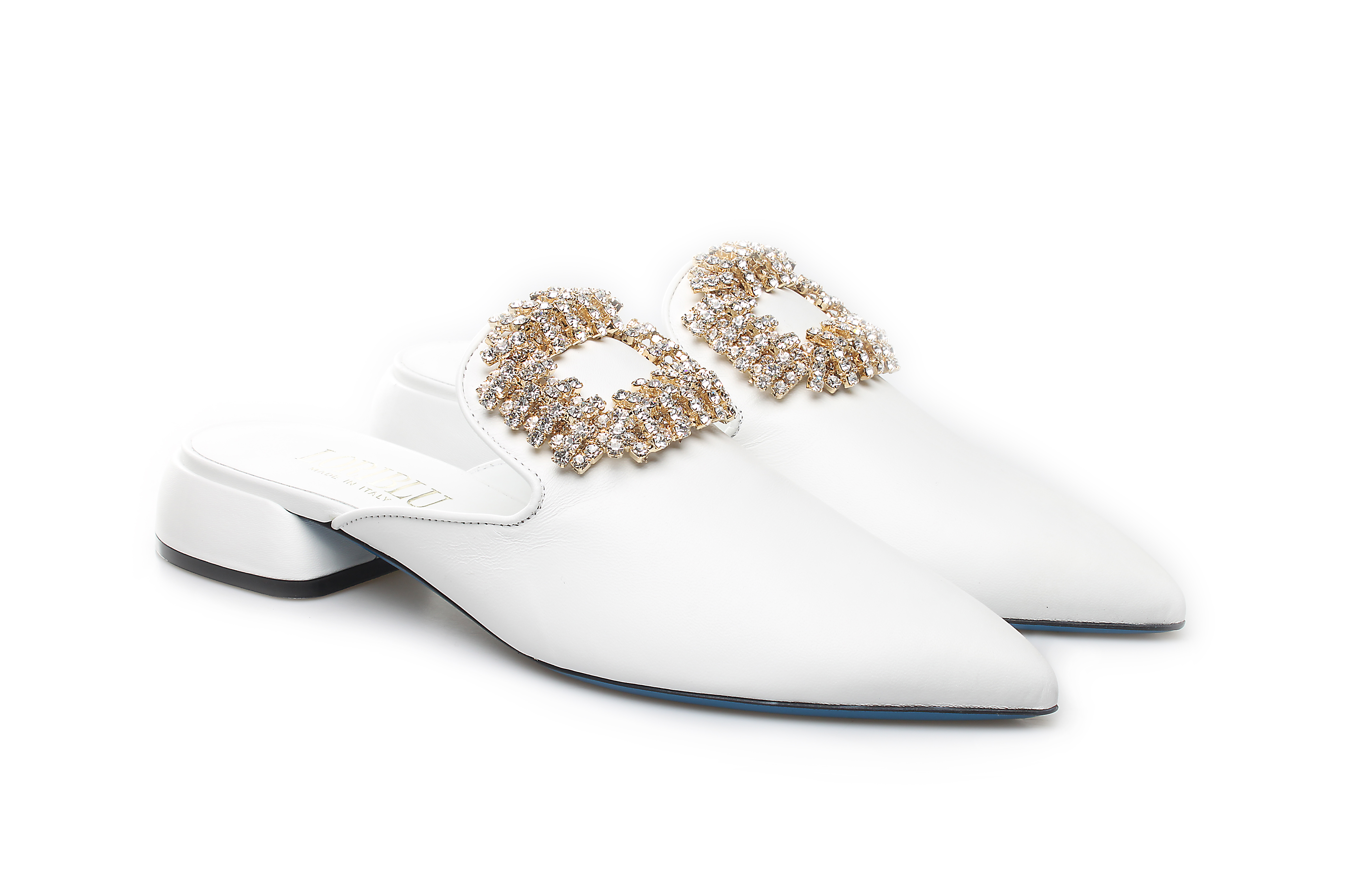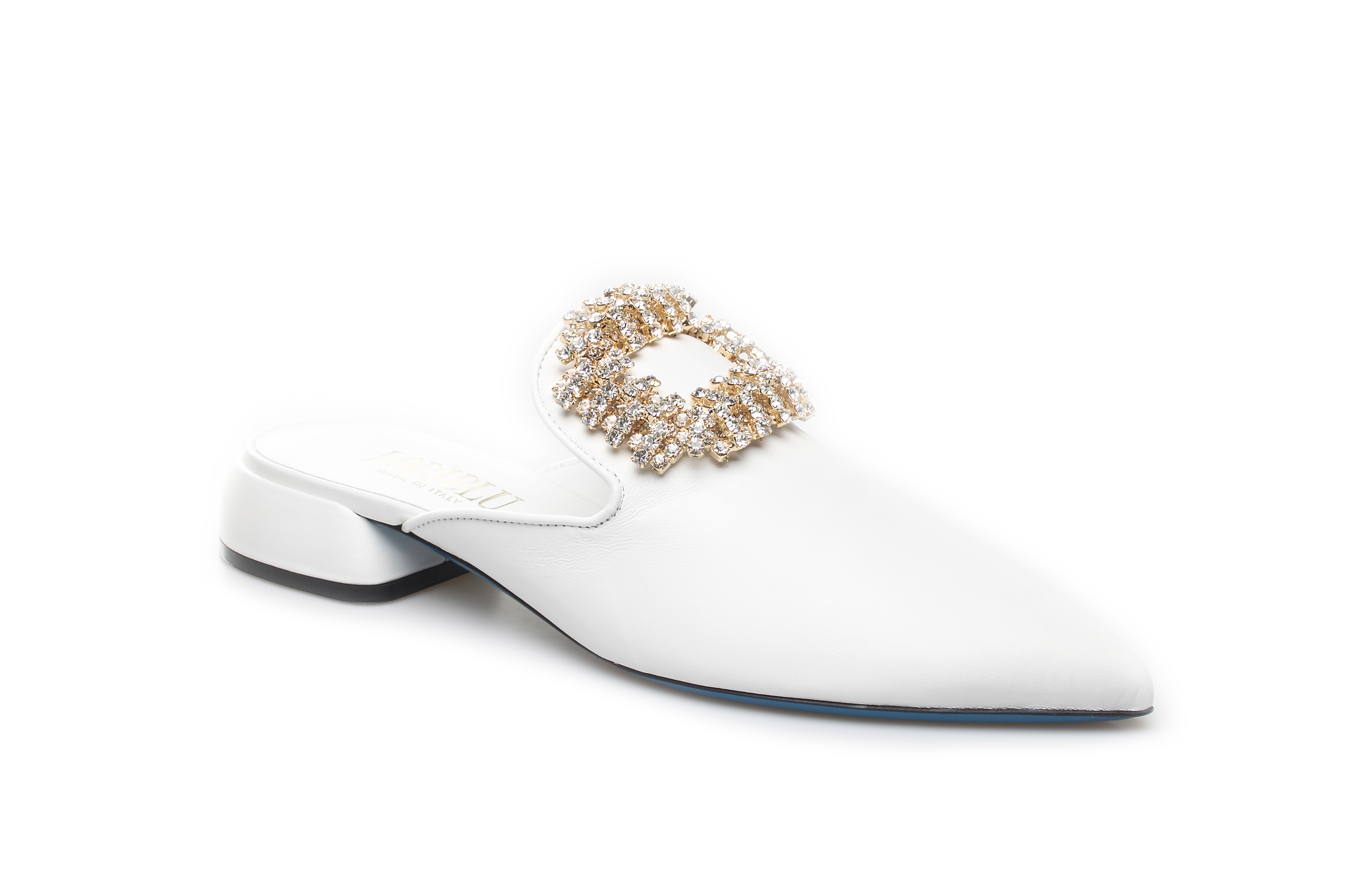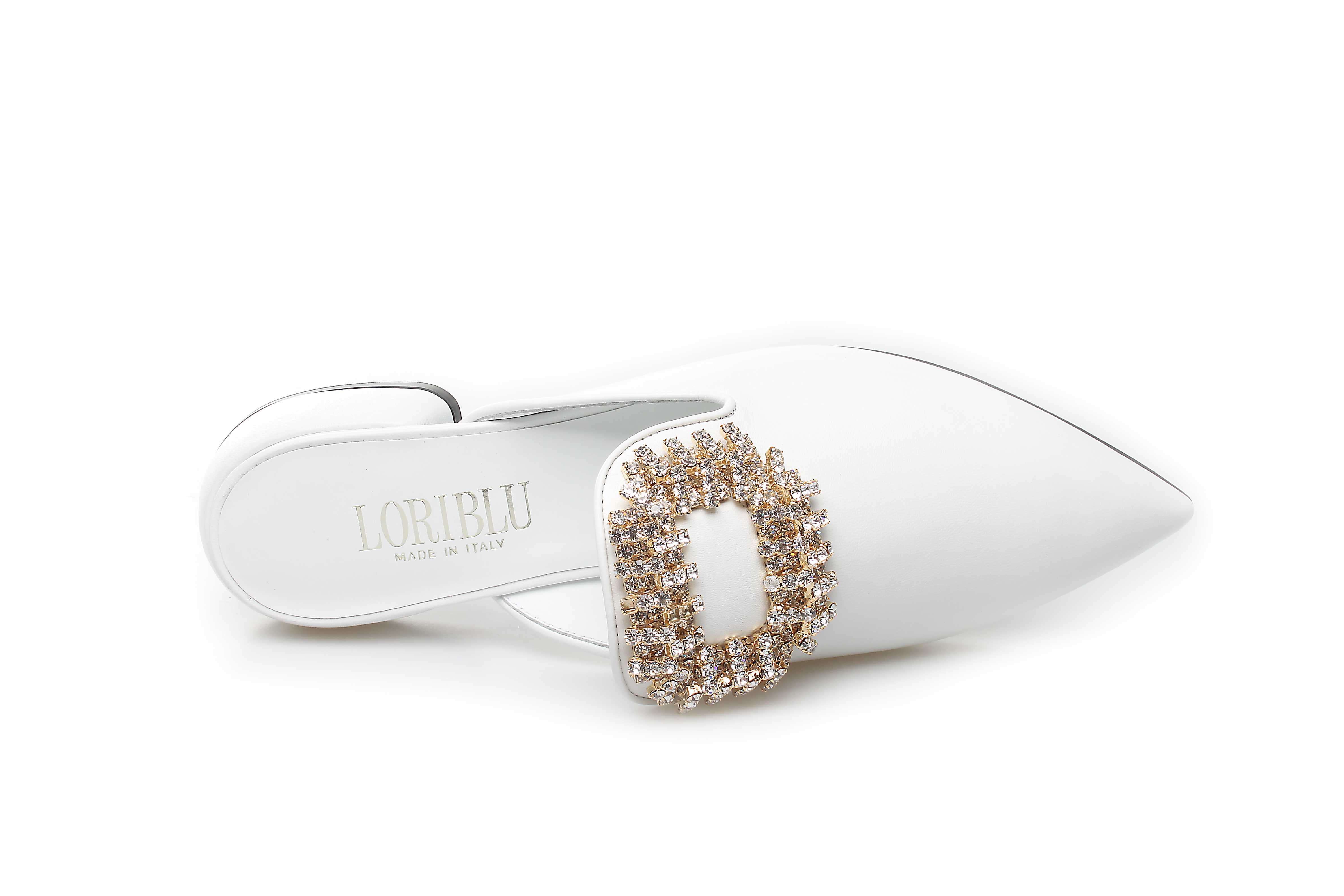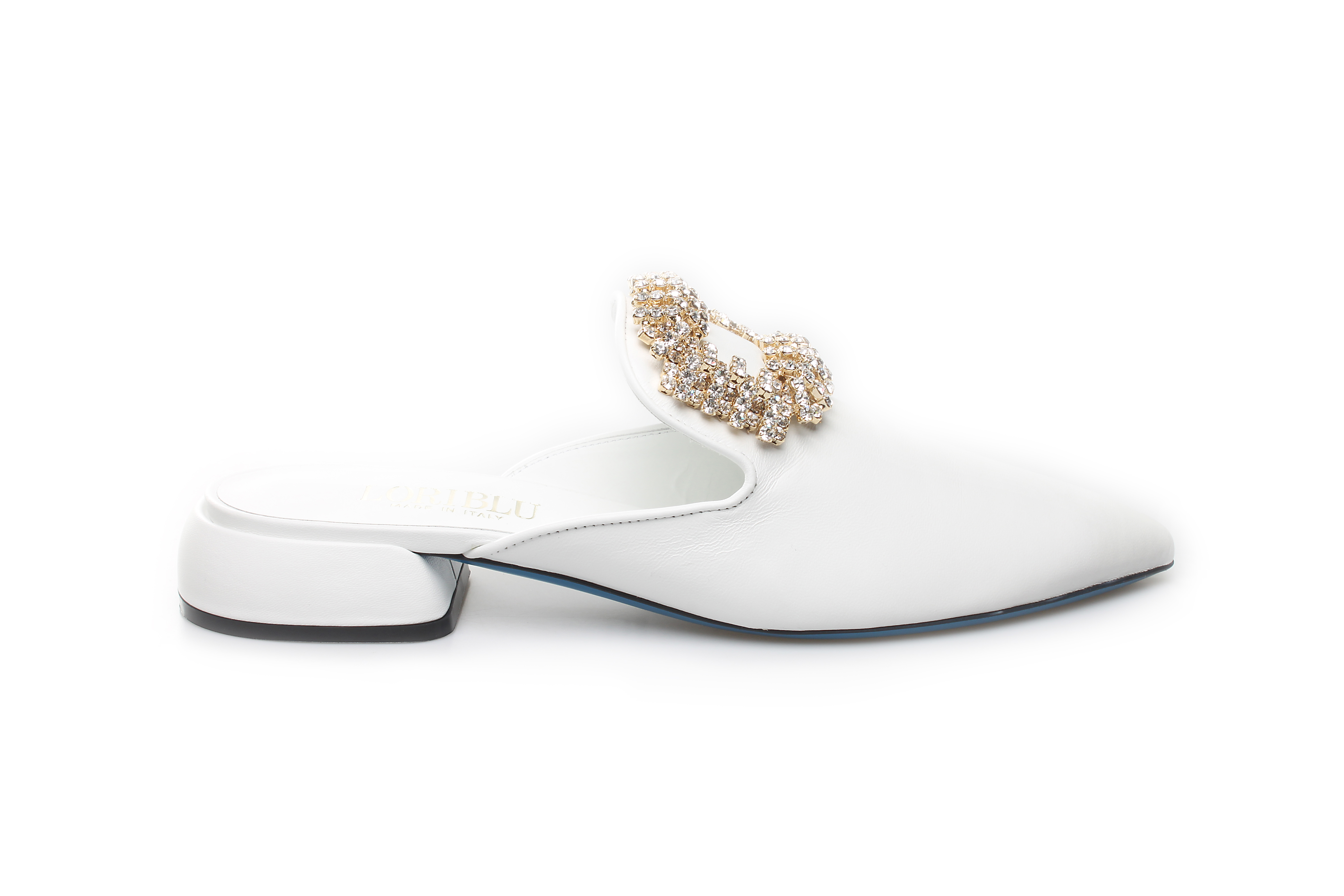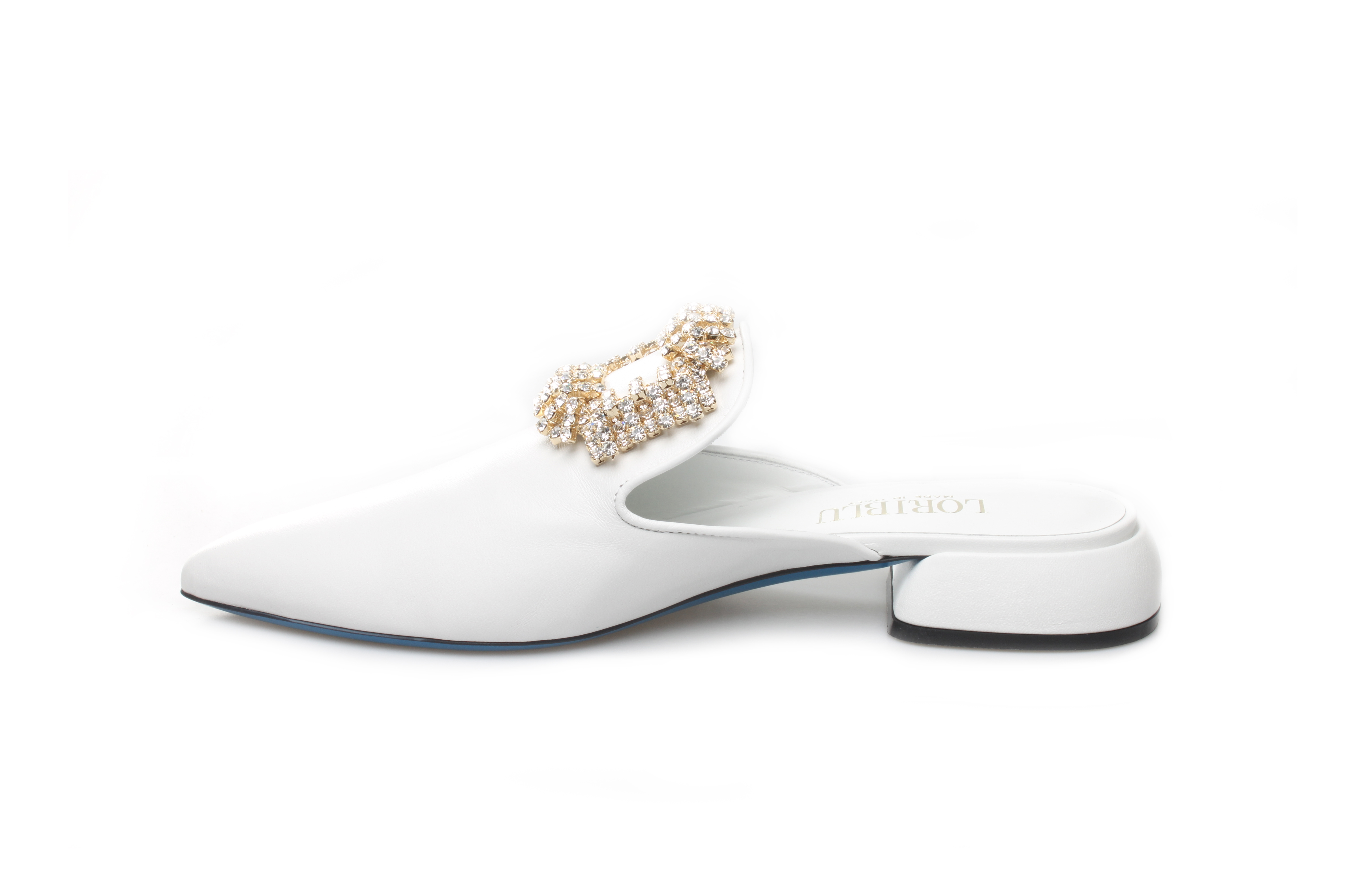 豪麟名鞋奥莱LORIBLU女鞋穆勒鞋羊皮革+施华洛世奇LR05650B白色 原价5260元