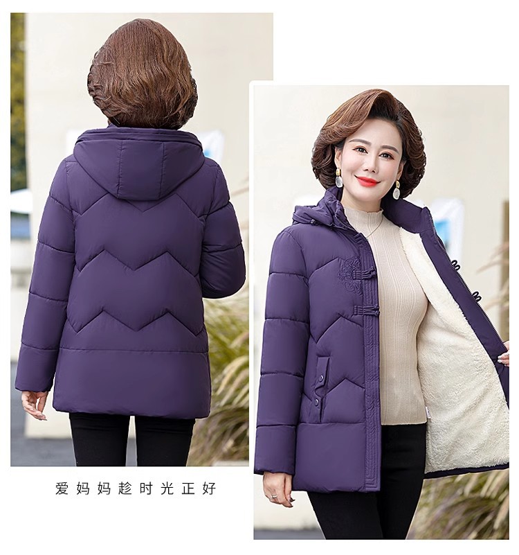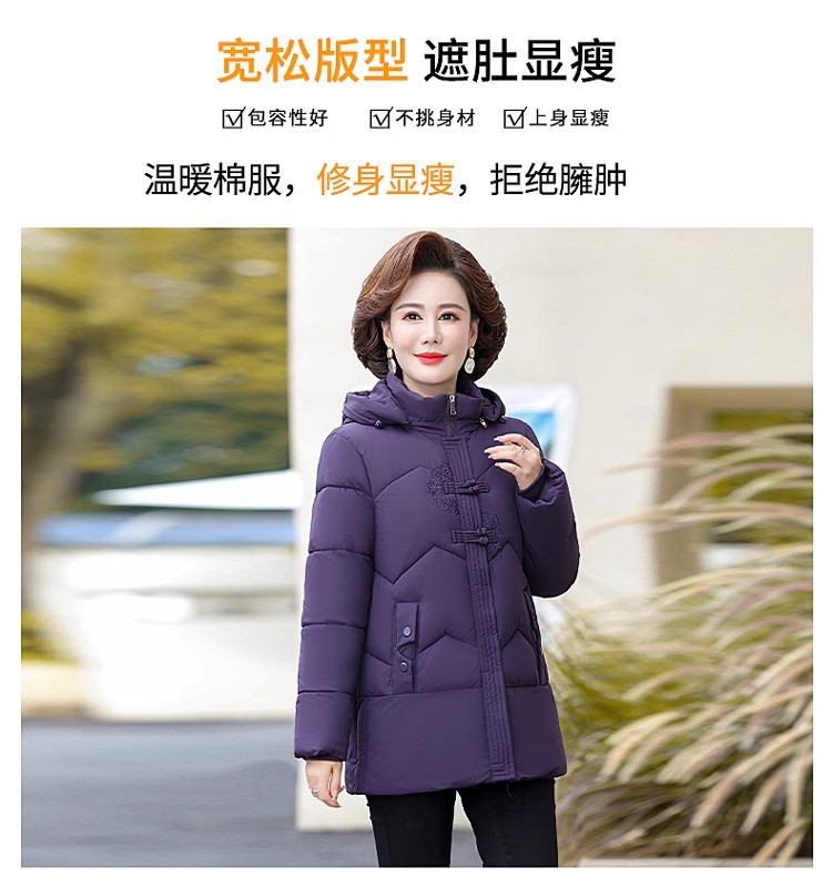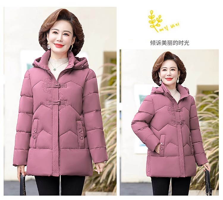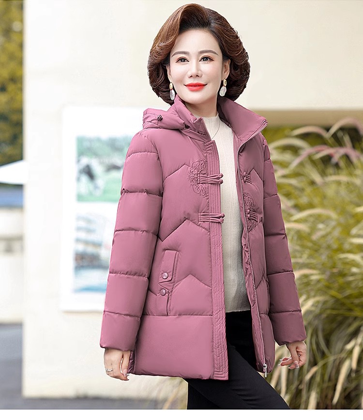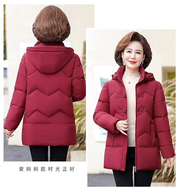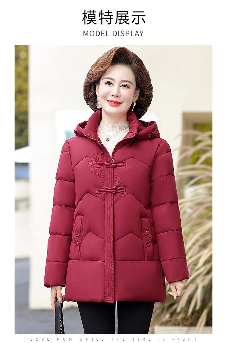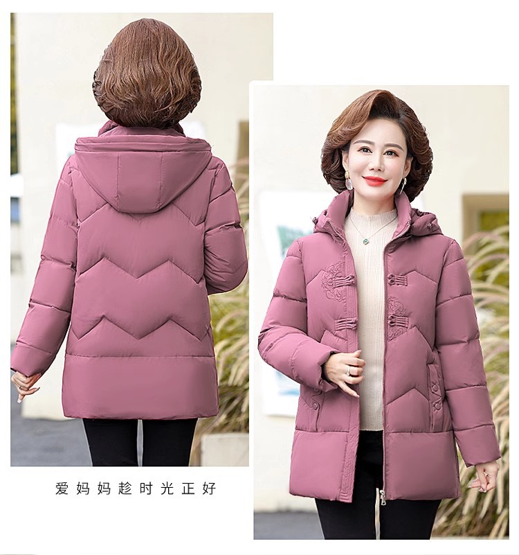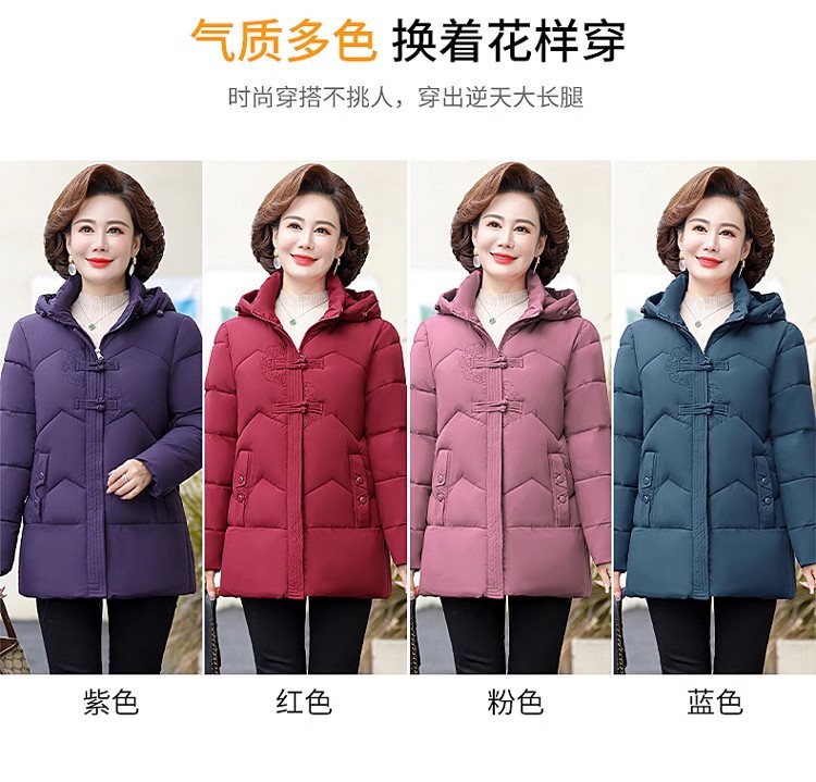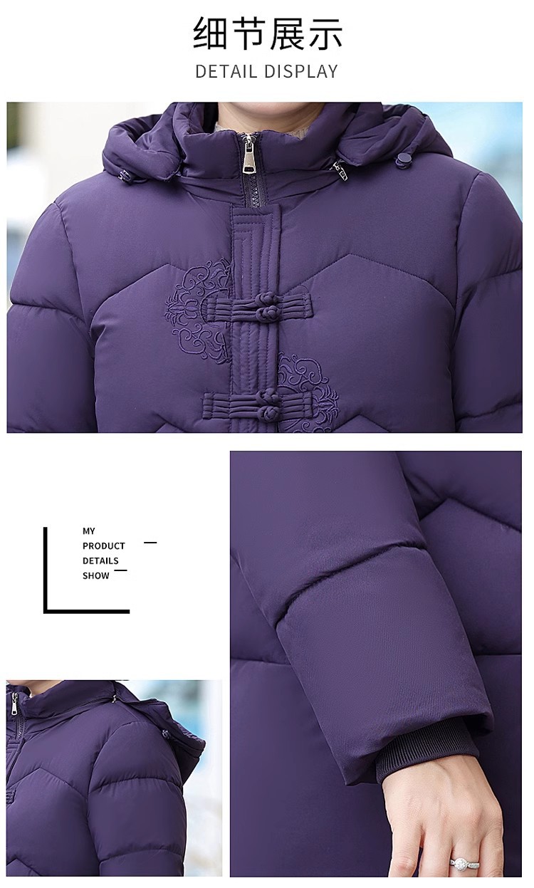 中老年人中长款羽绒棉衣女2024年婆婆妈妈款大码加厚保暖棉服外套