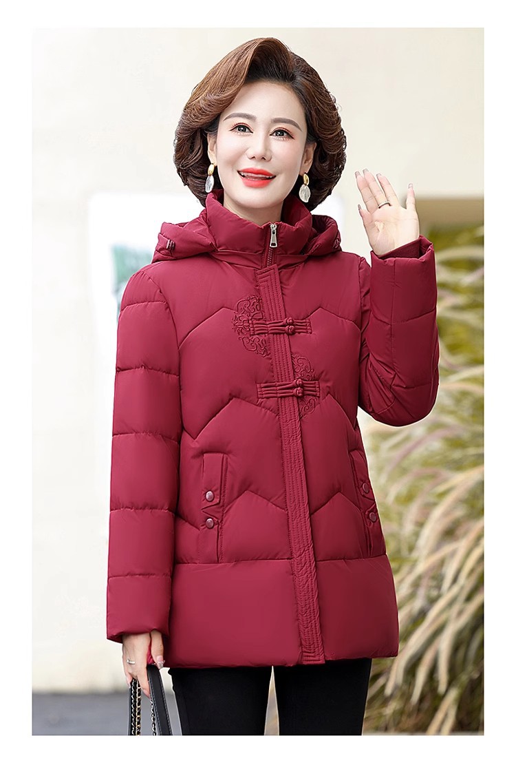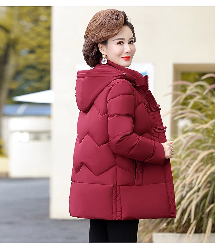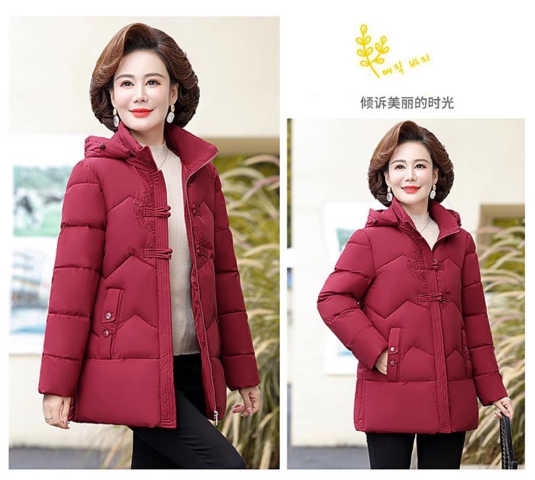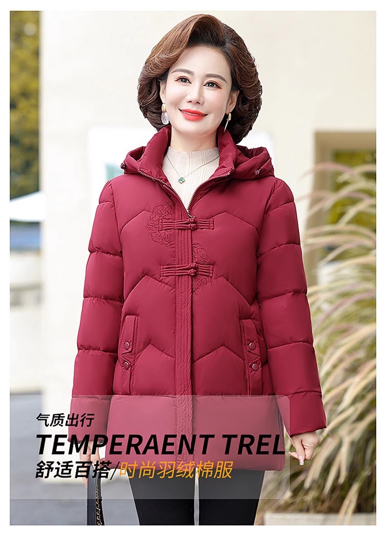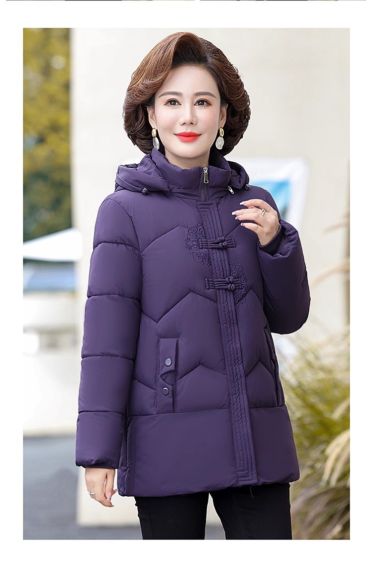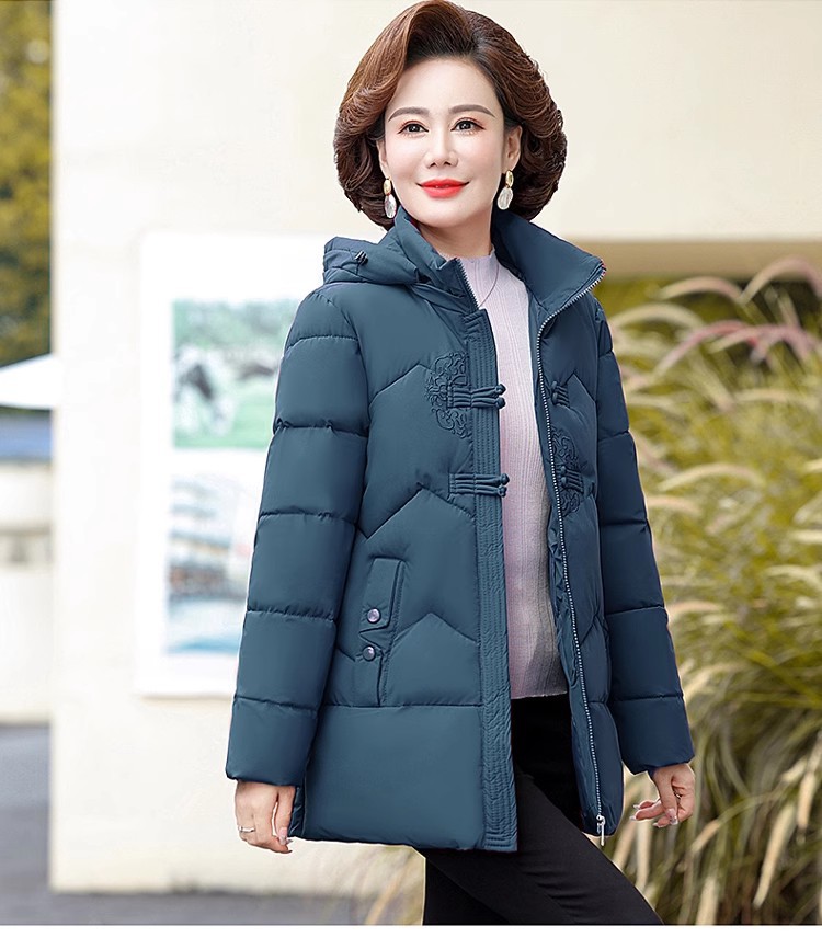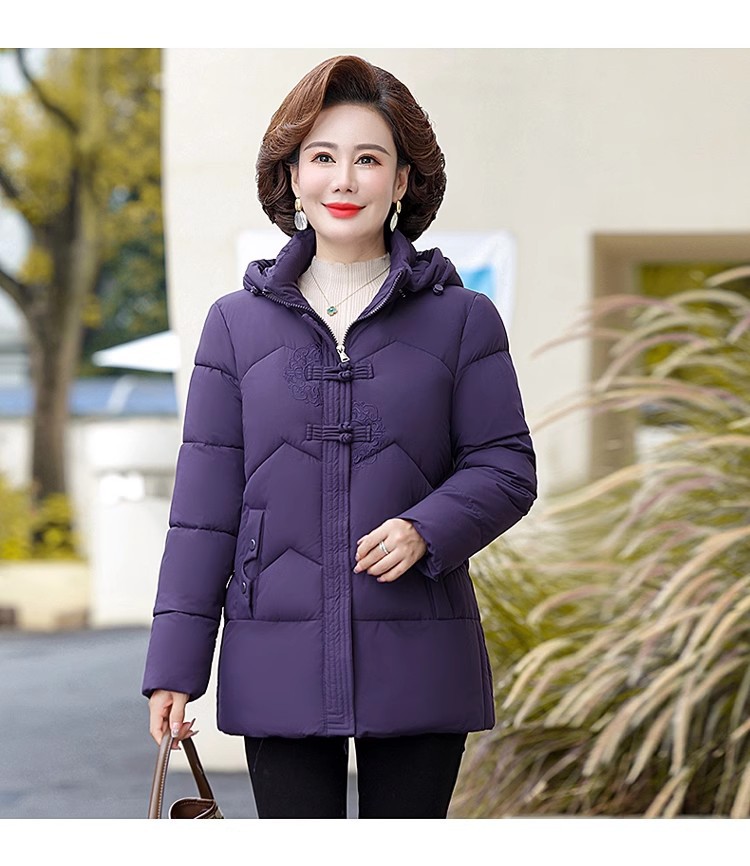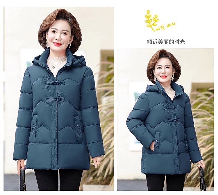 中老年人中长款羽绒棉衣女2024年婆婆妈妈款大码加厚保暖棉服外套