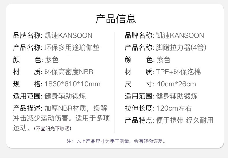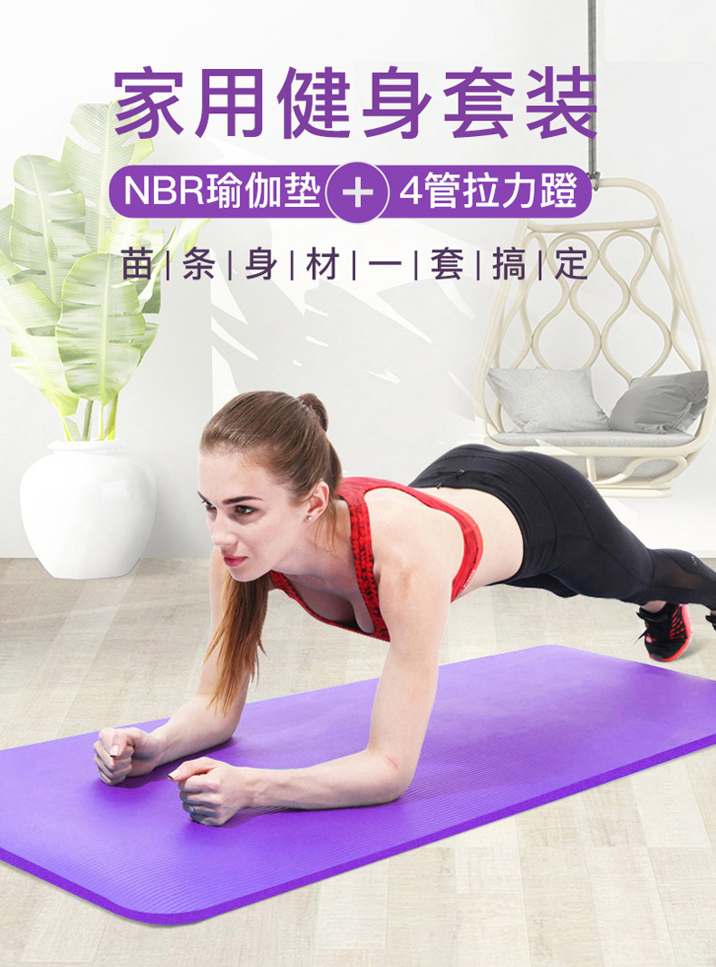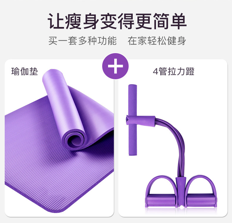 凯速加厚防滑环保瑜伽垫拉力器健身套装EA030+KA54 紫色【XPTX】
