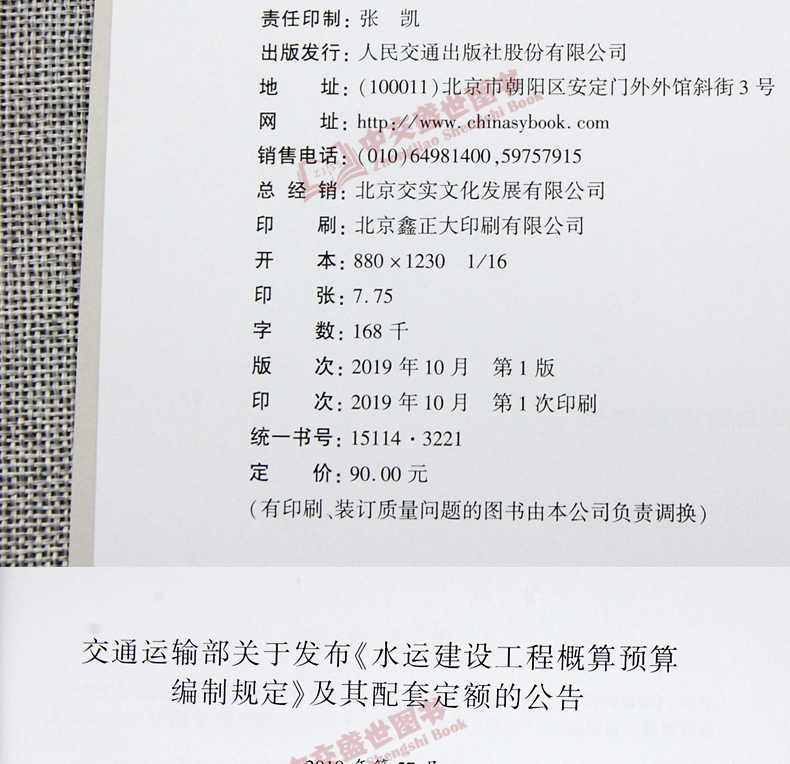 书名:水运建设工程概算预算编制规定 JTS/T 116-2019
