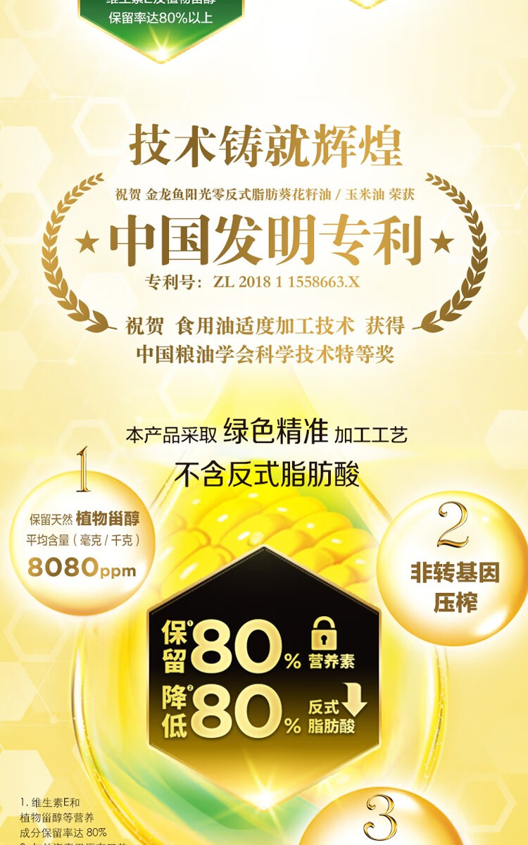 金龙鱼阳光零反式脂肪甾醇玉米油5L