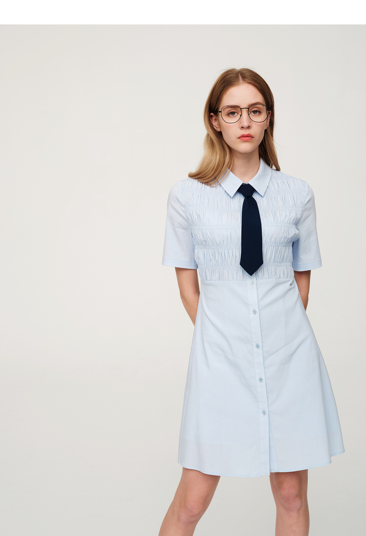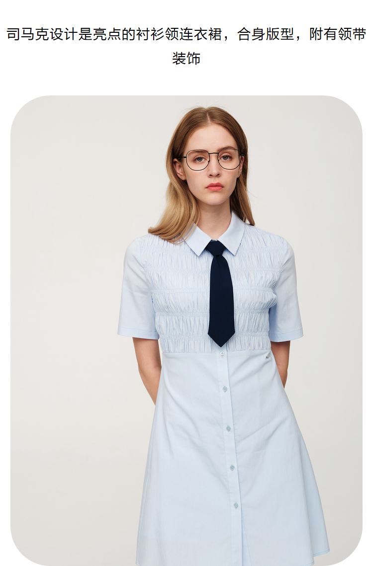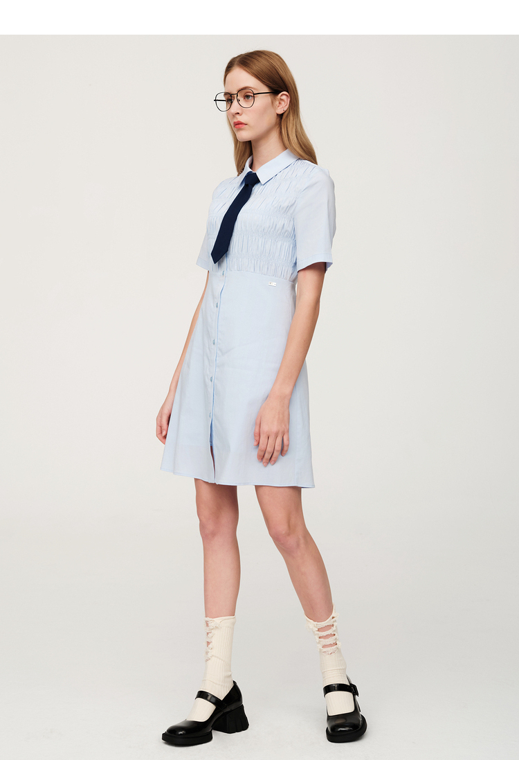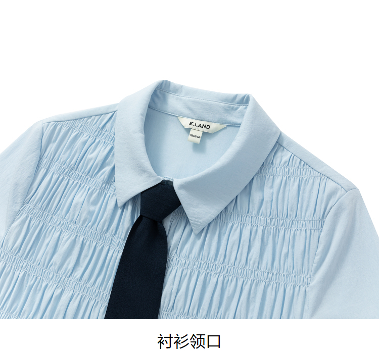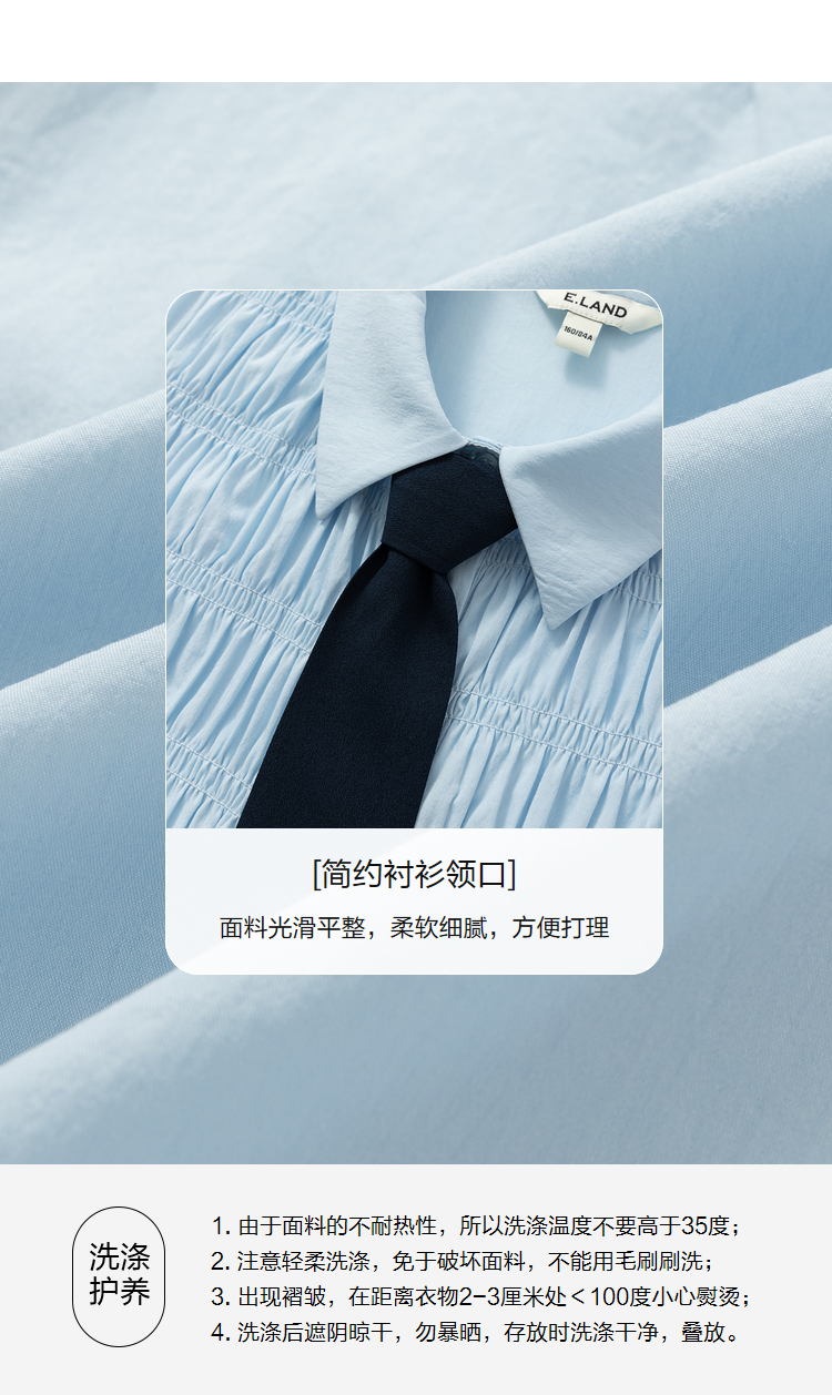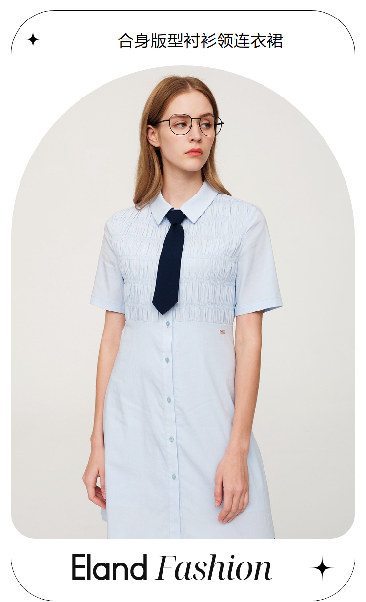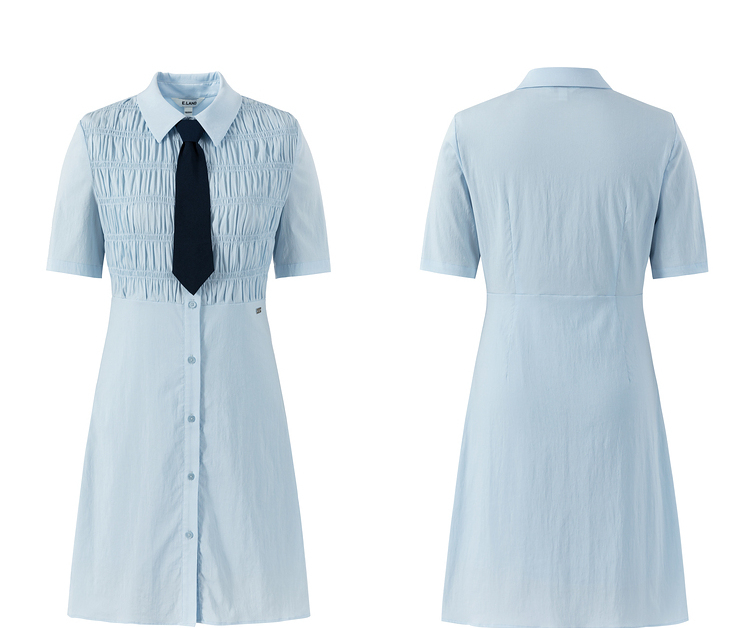 ELAND依恋2022年夏款衬衫领褶皱设计连衣裙EEOWC25N8B