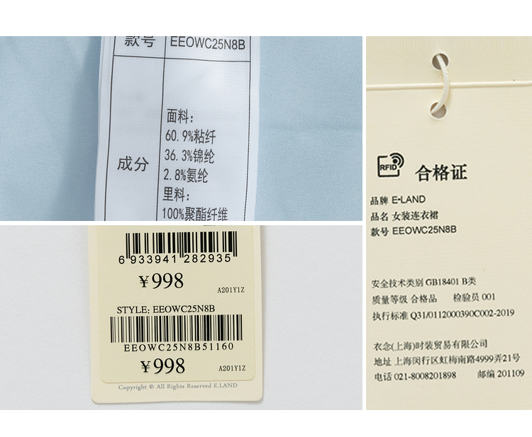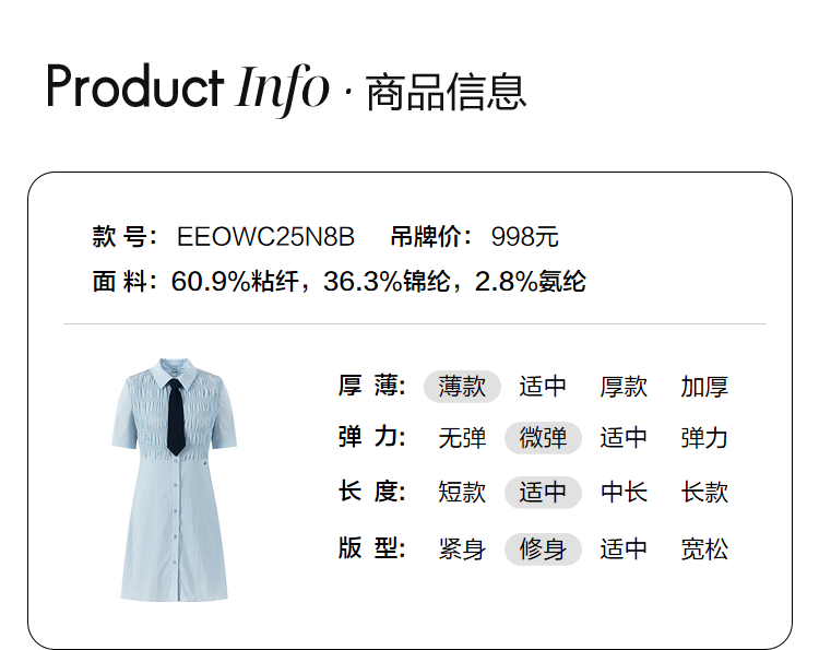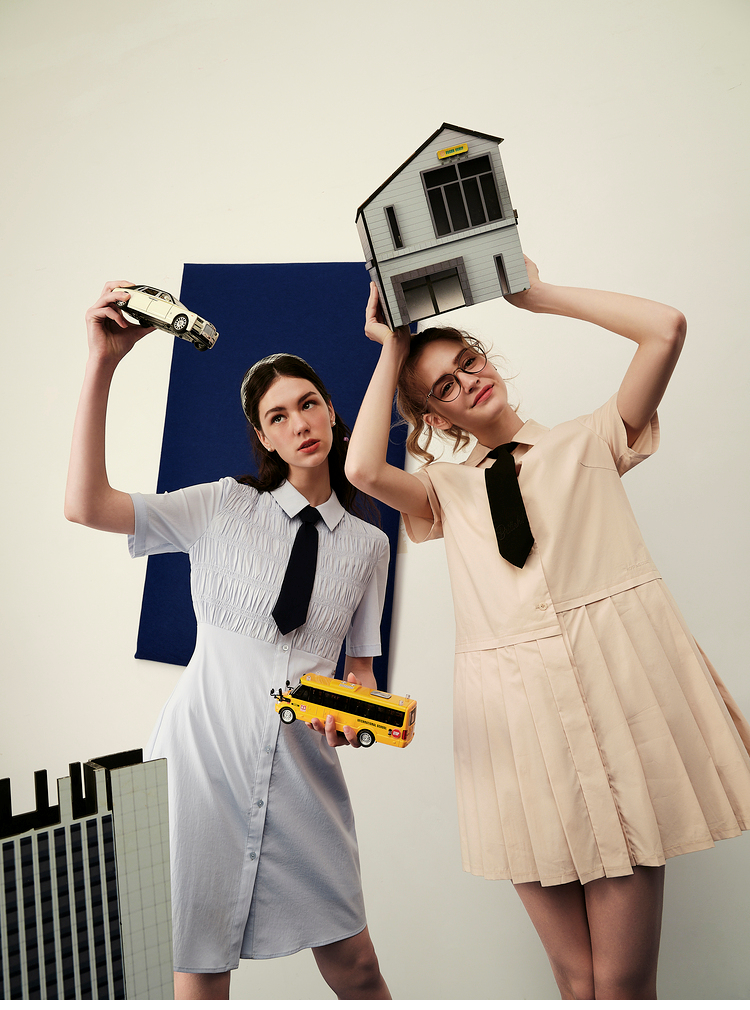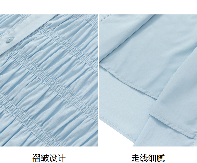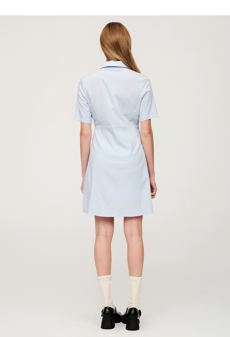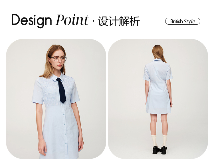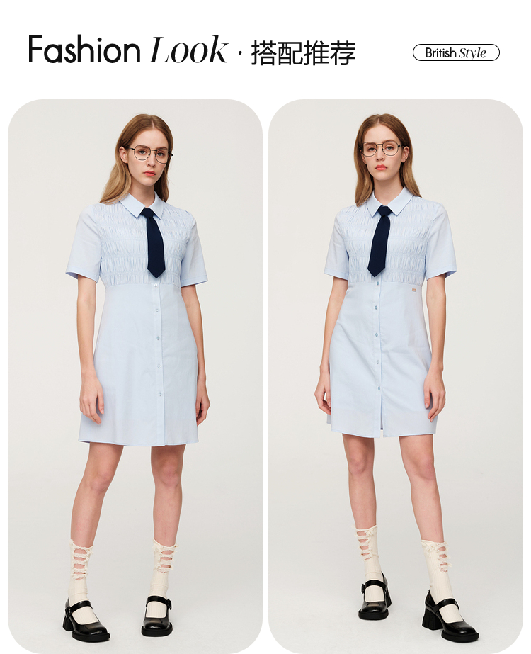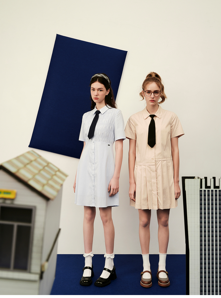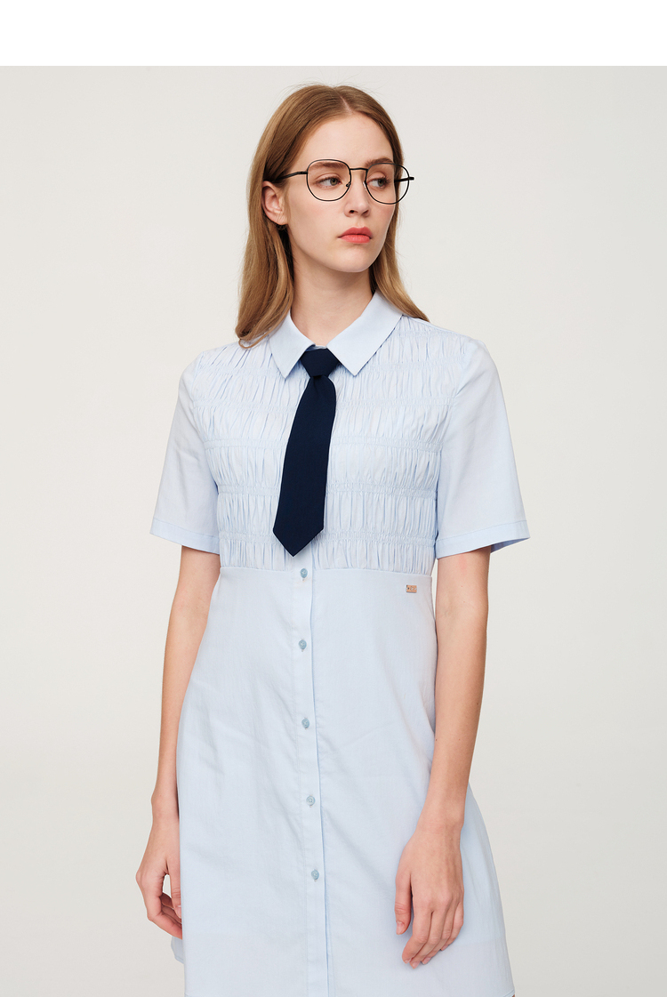 ELAND依恋2022年夏款衬衫领褶皱设计连衣裙EEOWC25N8B