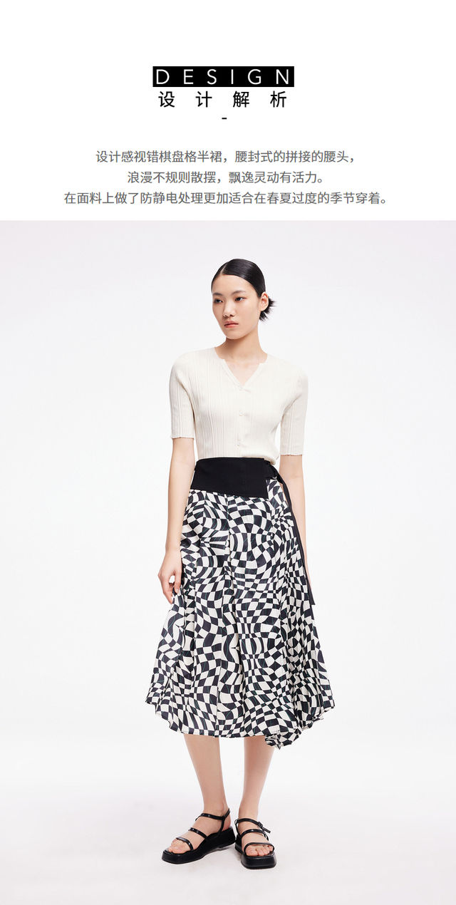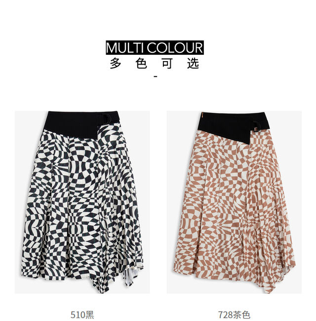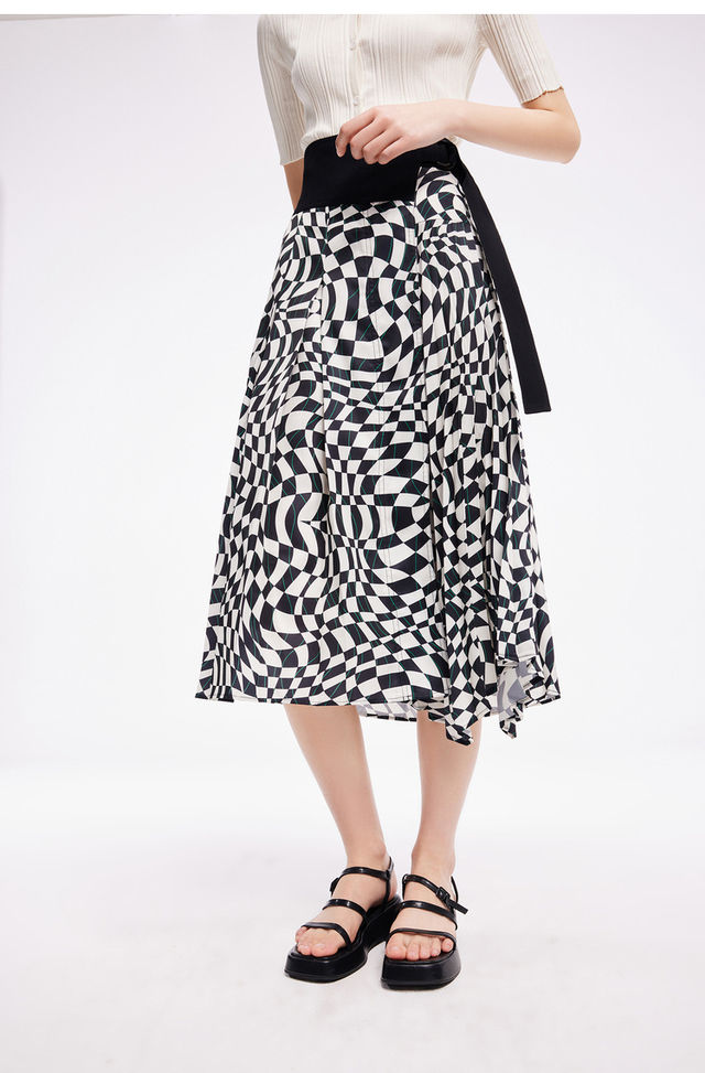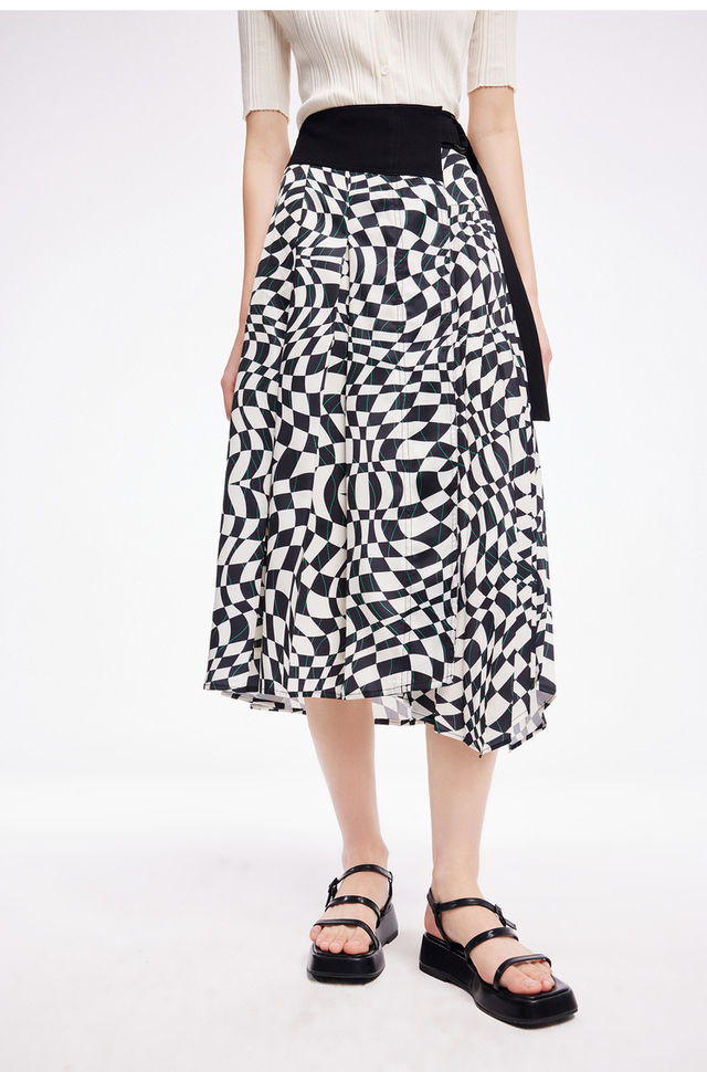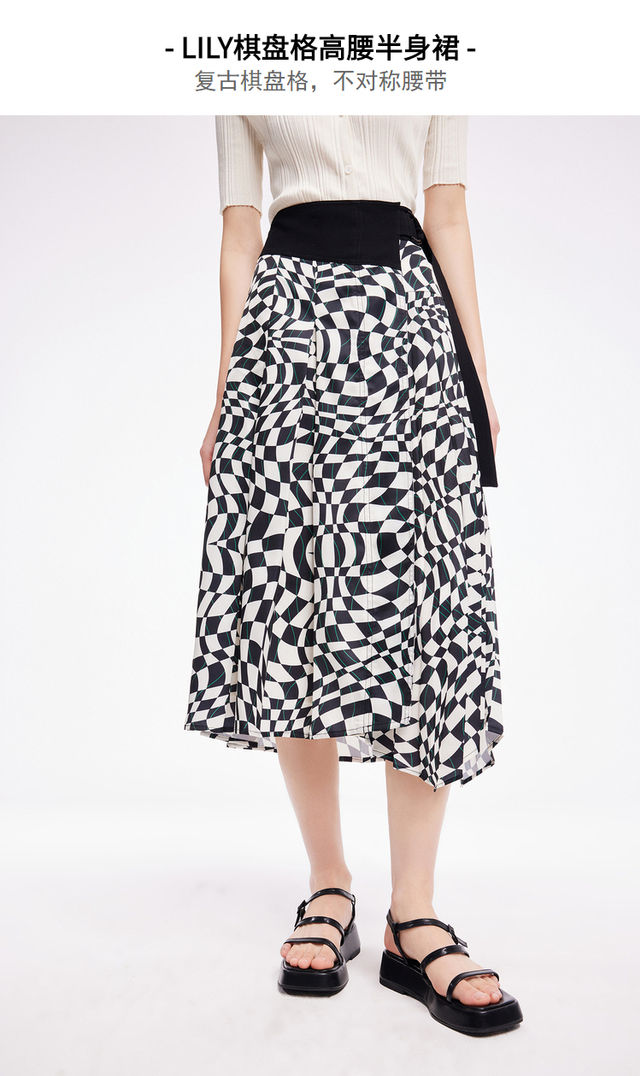 LILY2022夏季新款女装小众洋气复古款棋盘格高腰半身裙122200C6124