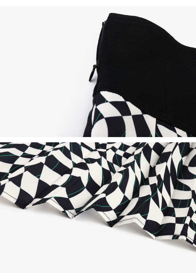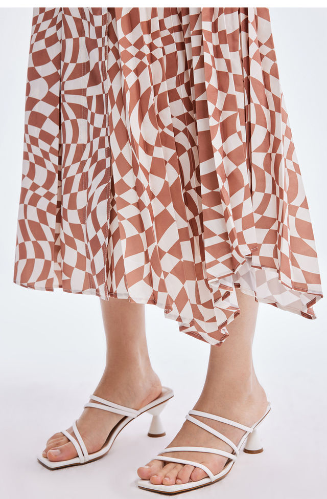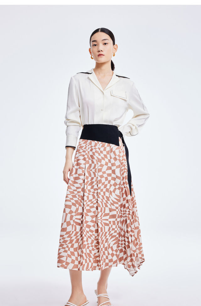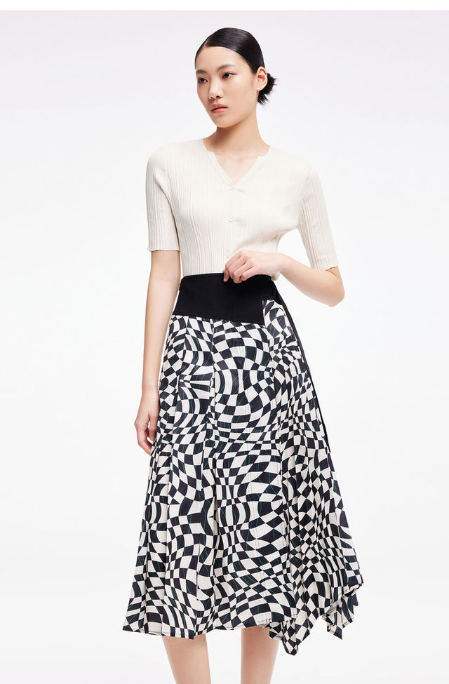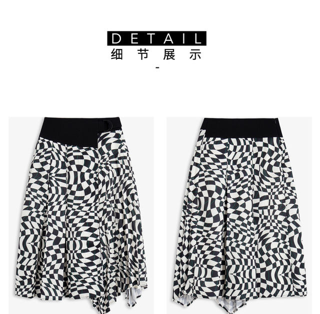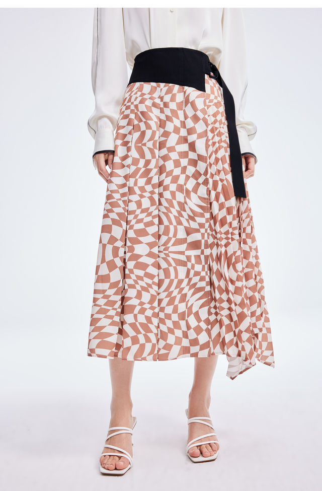 LILY2022夏季新款女装小众洋气复古款棋盘格高腰半身裙122200C6124