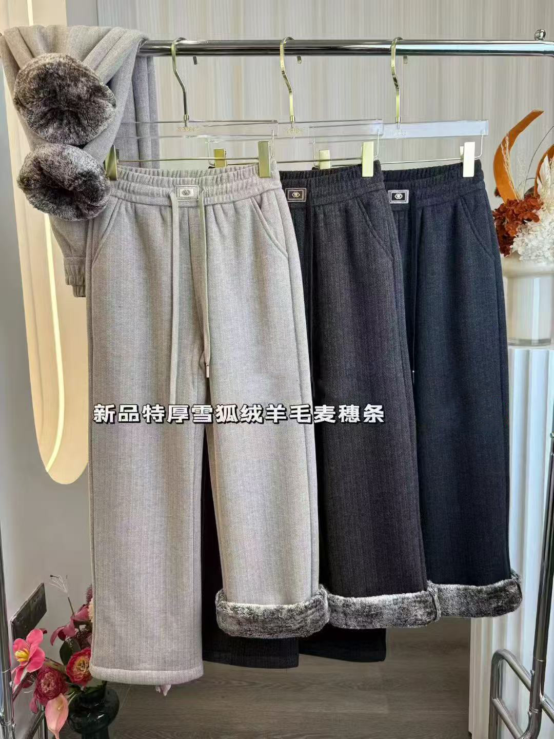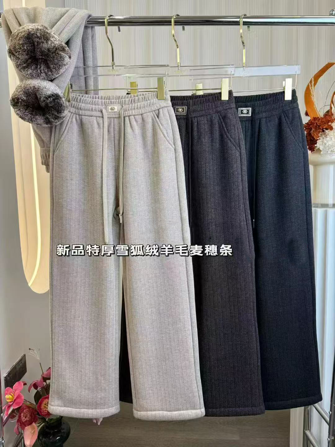 女士雪狐绒麦穗条小脚裤冬季加绒裤子【FD25332】