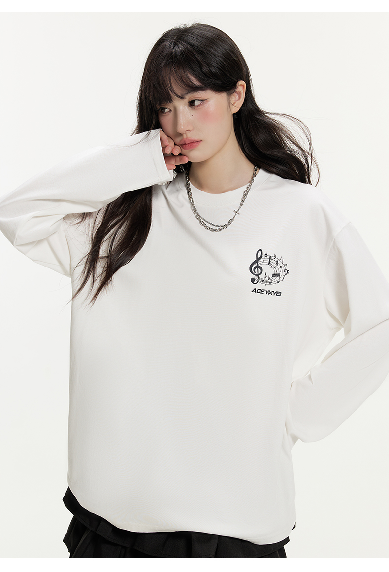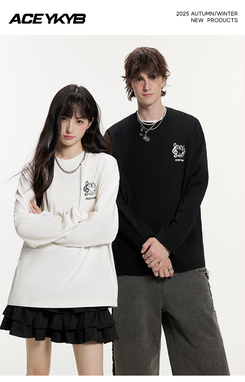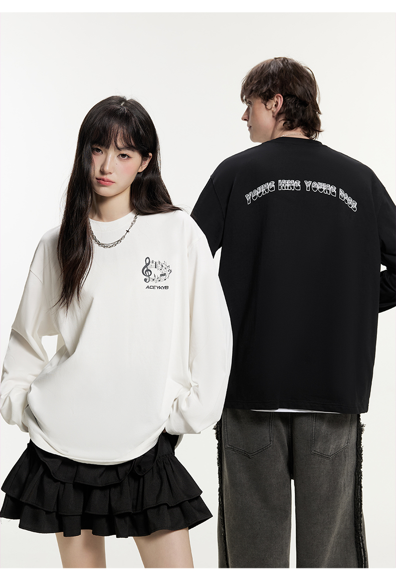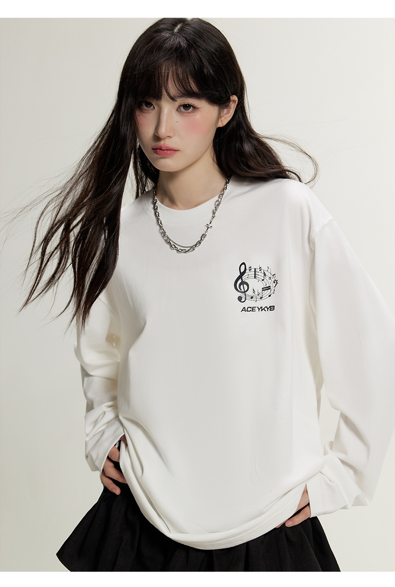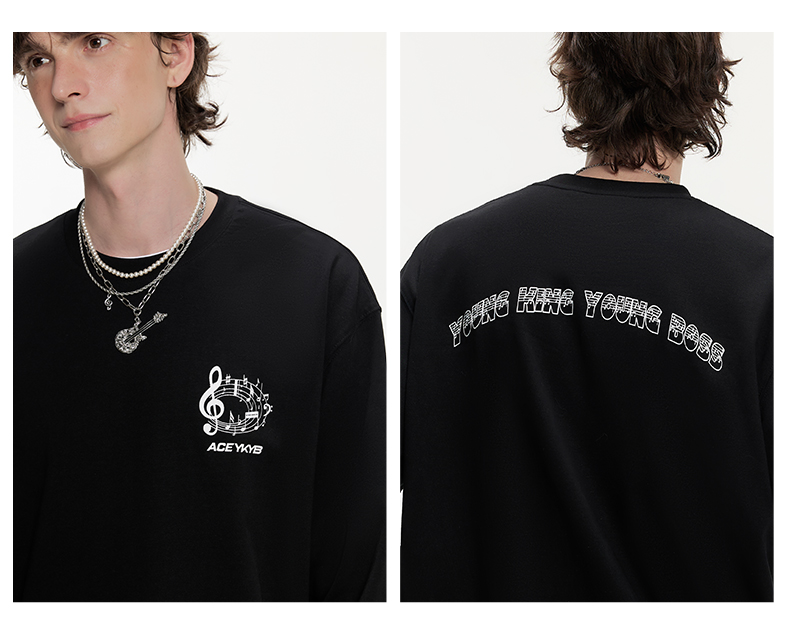 YKYB黄子韬长袖T恤简约百搭宽松圆领印花上衣Y53NCT001
