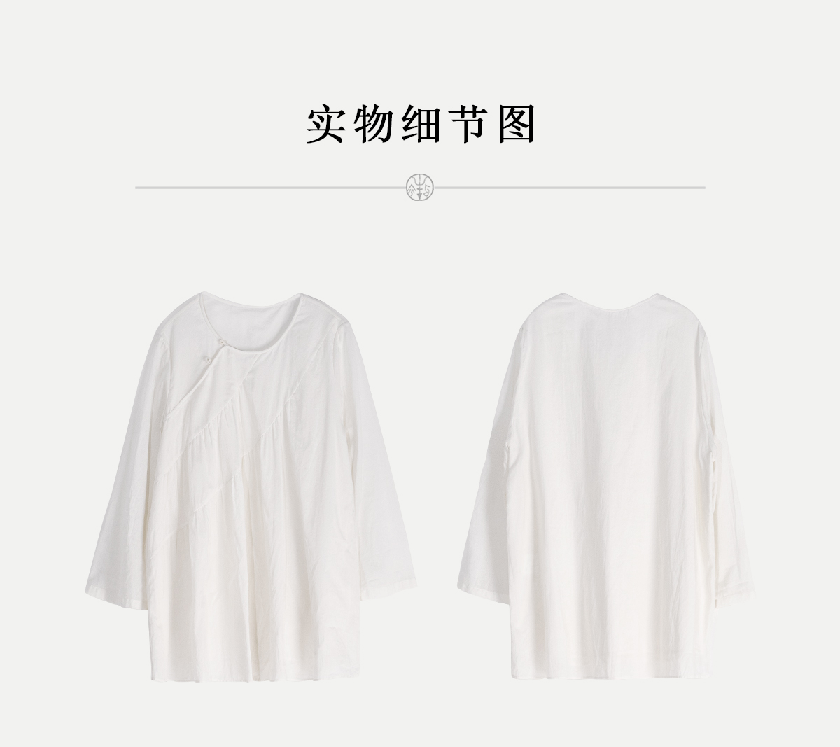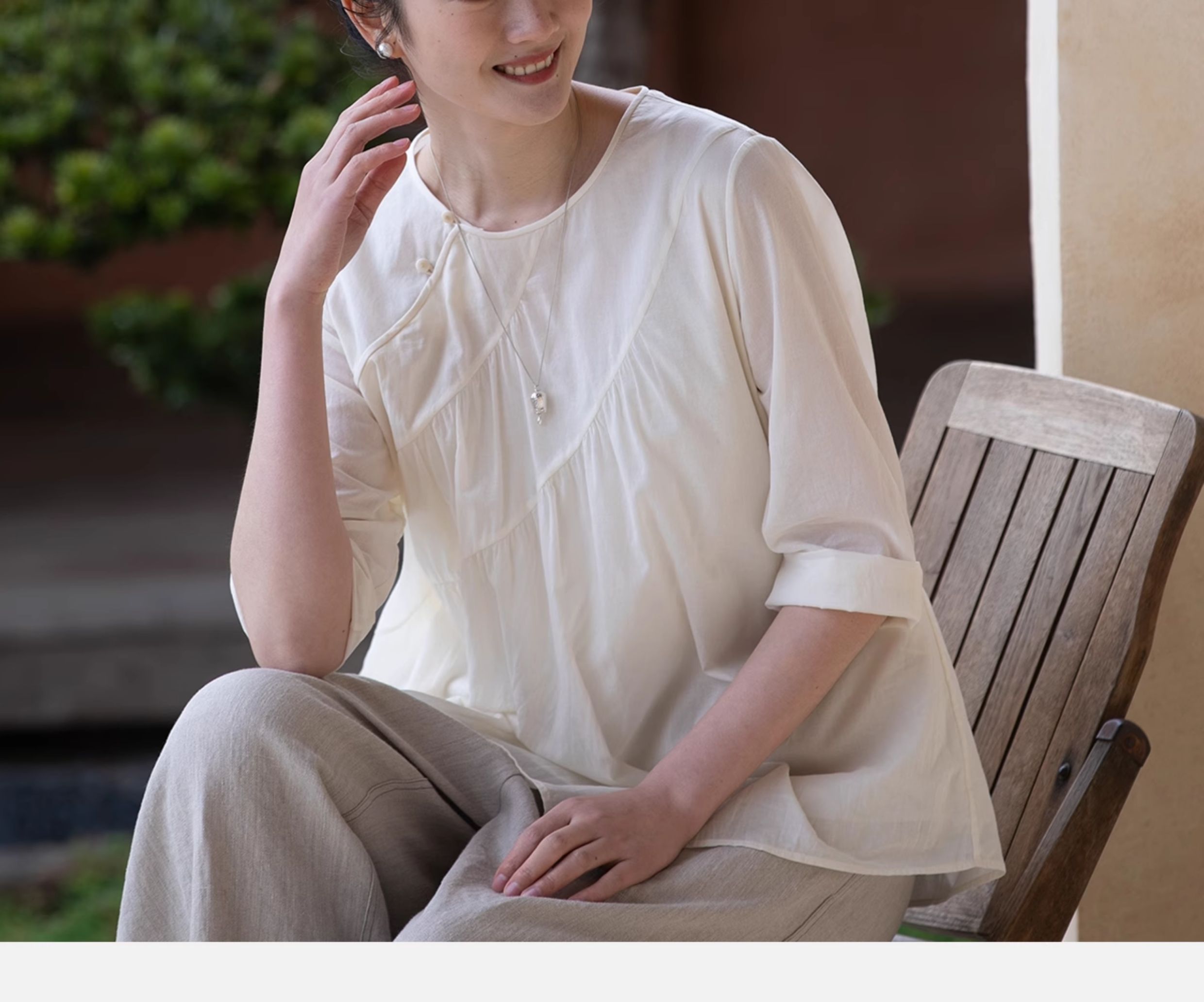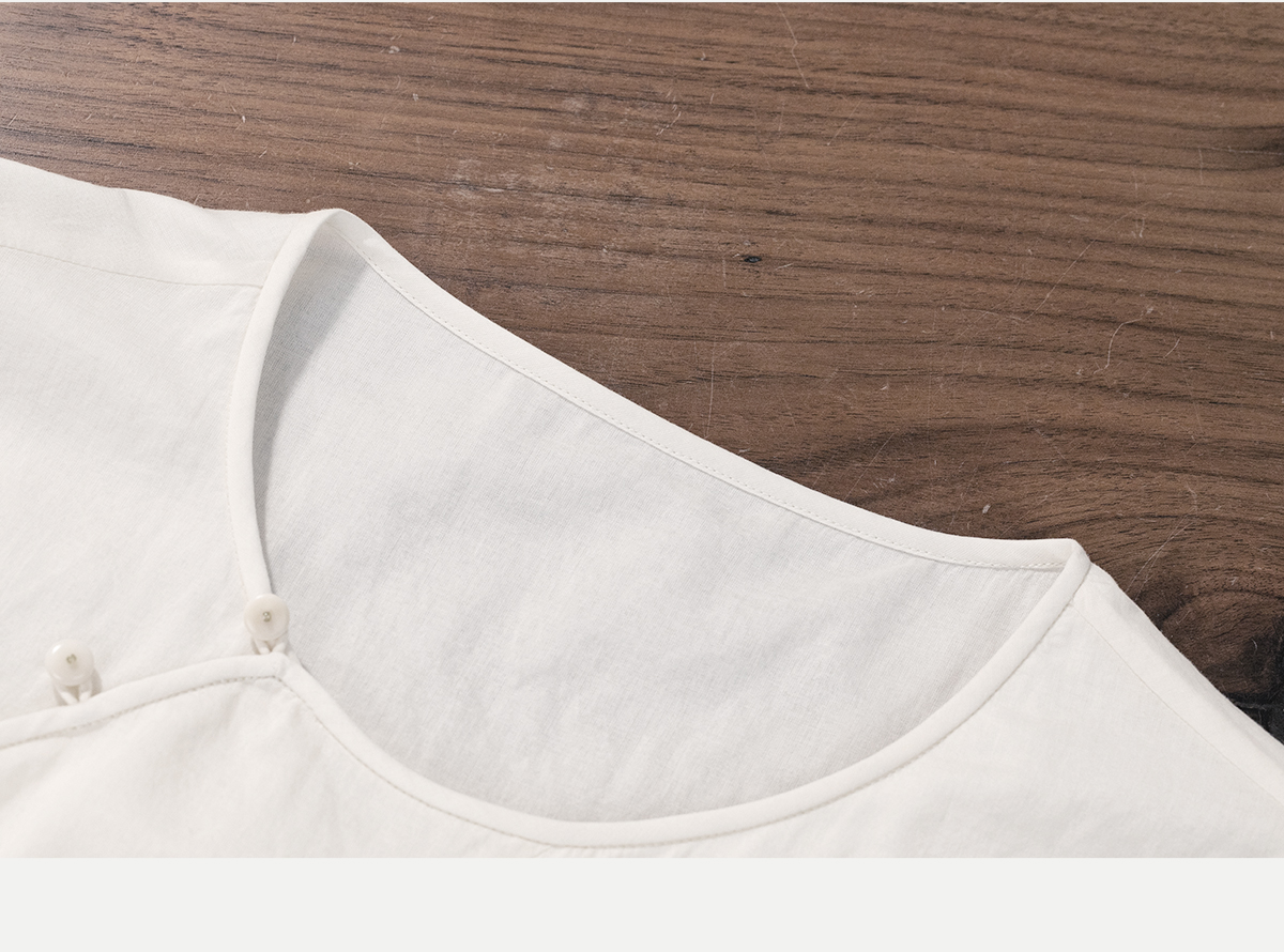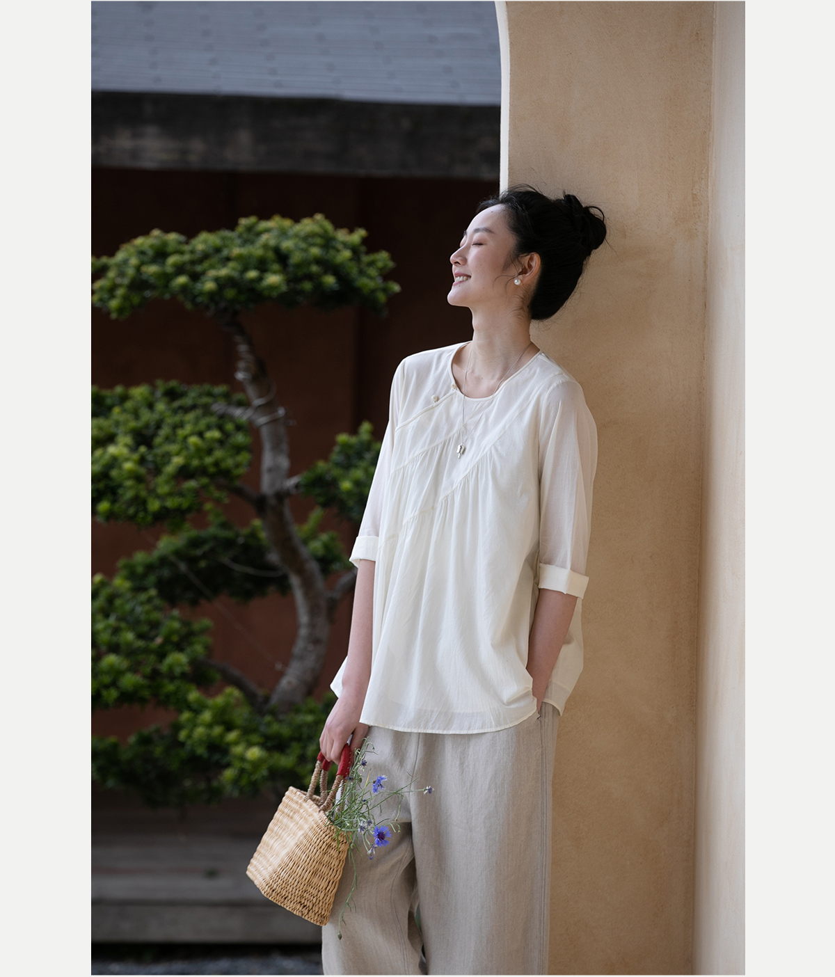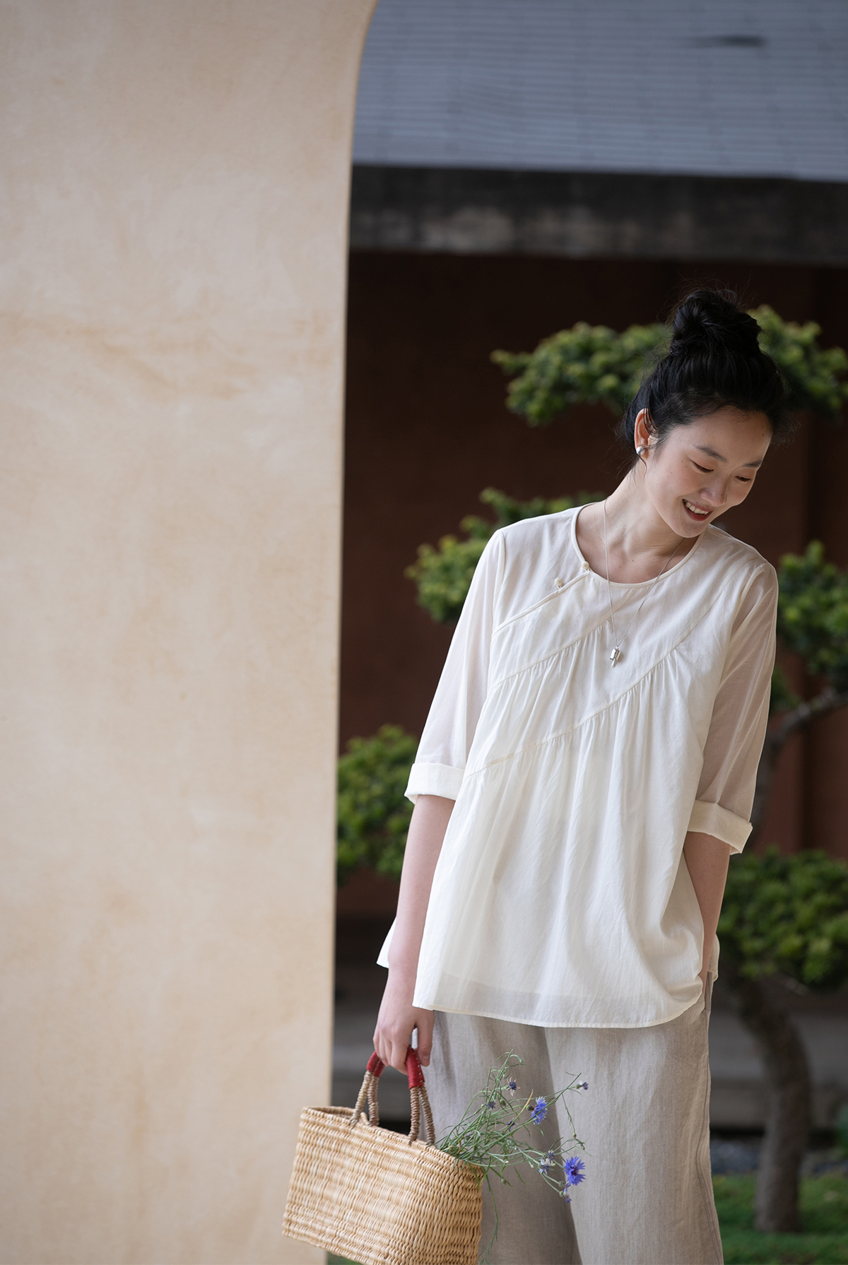 牧衣游原创 80支全棉套头衫新品轻薄通透斜襟白色百搭上衣 江南桂