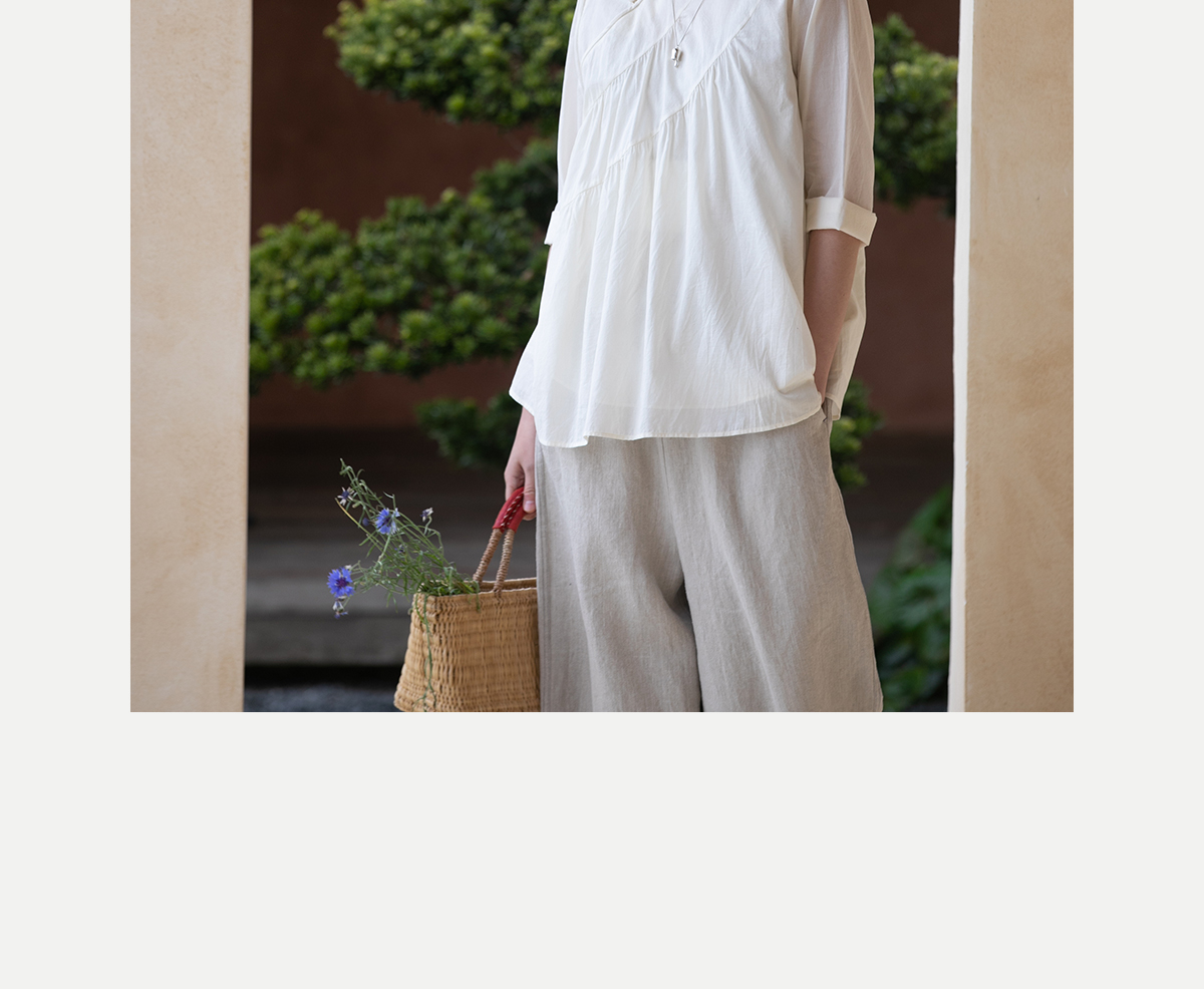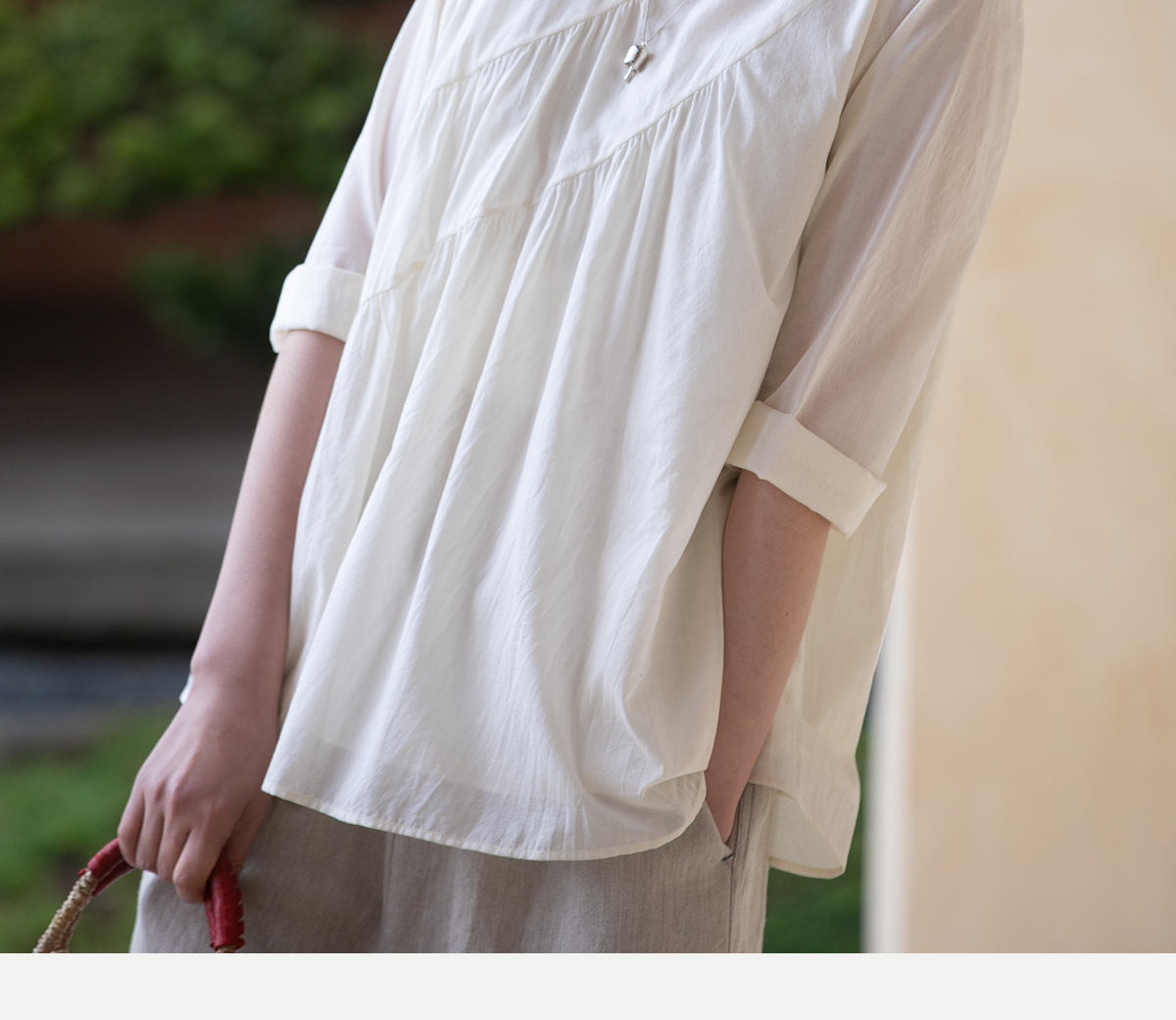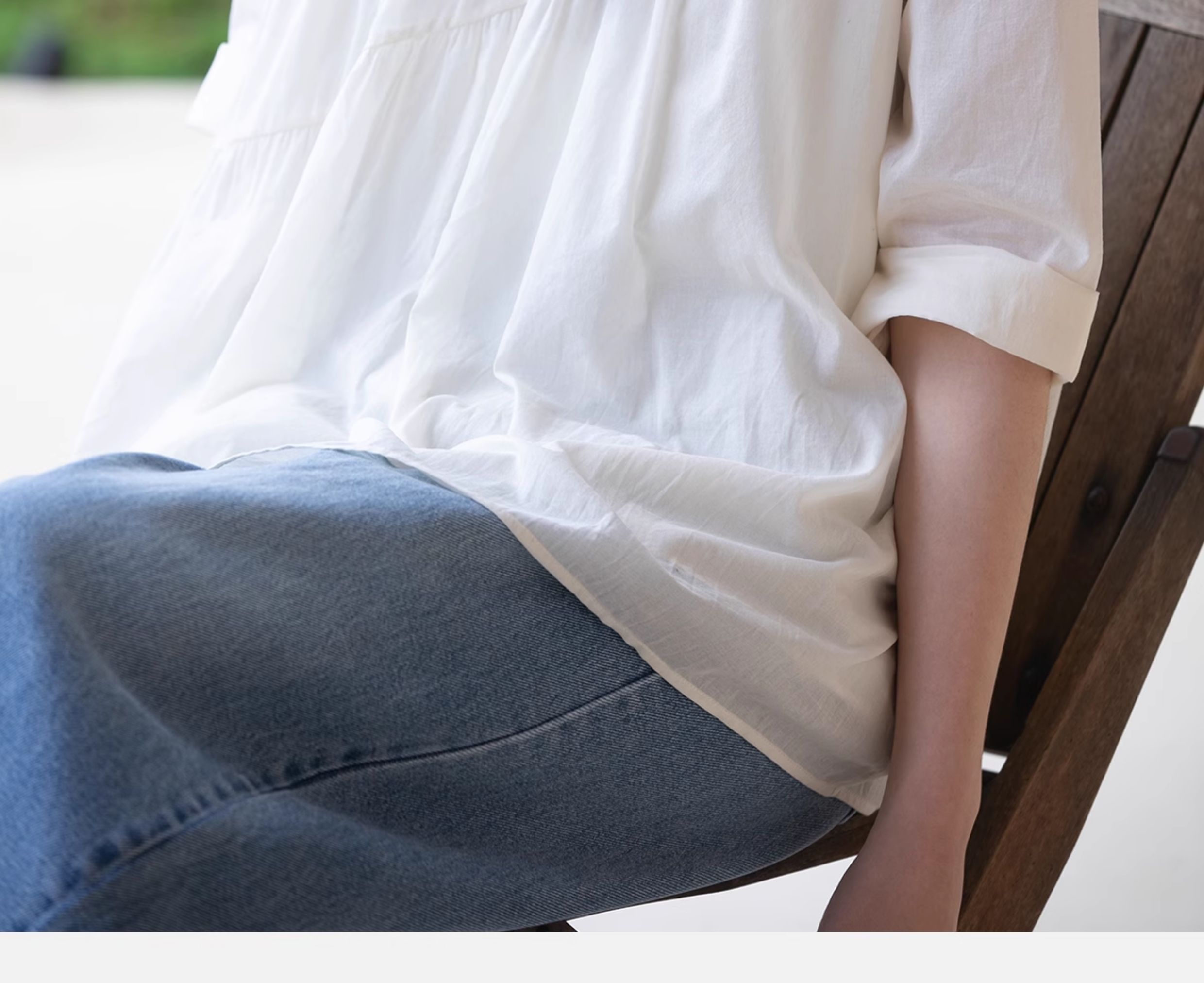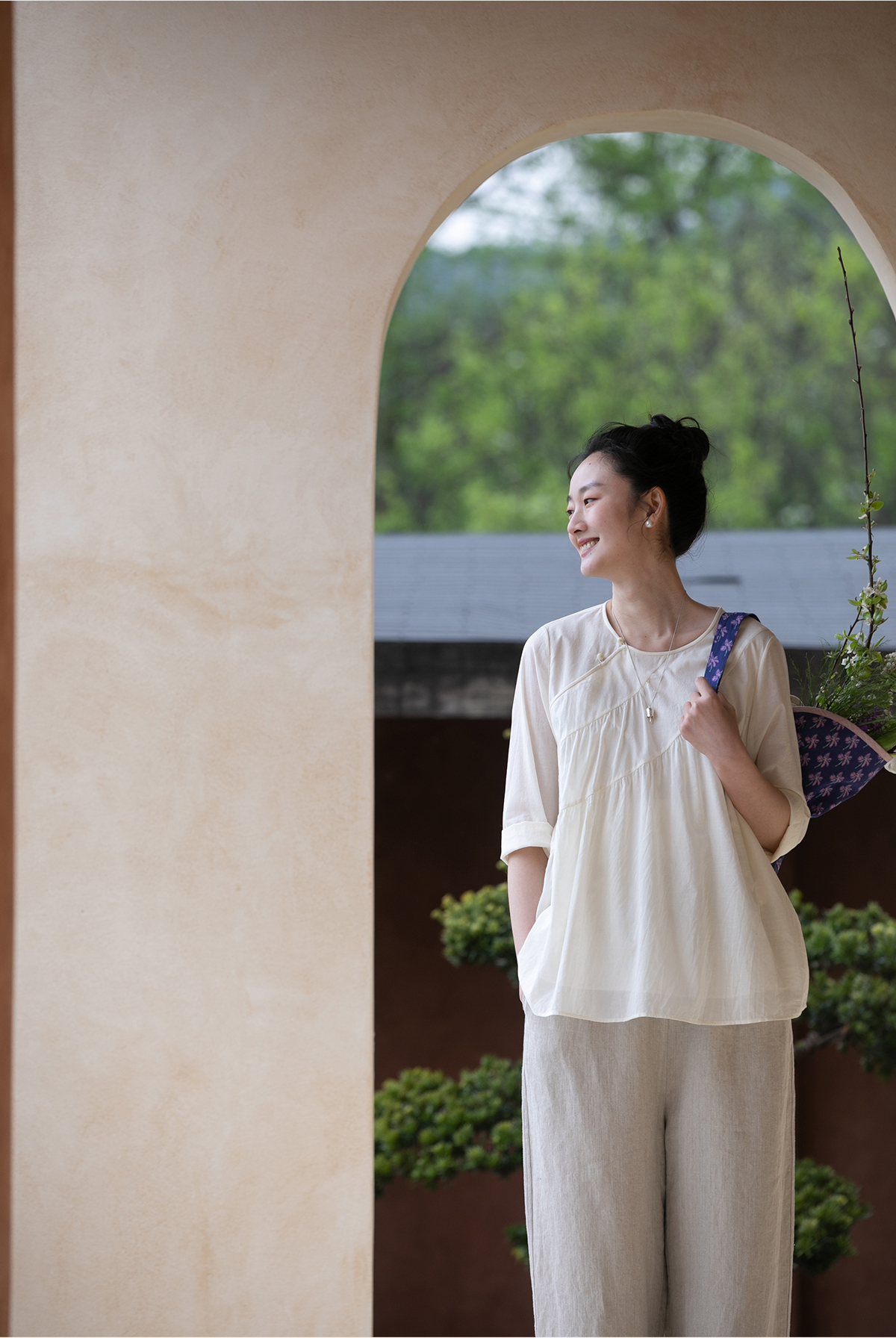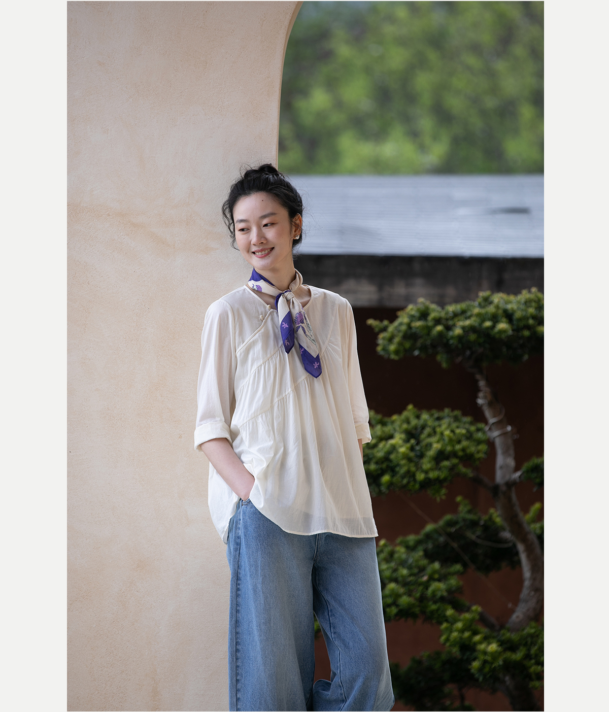 牧衣游原创 80支全棉套头衫新品轻薄通透斜襟白色百搭上衣 江南桂