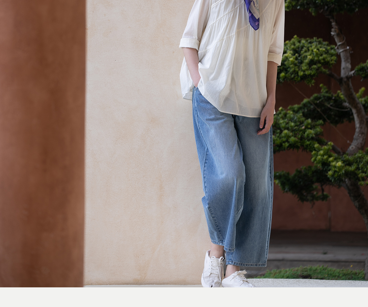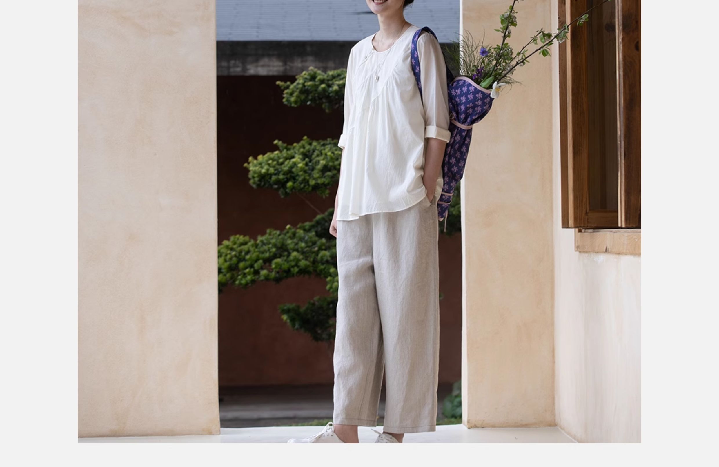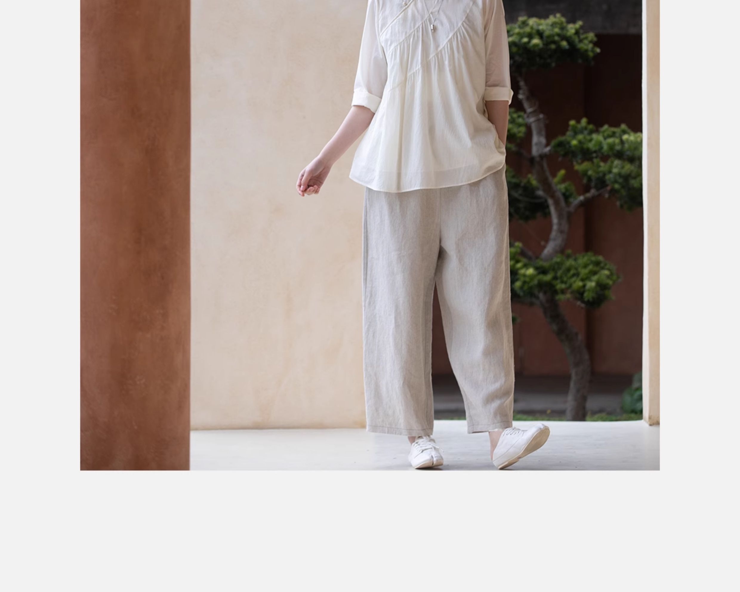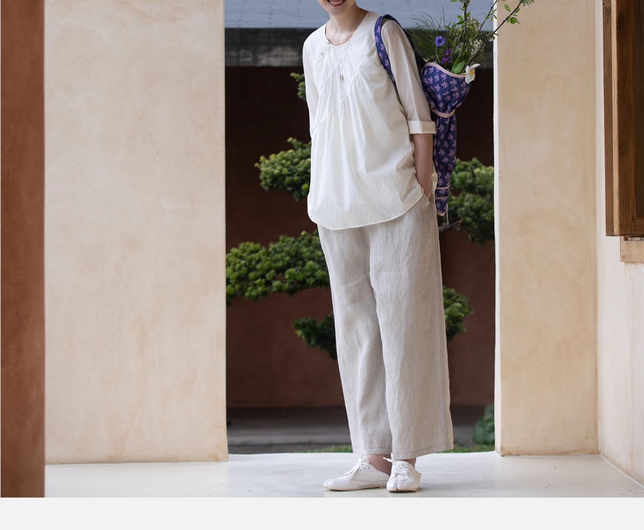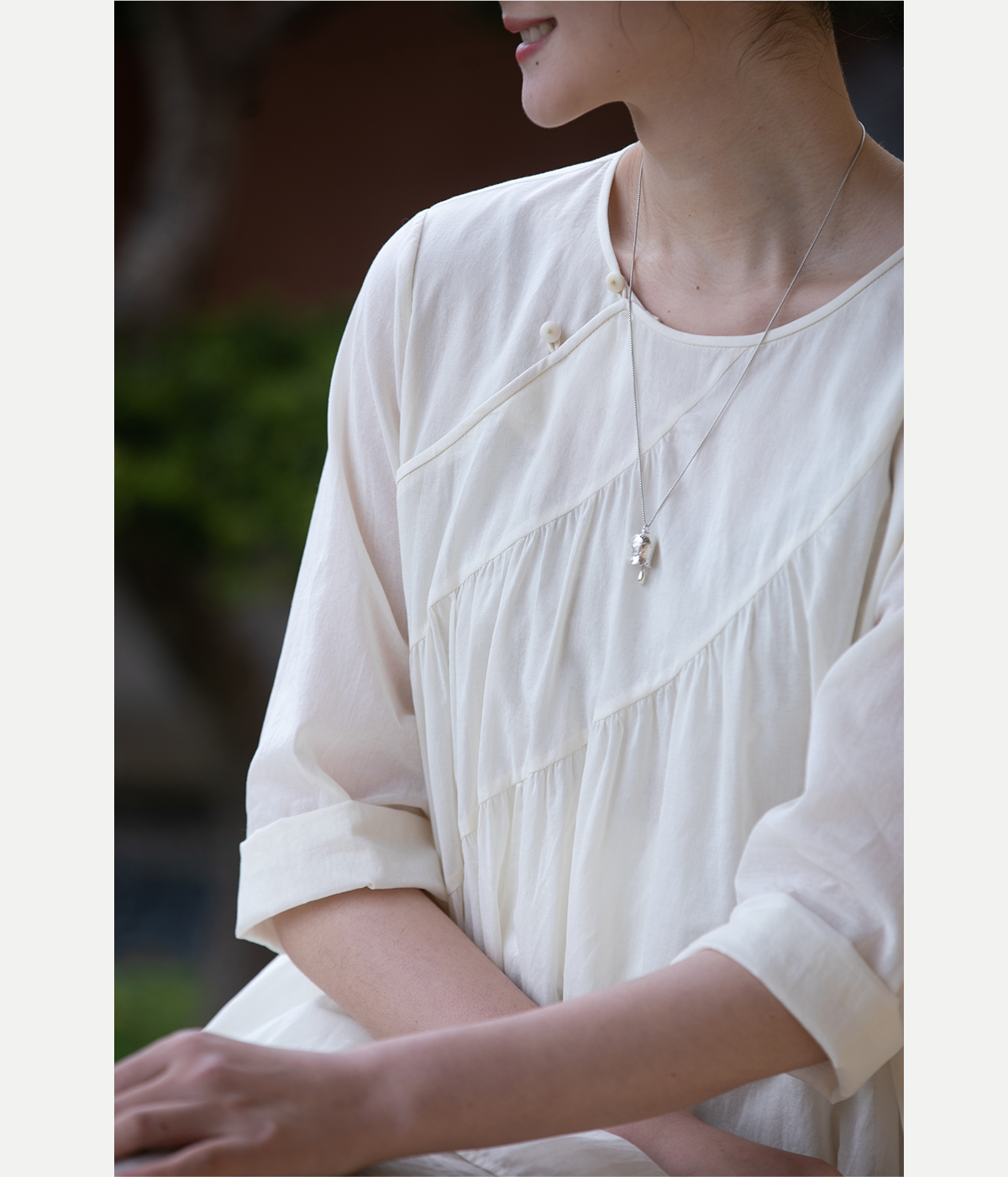 牧衣游原创 80支全棉套头衫新品轻薄通透斜襟白色百搭上衣 江南桂
