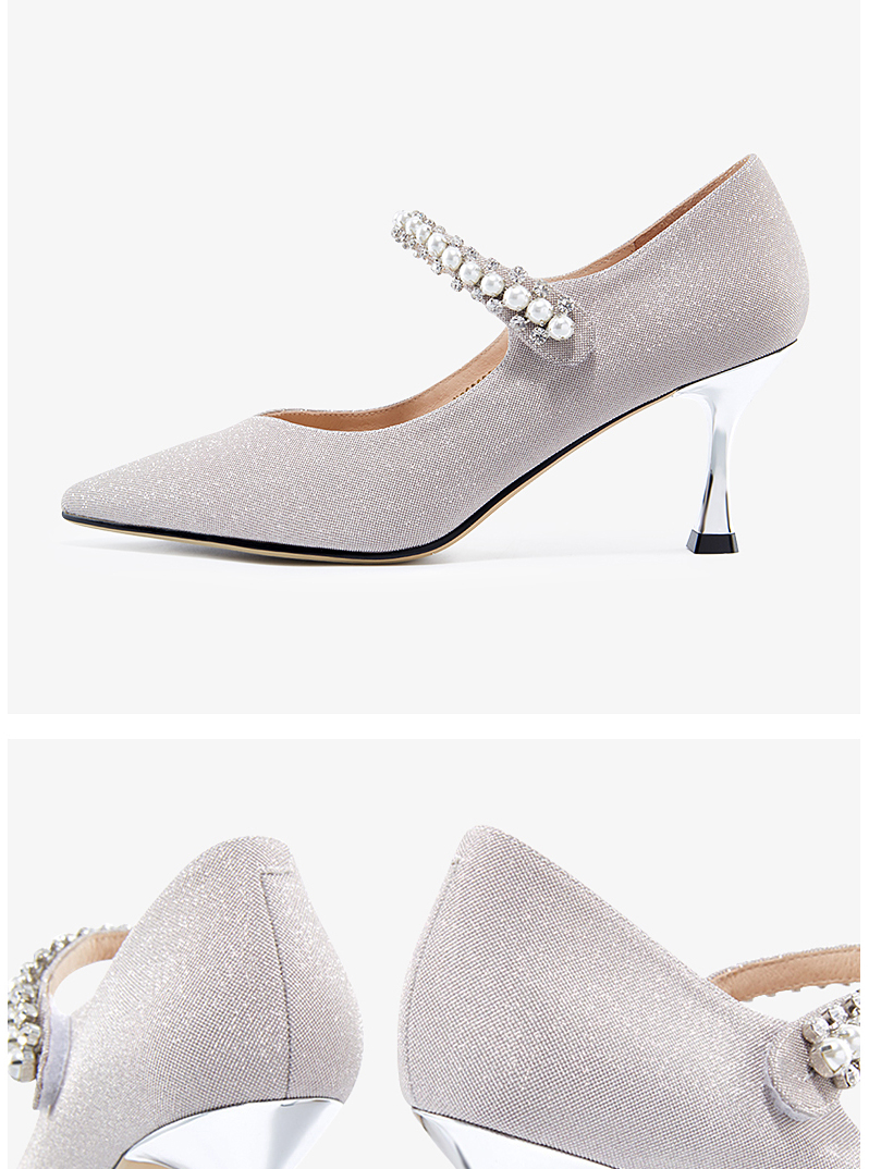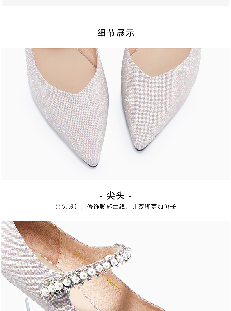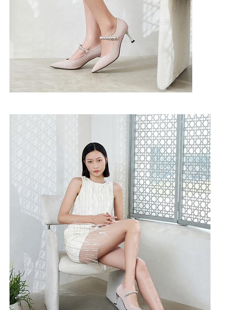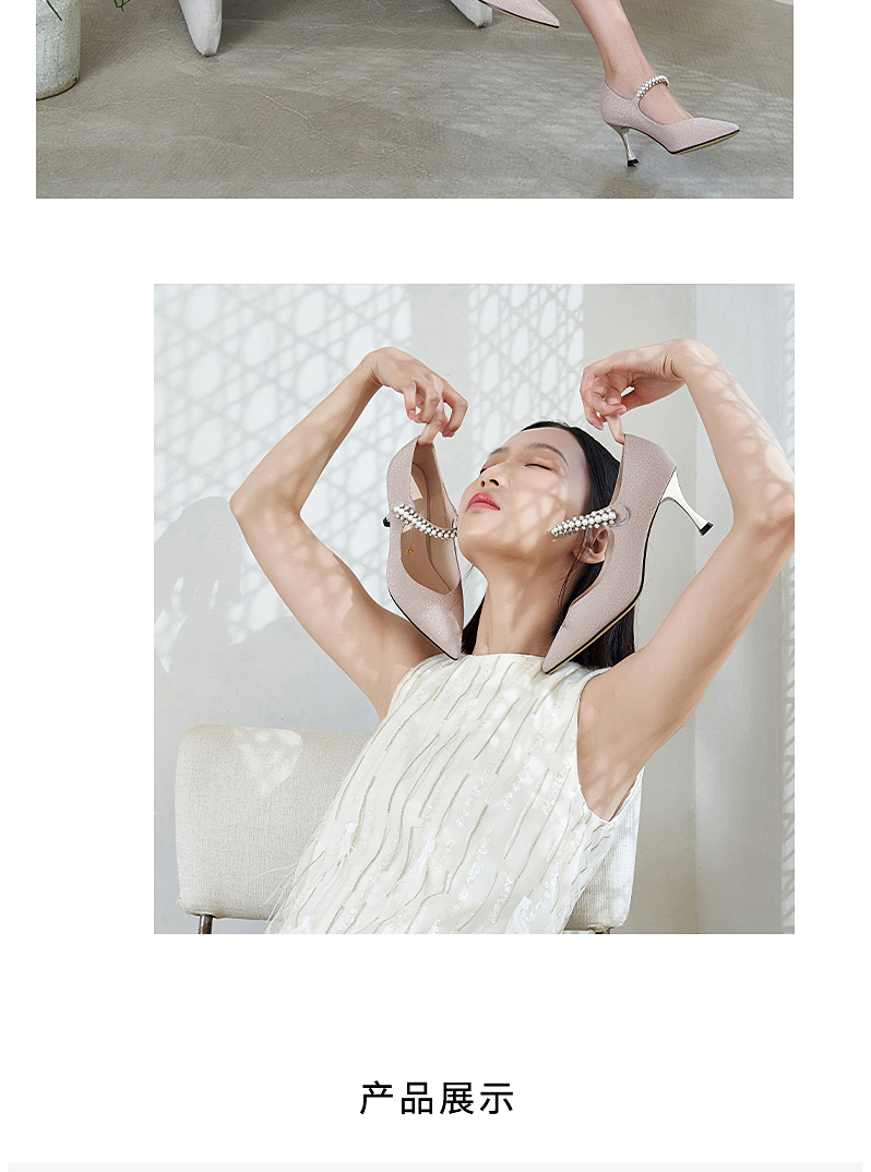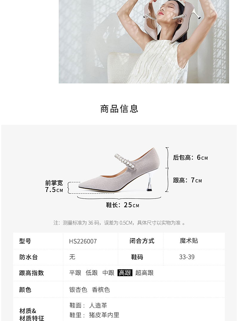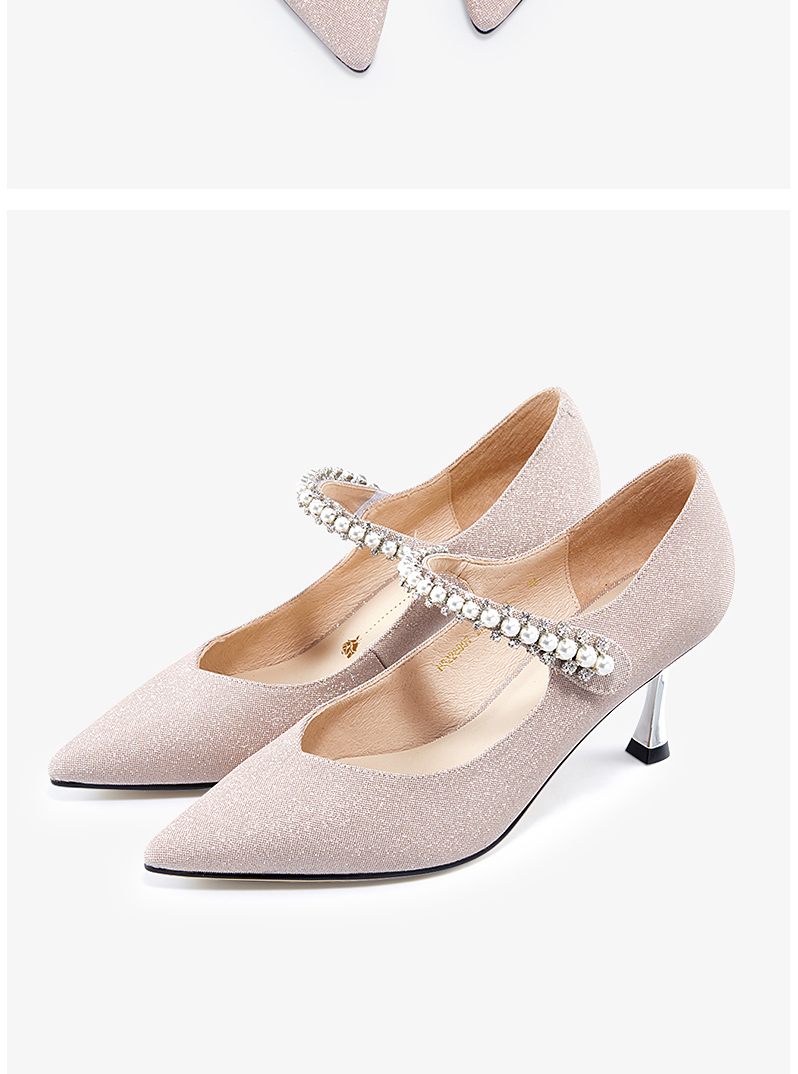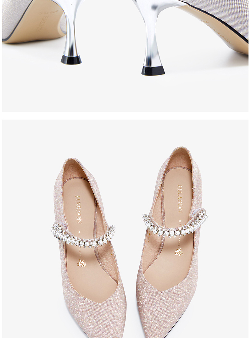 哈森女鞋2022春季新款欧美异形跟尖头时装鞋宴会珍珠浅口单鞋HS226007
