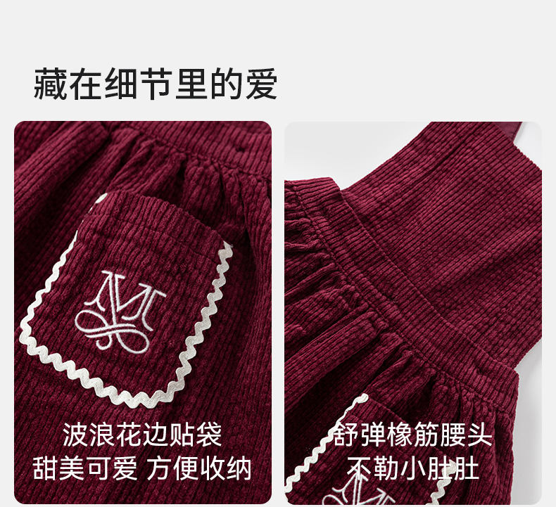 【宝宝服饰】嫚熙童装儿童连衣裙秋季灯芯绒可拆卸公主裙