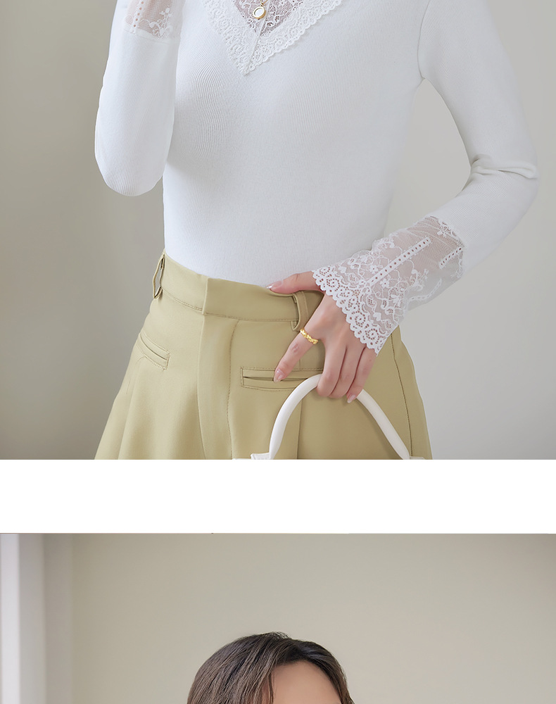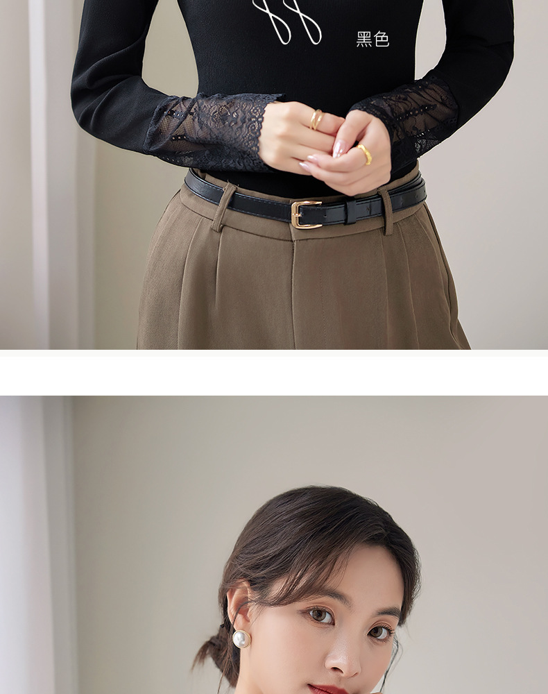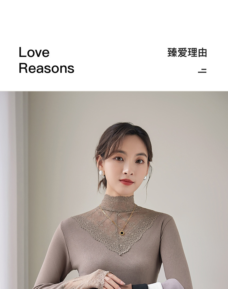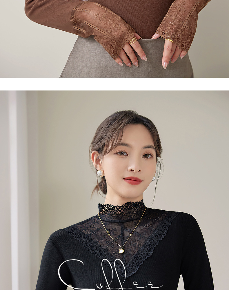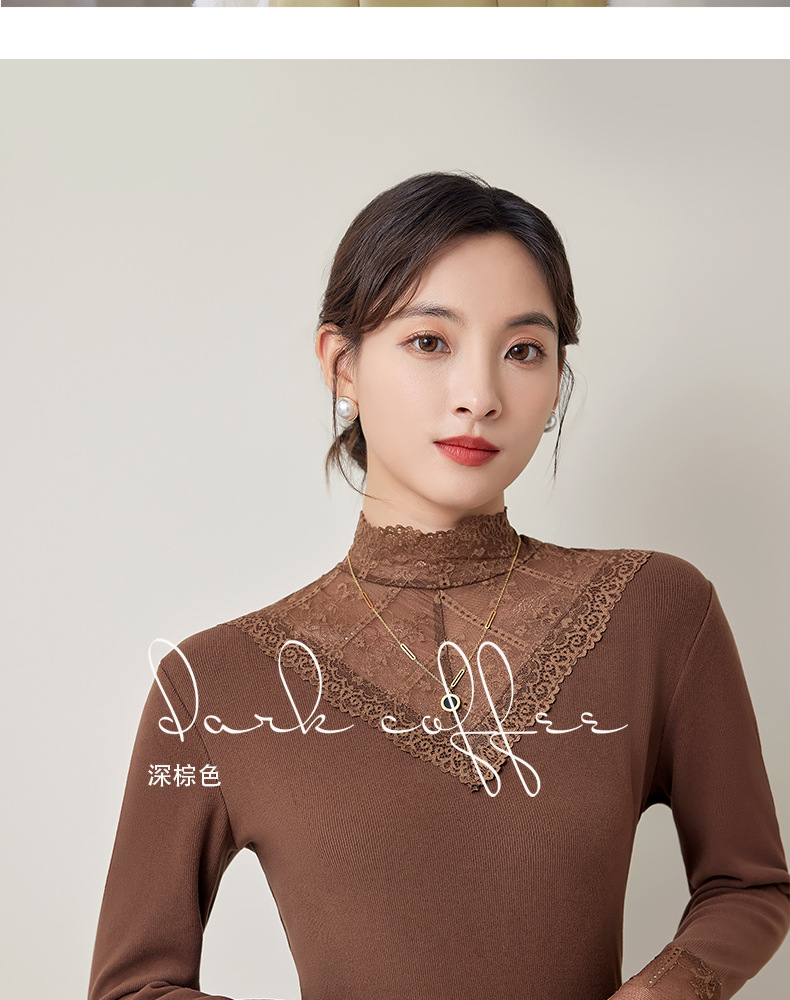 2024新款加绒加厚网纱蕾丝打底衫女春秋内搭修身洋气长袖上衣简约