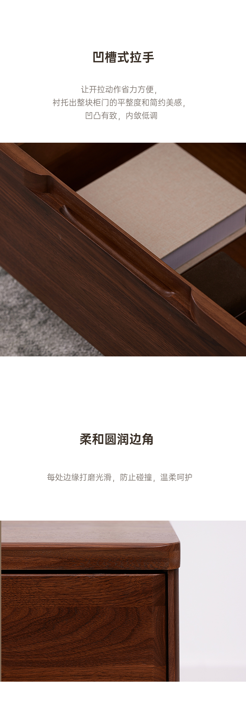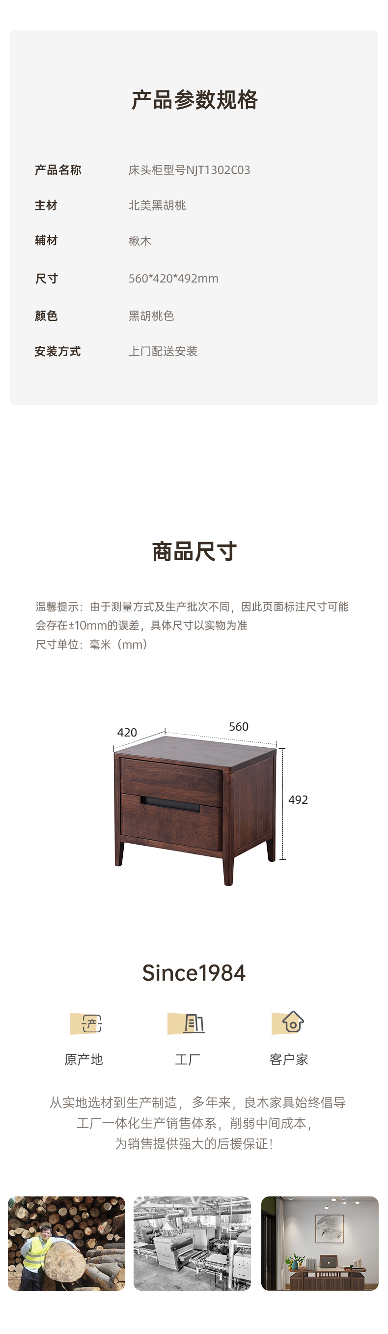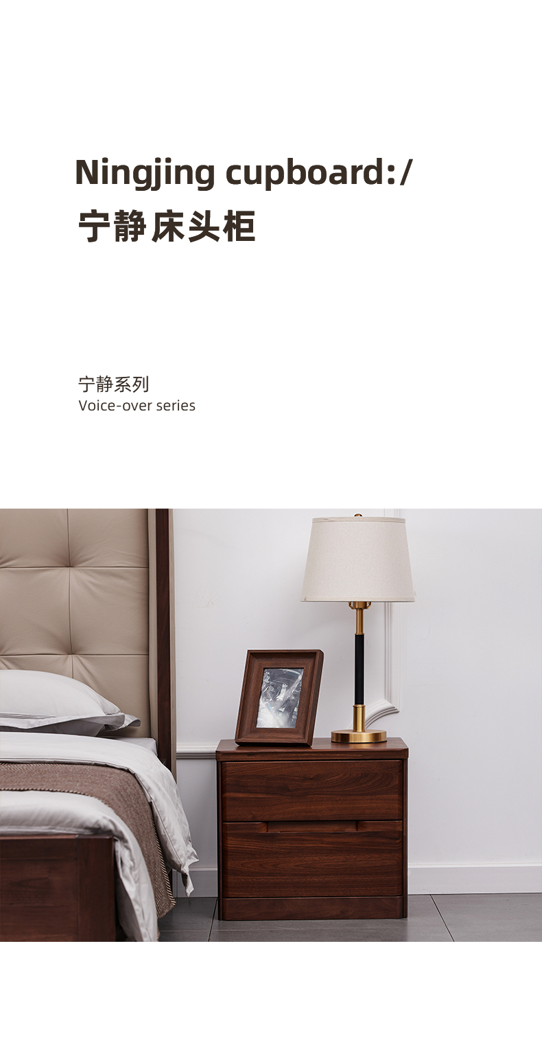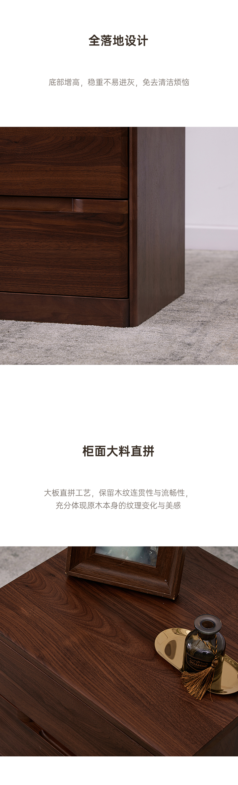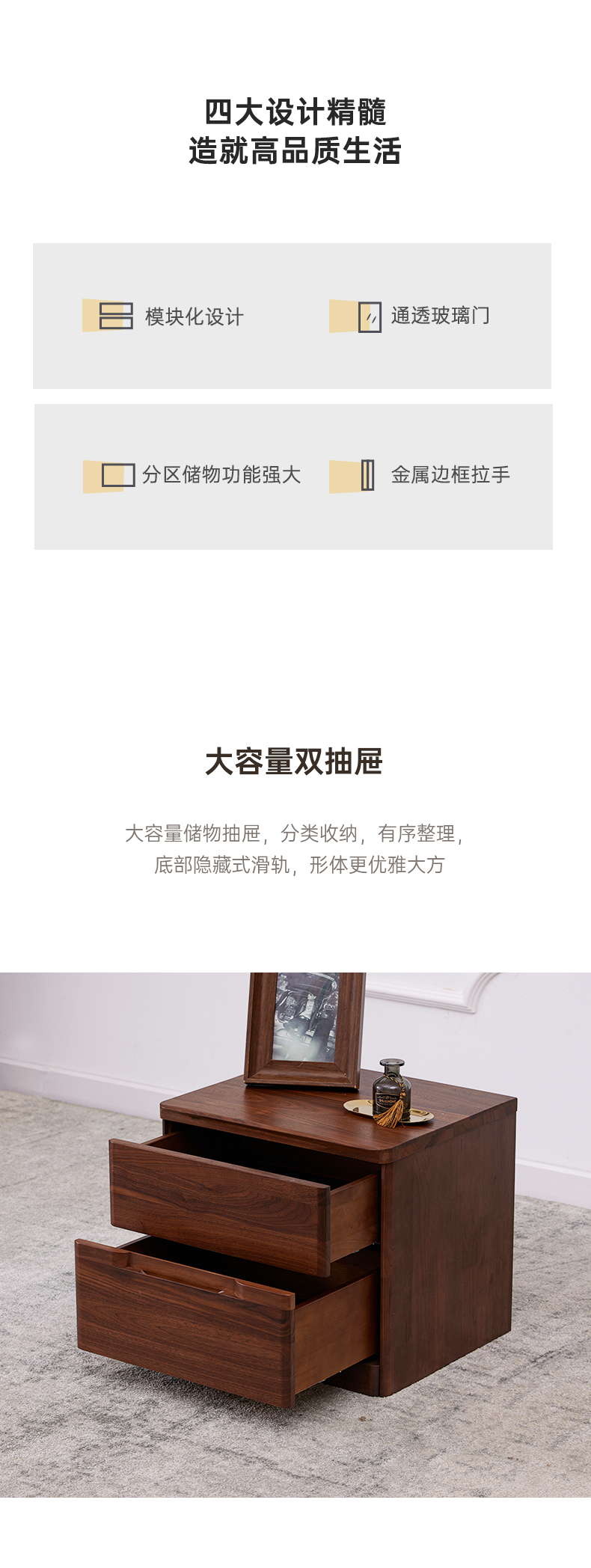 【现代实木风-NJT1301C03床头柜】现代实木/现代简约/卧室/北美黑胡桃/实木床头柜