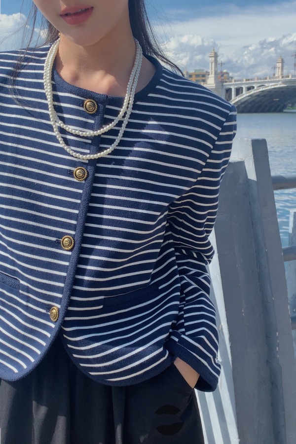 LNNNS 蓝白色条纹圆领小香风外套 17558