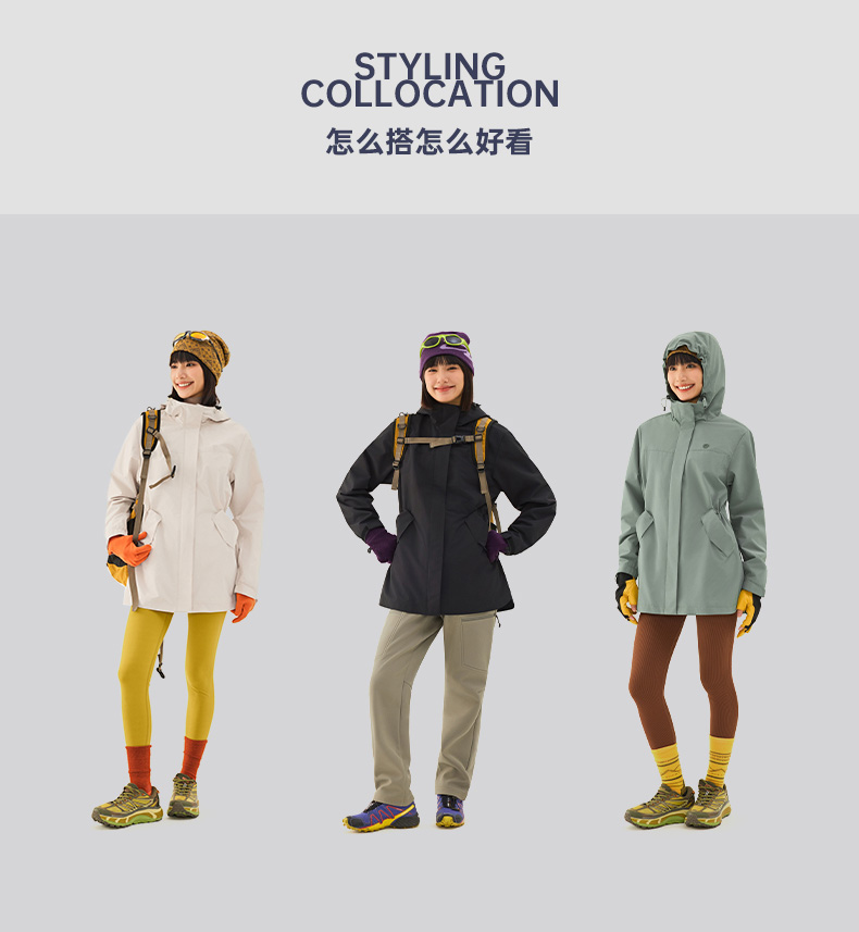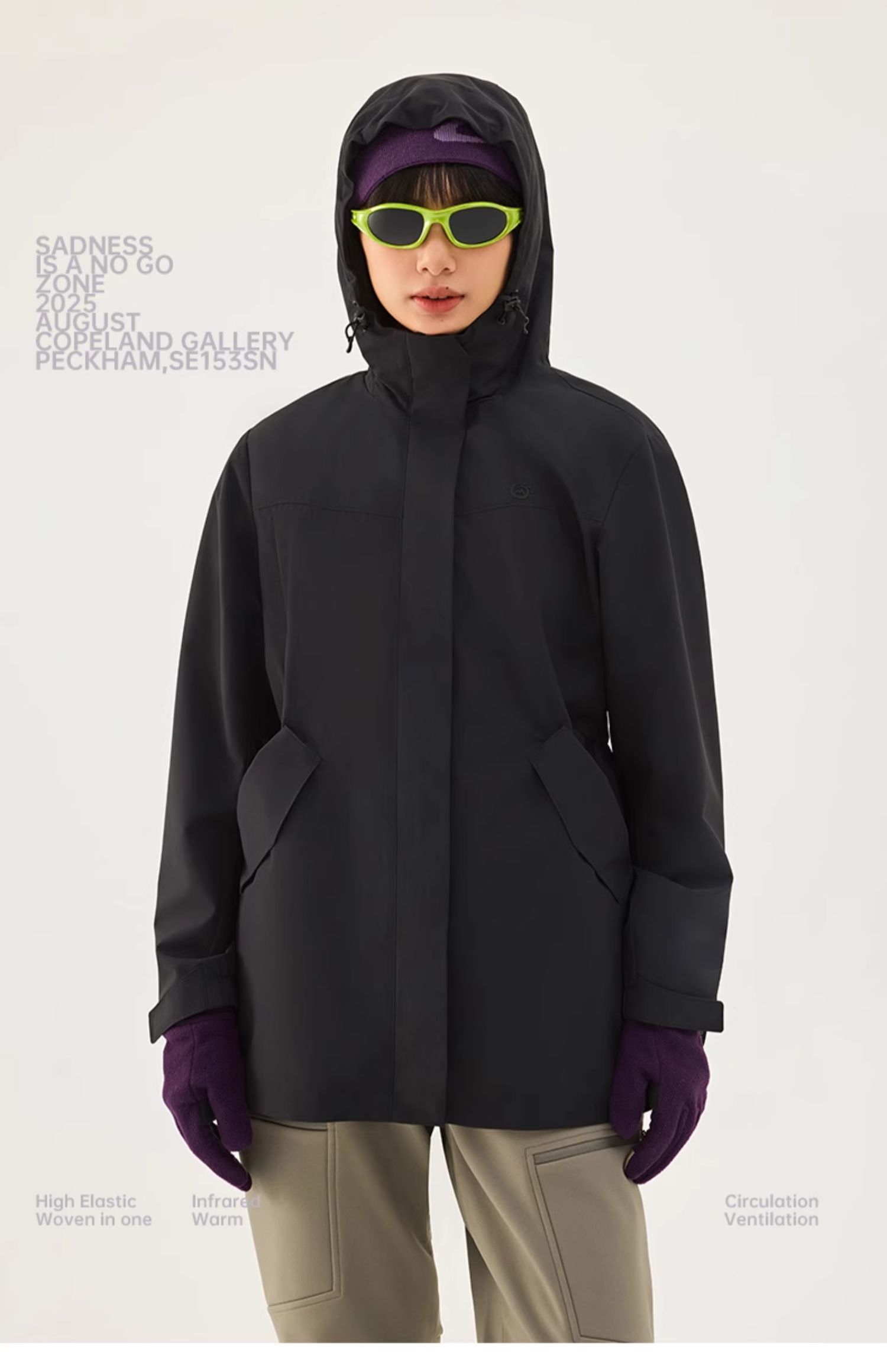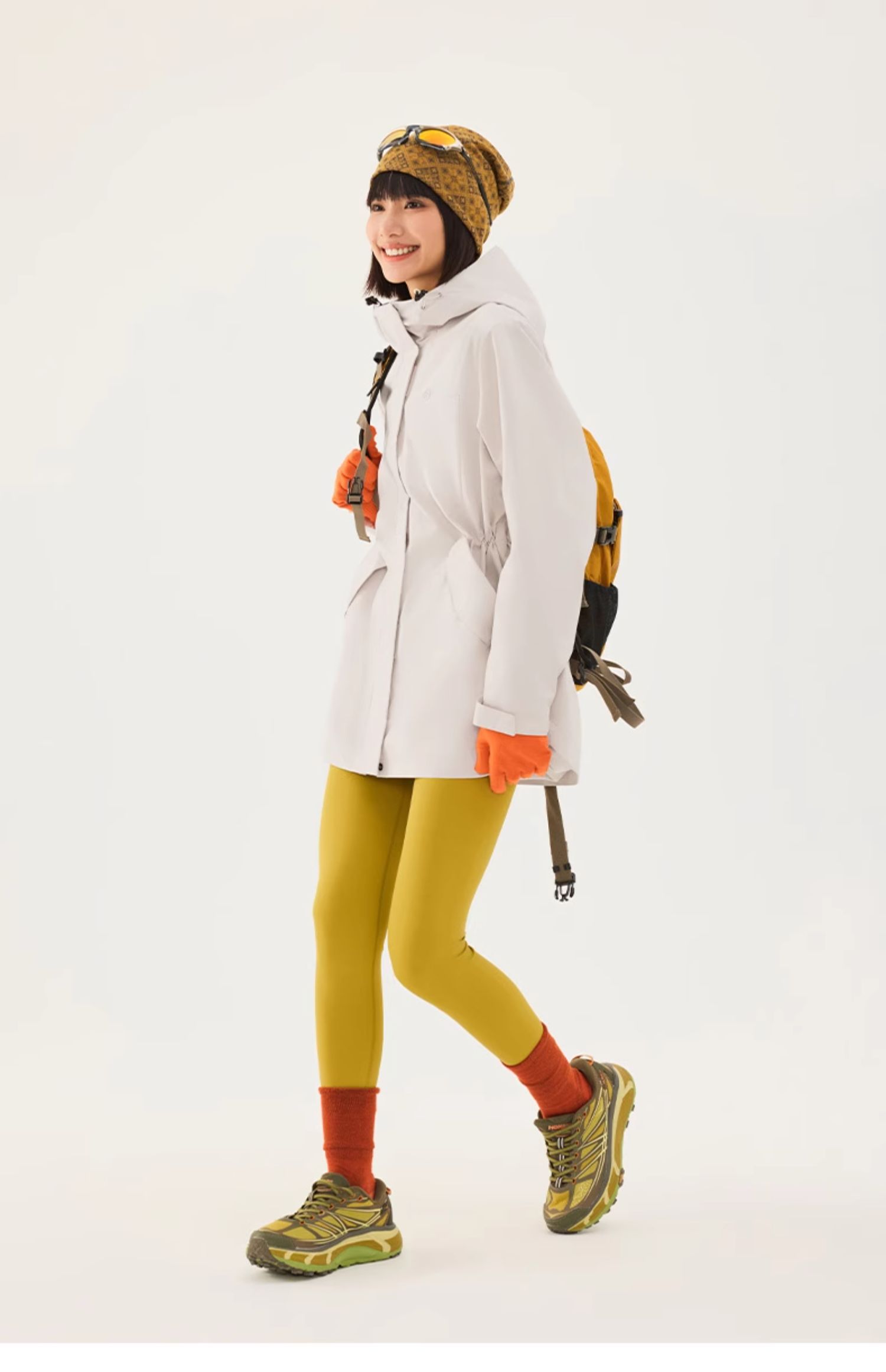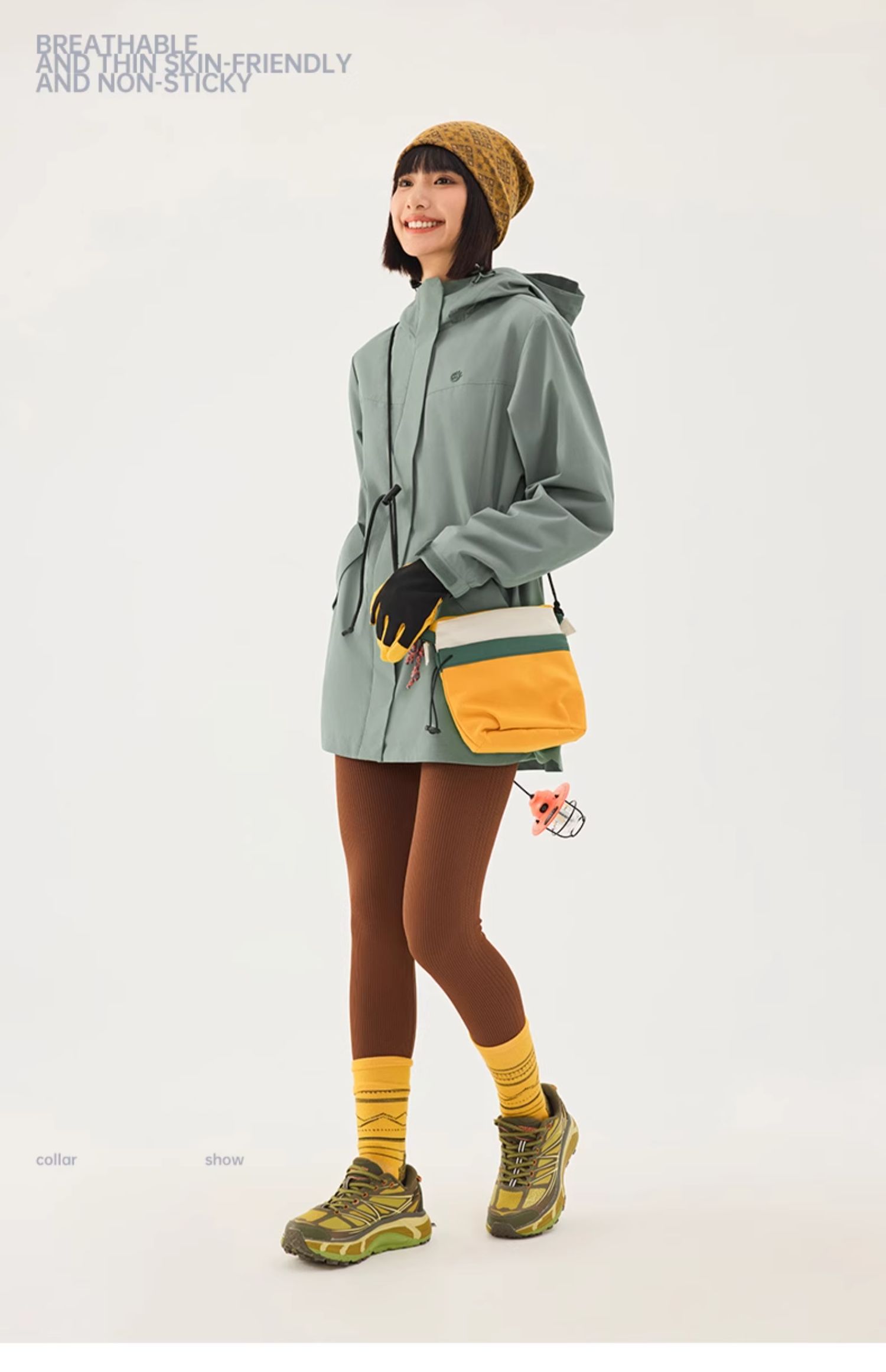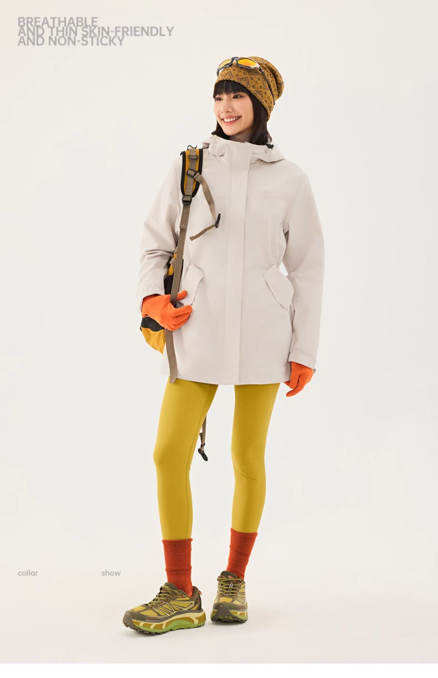 探拓户外软壳衣女加绒防风防泼水透气徒步登山中长款收腰连帽外套
