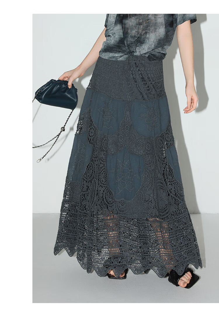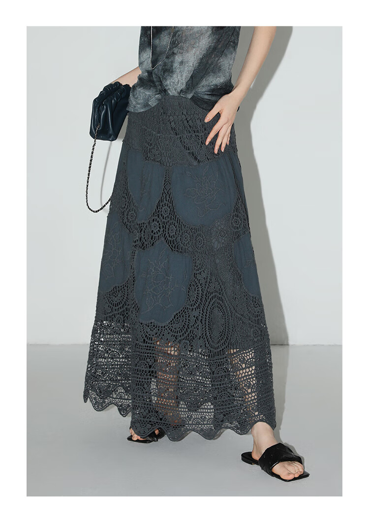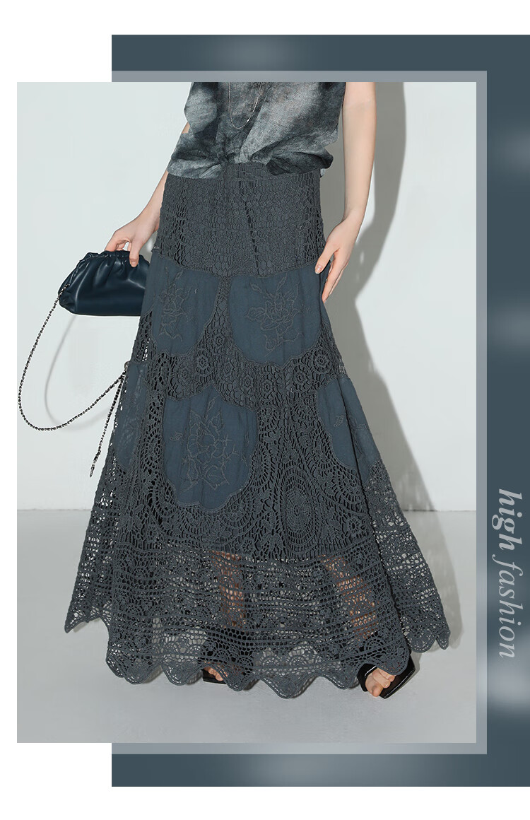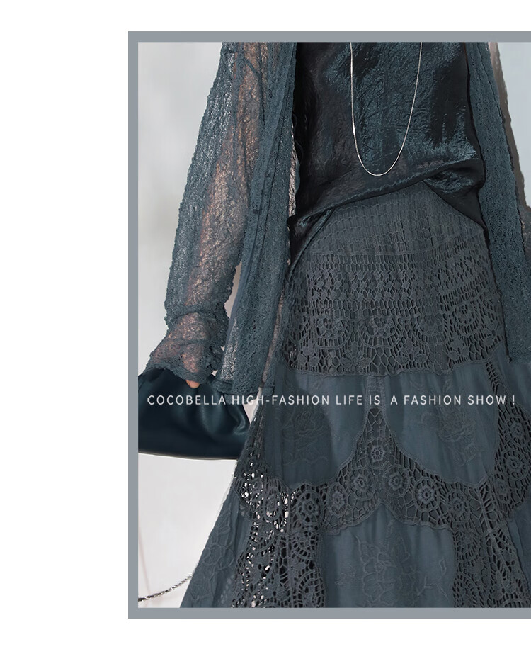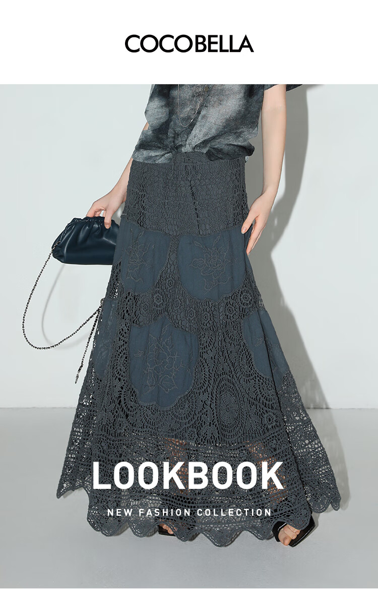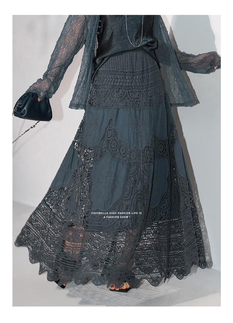 COCOBELLA定位镂空水溶蕾丝刺绣半身裙度假风无缝针织裙HS7059-3