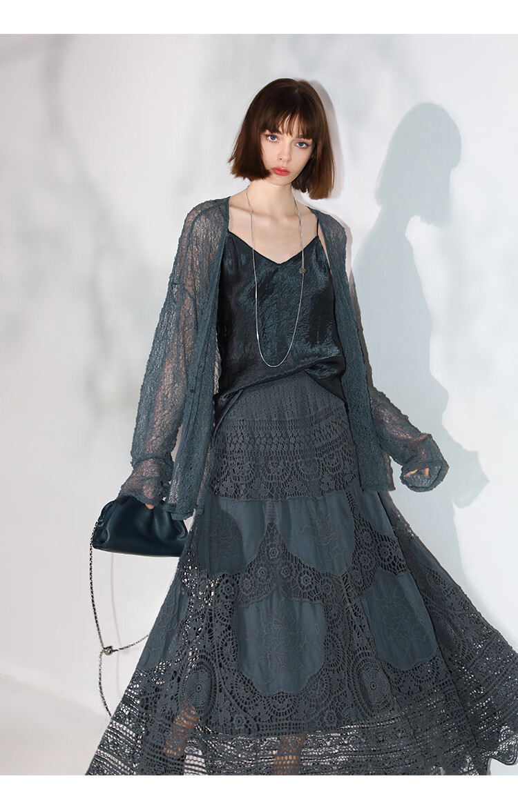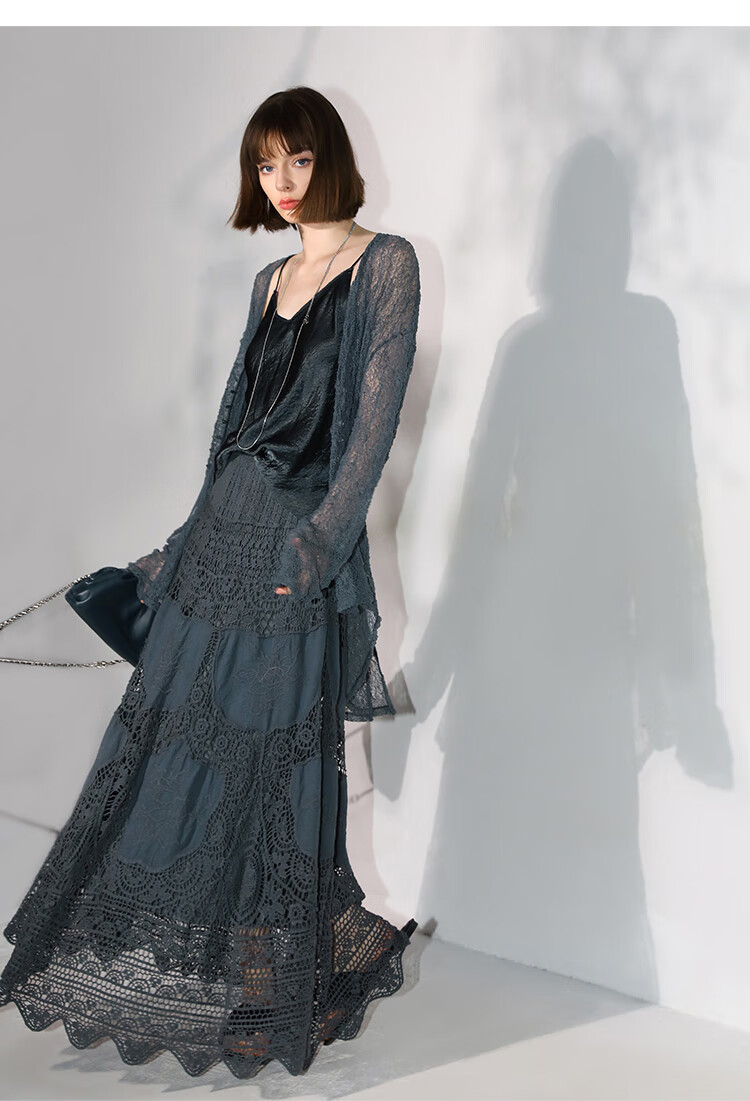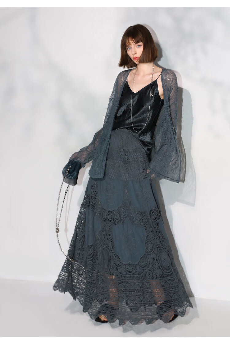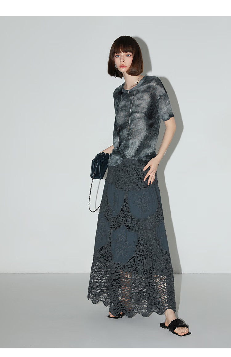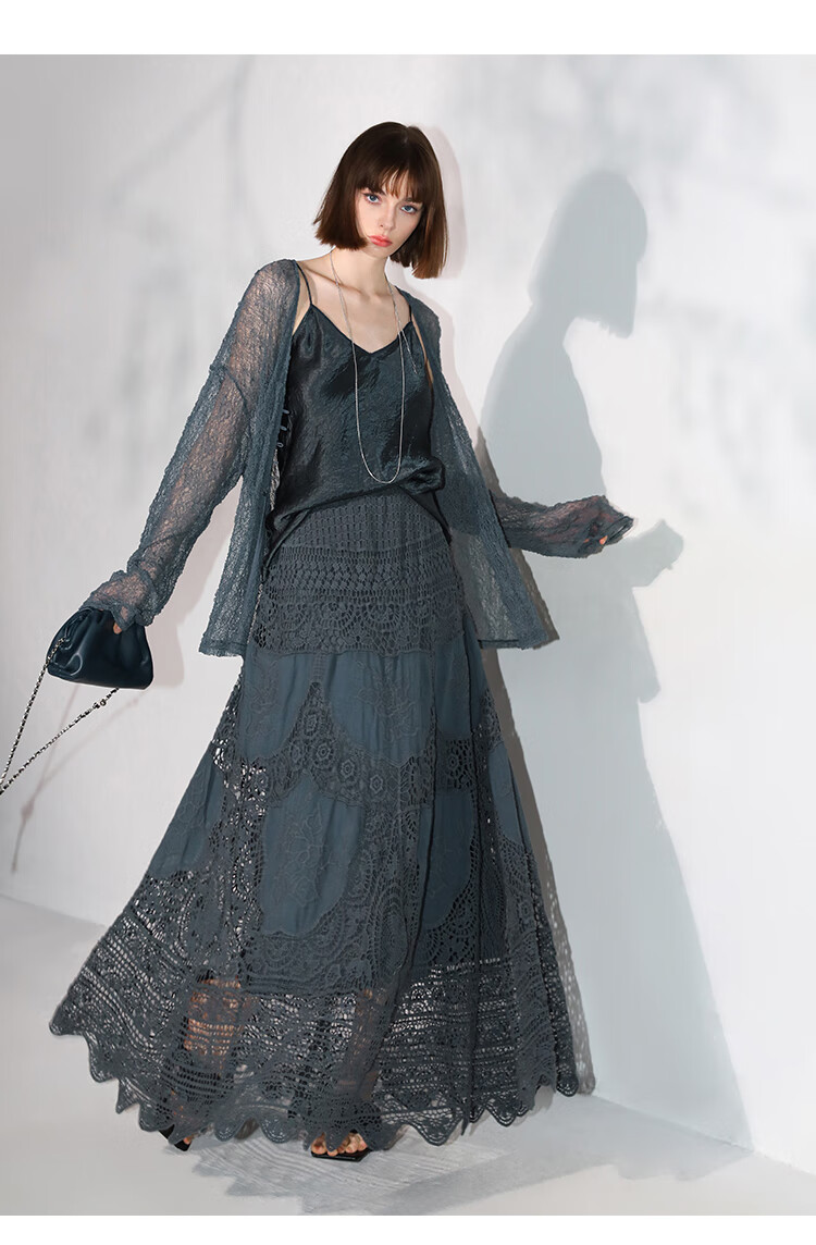 COCOBELLA定位镂空水溶蕾丝刺绣半身裙度假风无缝针织裙HS7059-3