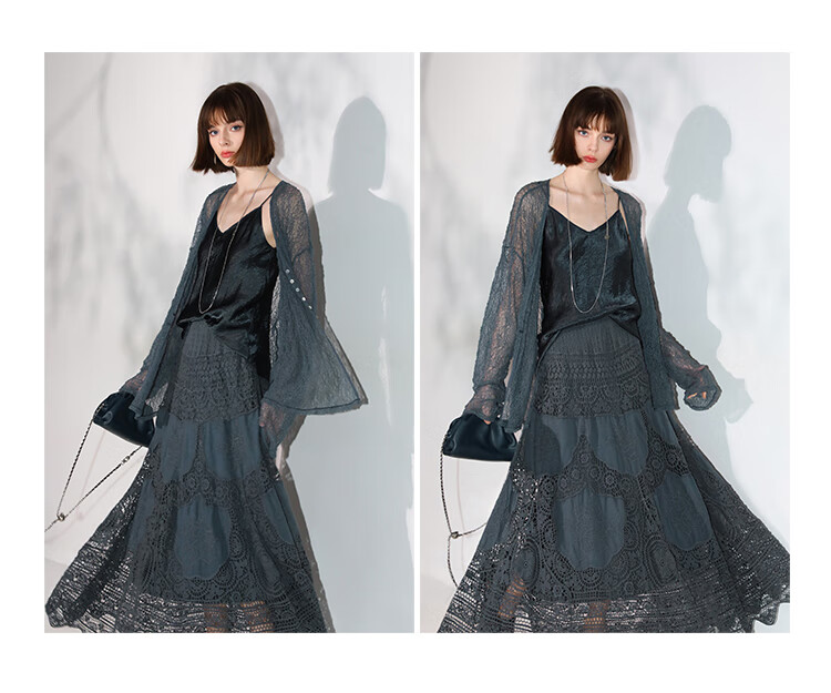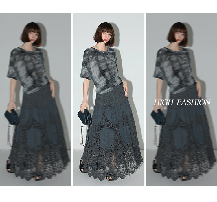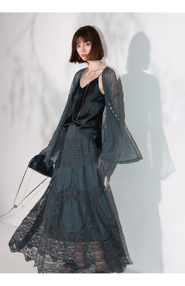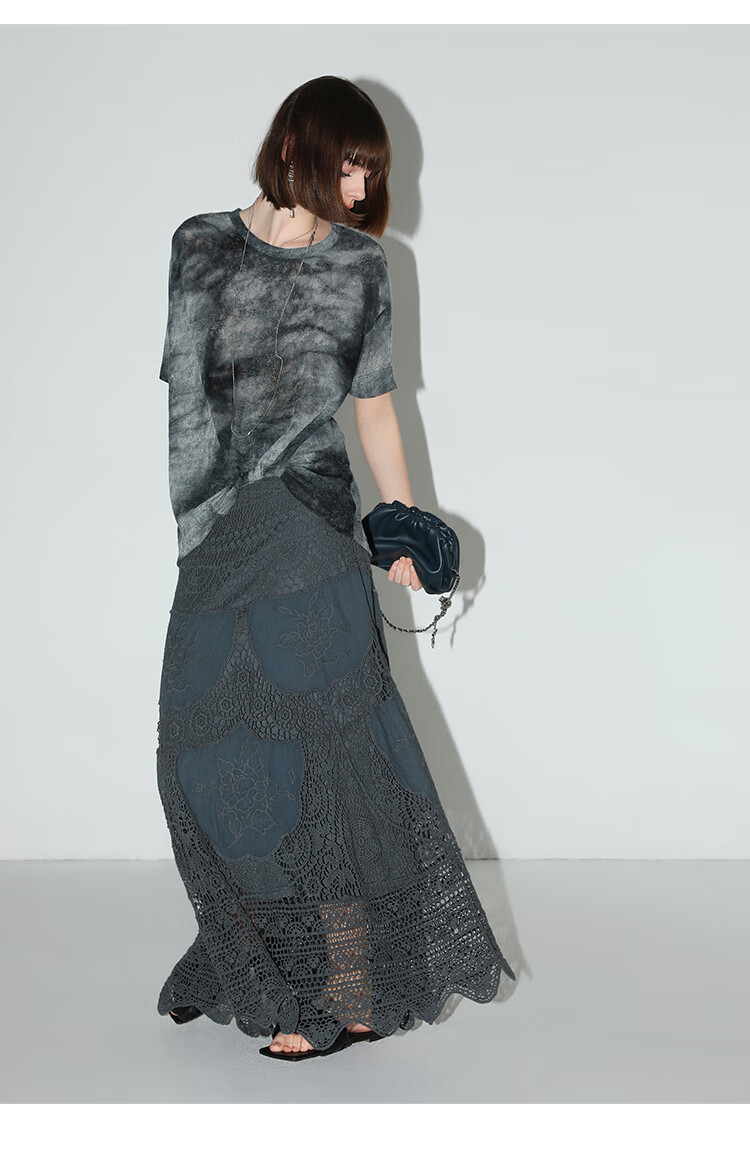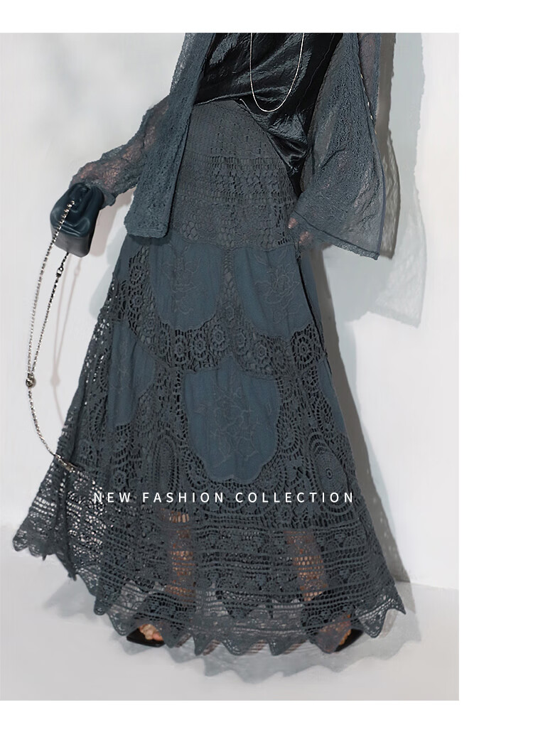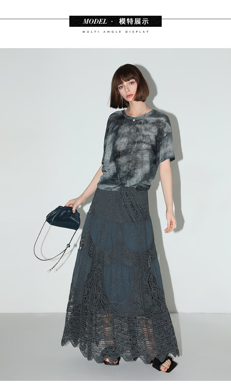 COCOBELLA定位镂空水溶蕾丝刺绣半身裙度假风无缝针织裙HS7059-3